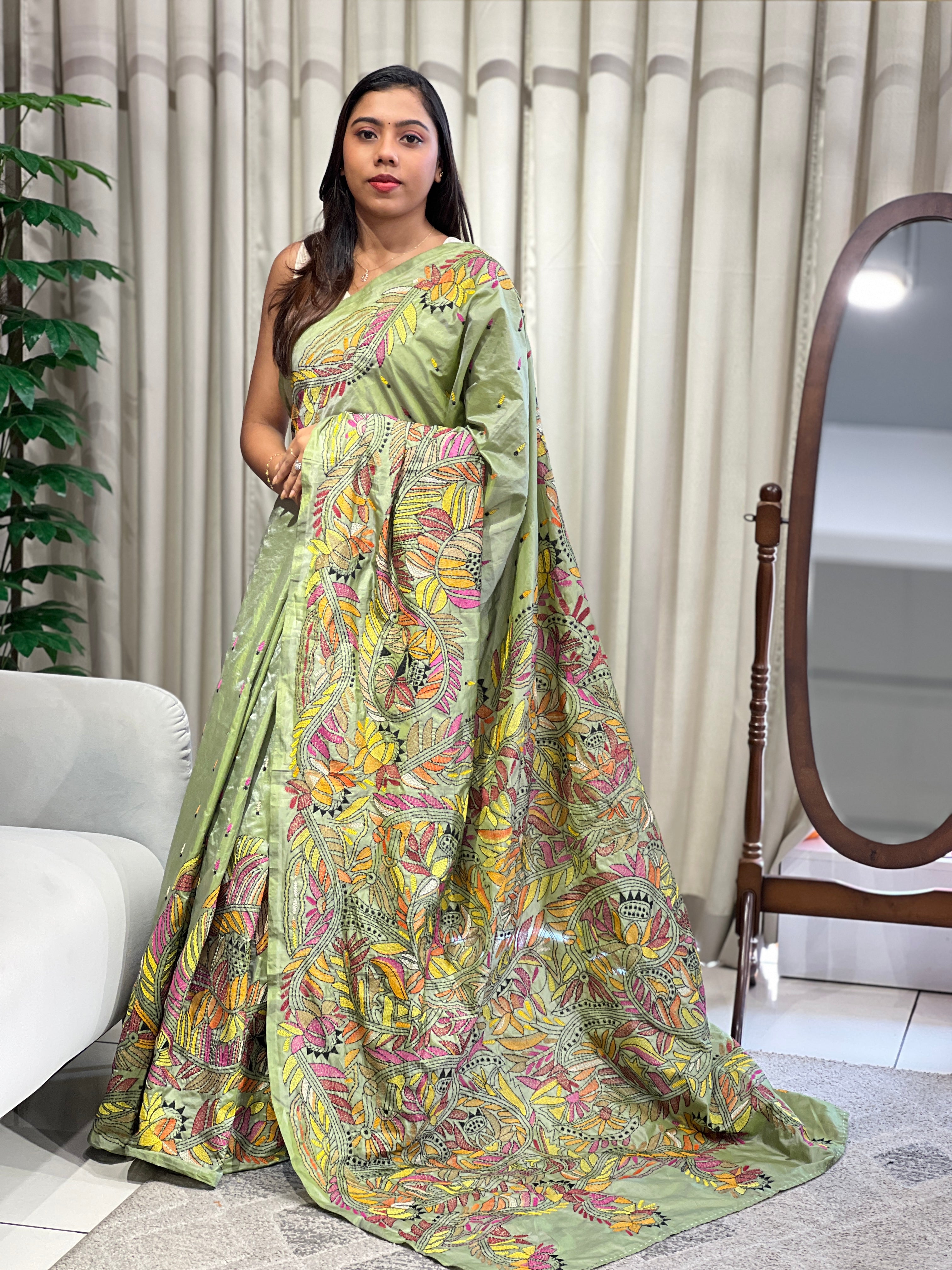 - Style: Multi-Color Hand Nakshi Kantha Embroidery, Scattered Buttas