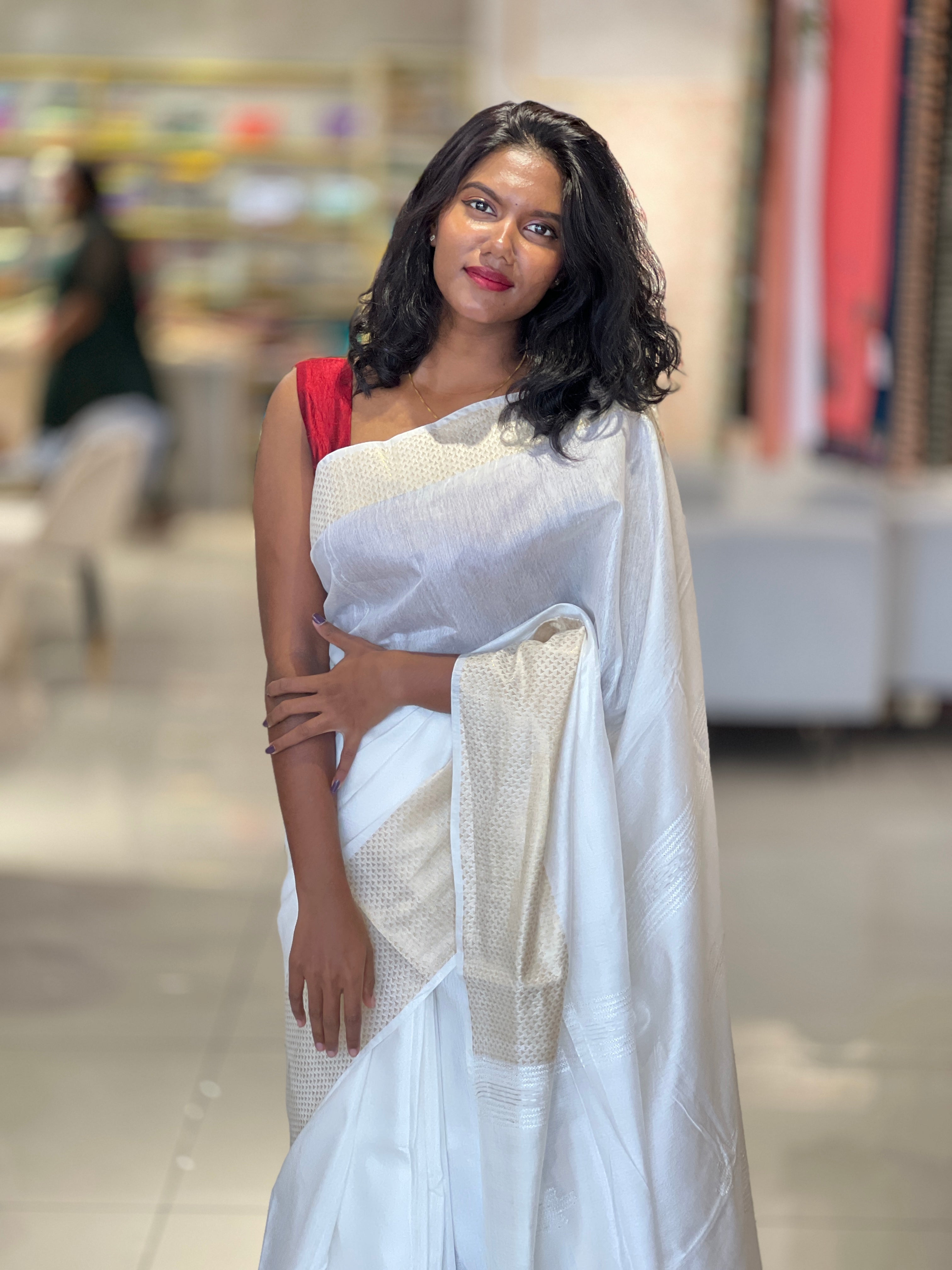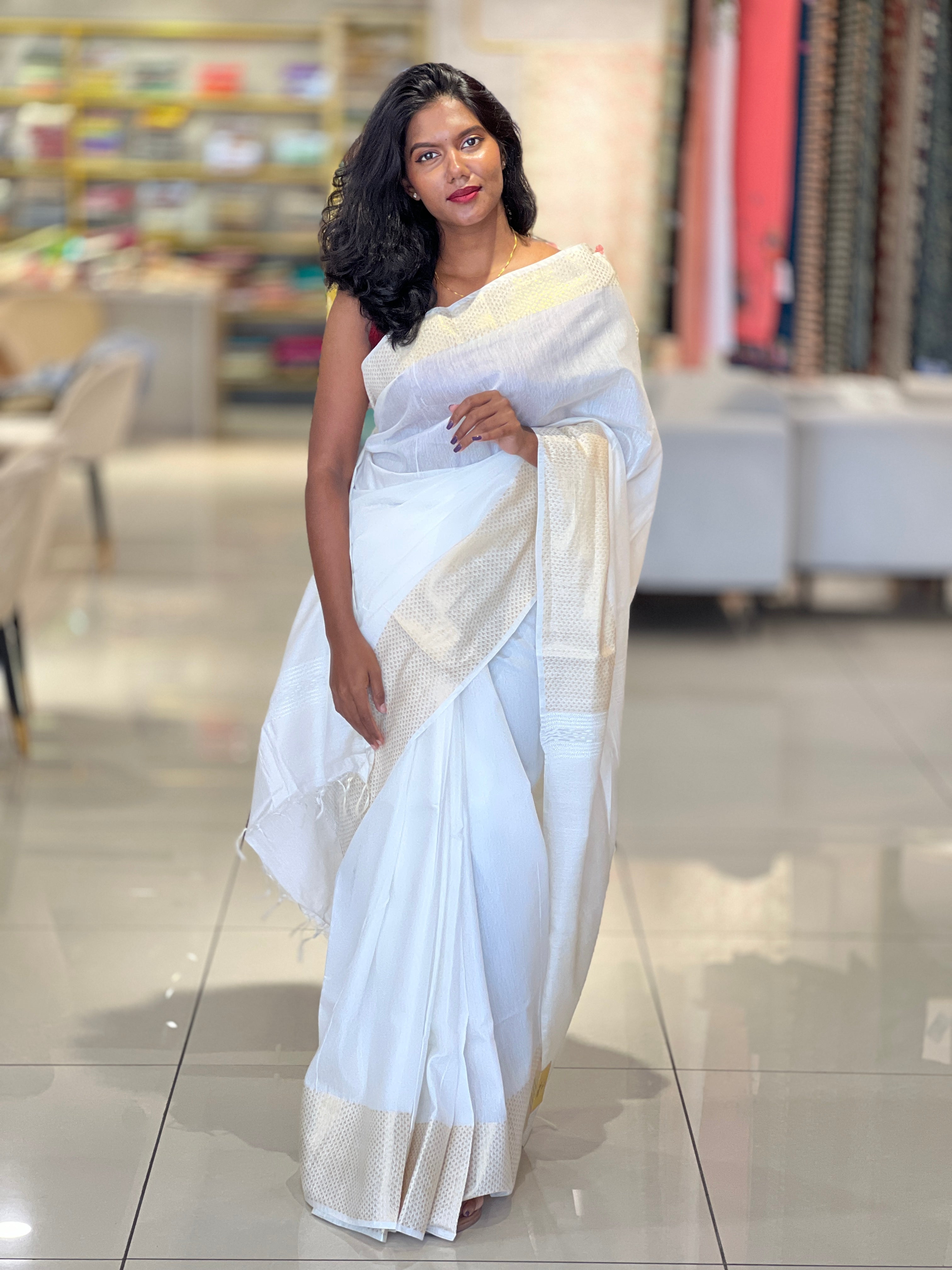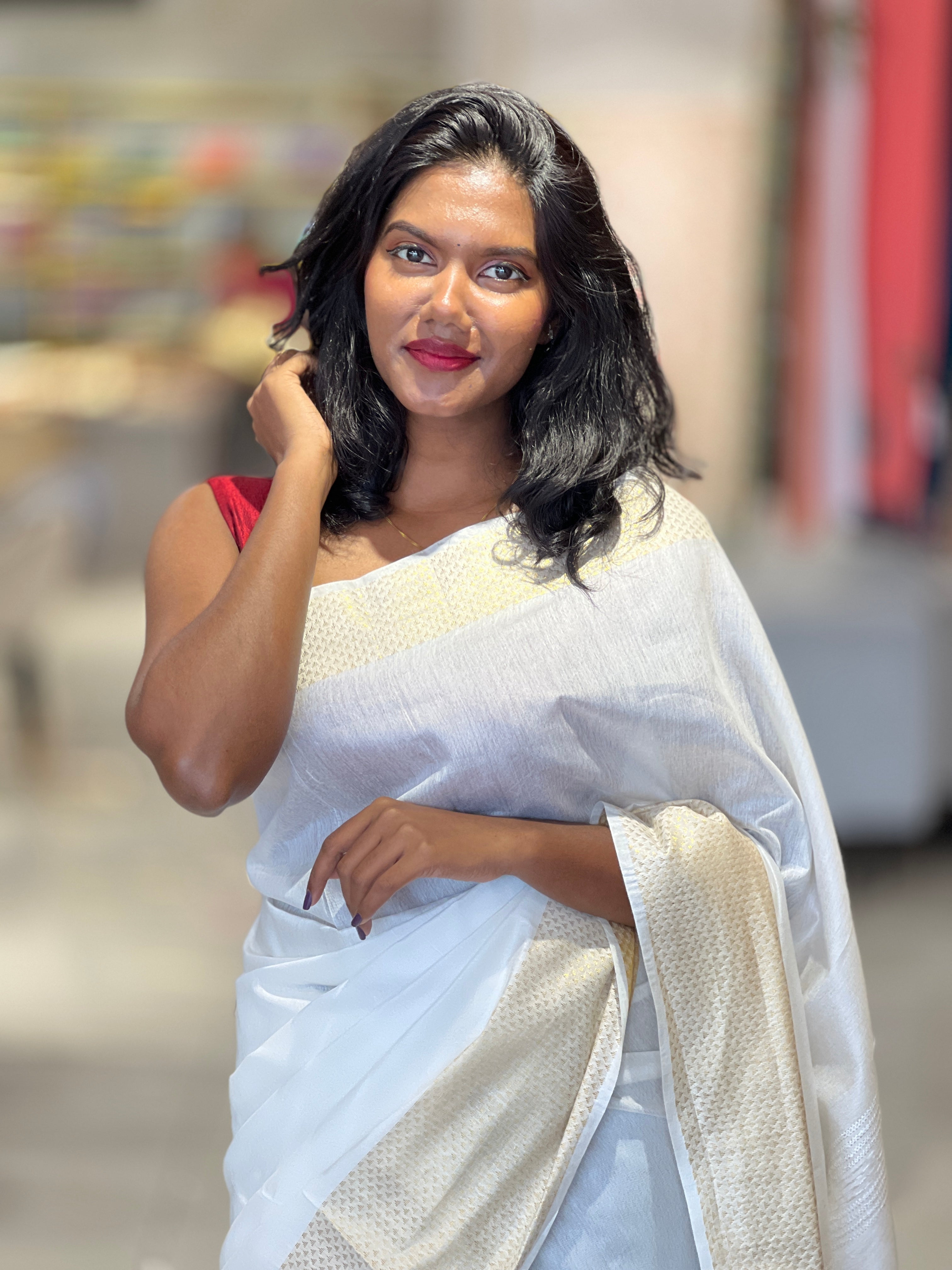 - Style: Gold Zari Weaving Style, Zari Border Detailing, Jacquard Weaving Patterned Pallu, Self Tassels Attached