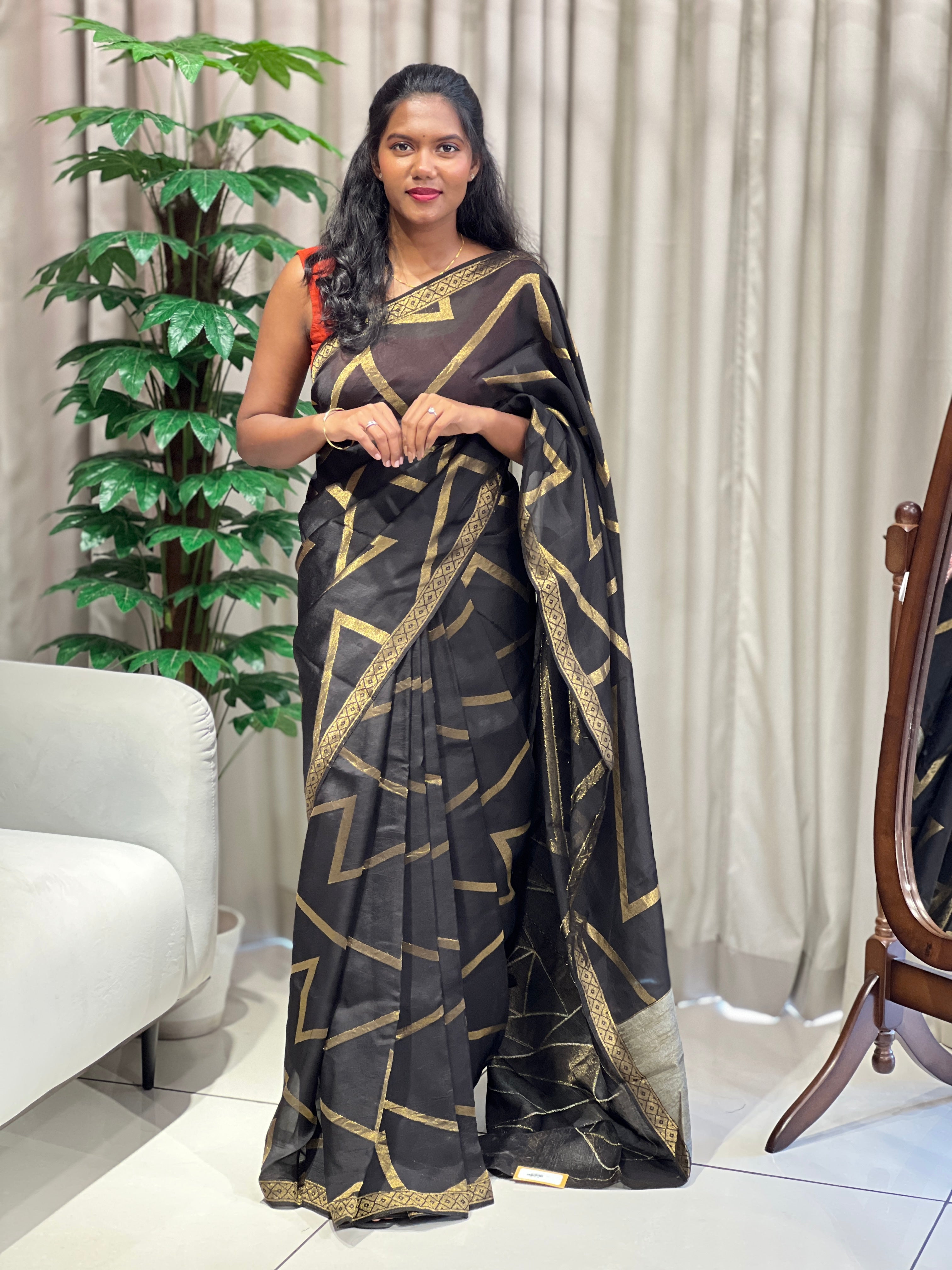 Origami Patterned Viscose Kora Georgette Saree | YNG1135