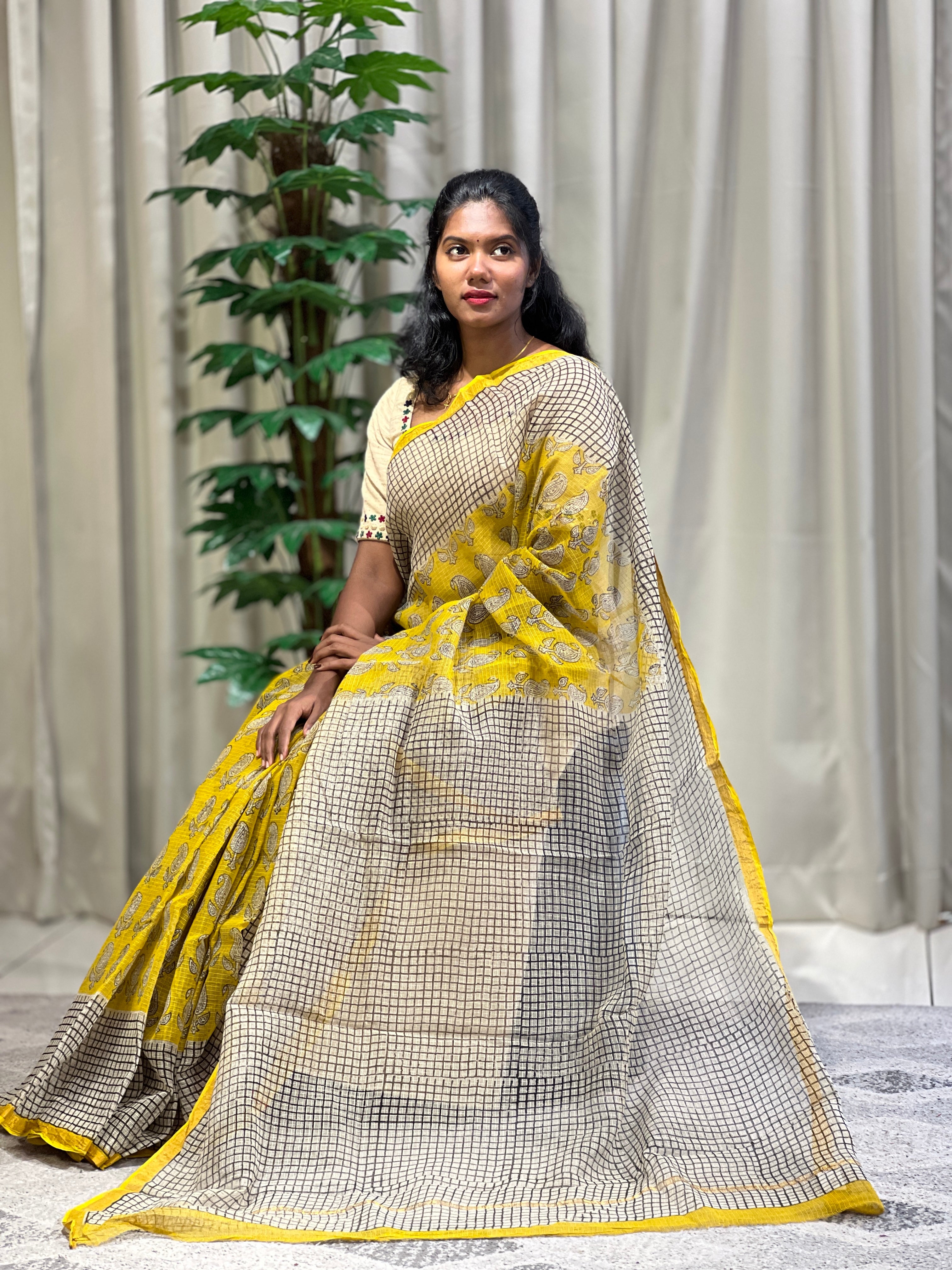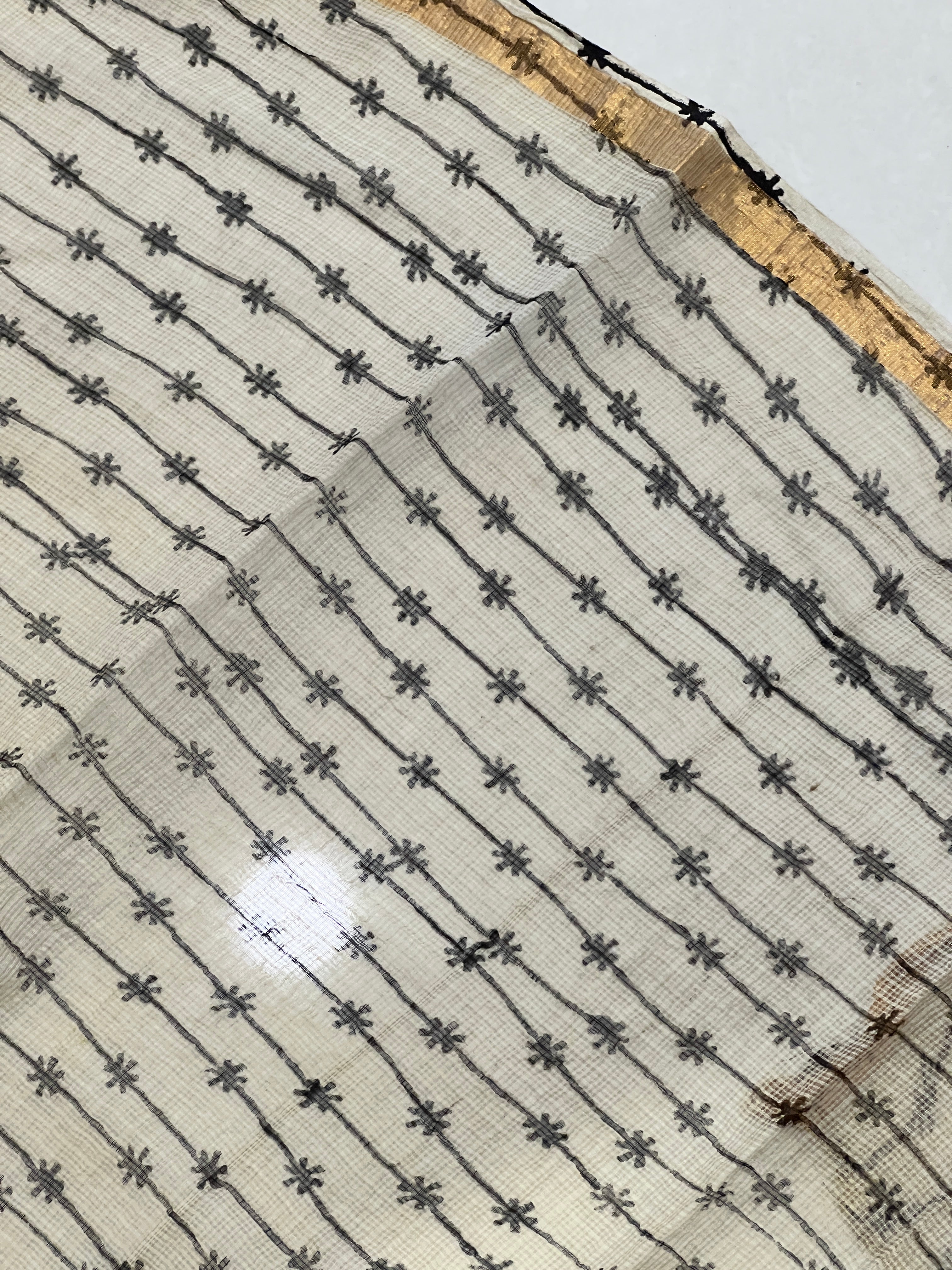 - Style: Screen Printed, Paisley & Check Pattern, Thin Zari Borders