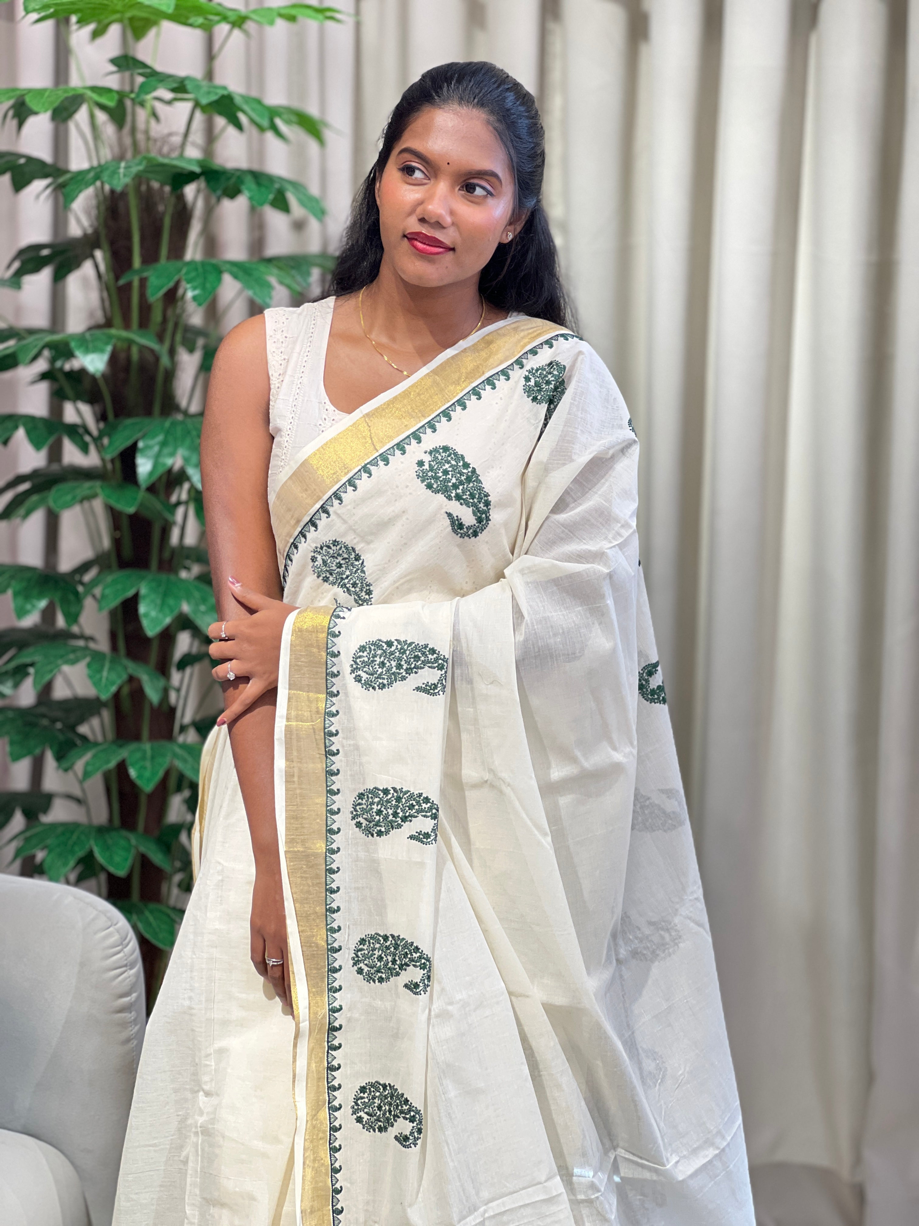 - Style: Machine Embroidery, Paisley Pattern, Zari Woven Borders