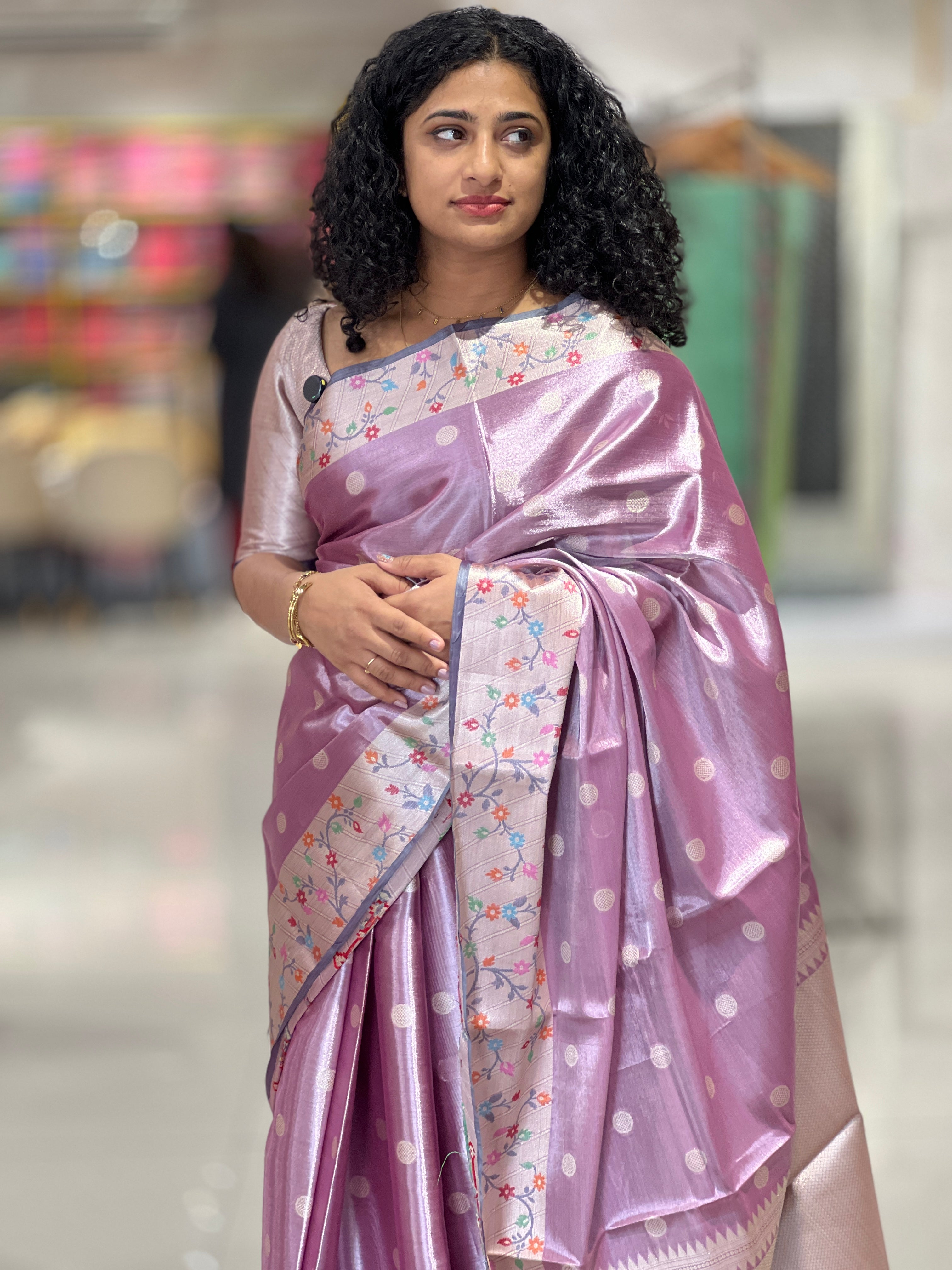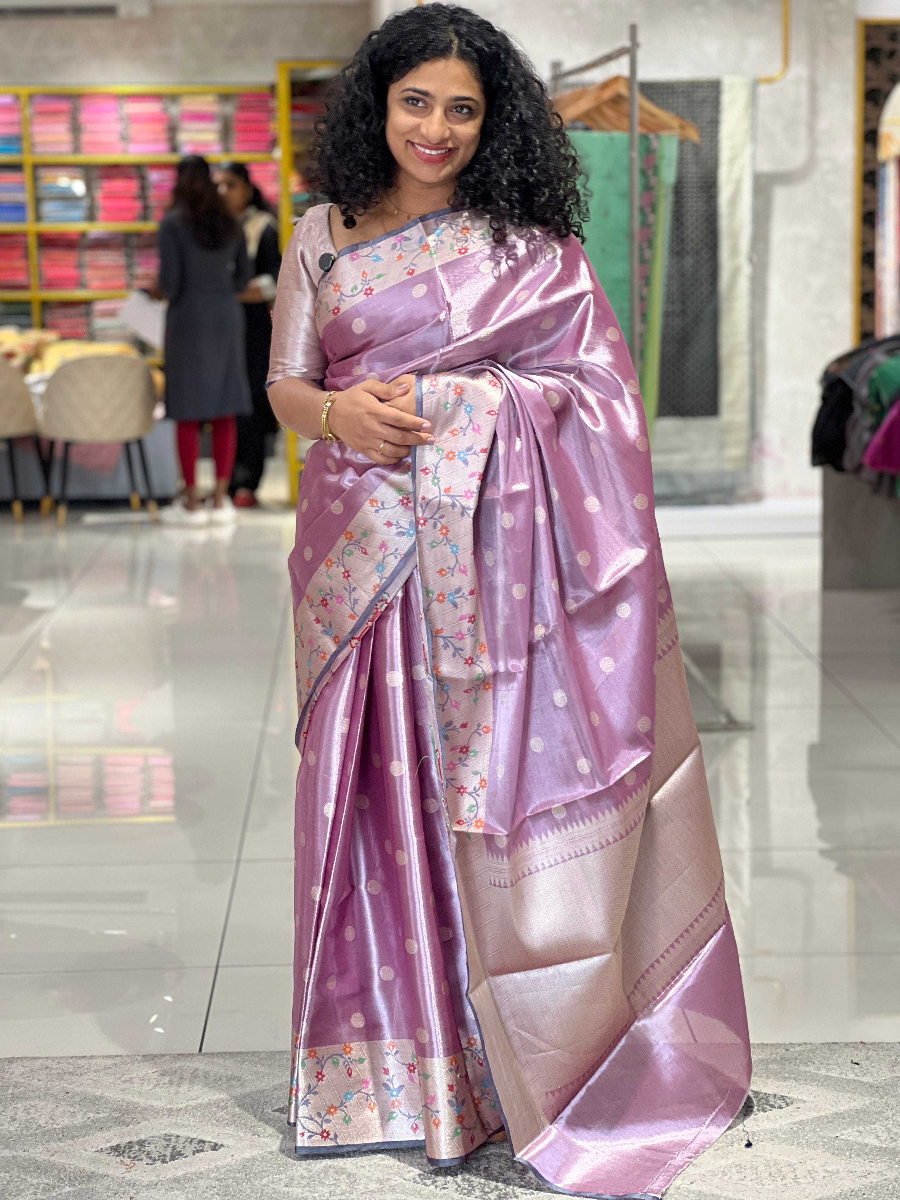 - Style:Pink Zari Woven ,Polka Design,Paithani Design Border,Daimond Weaving Pallu