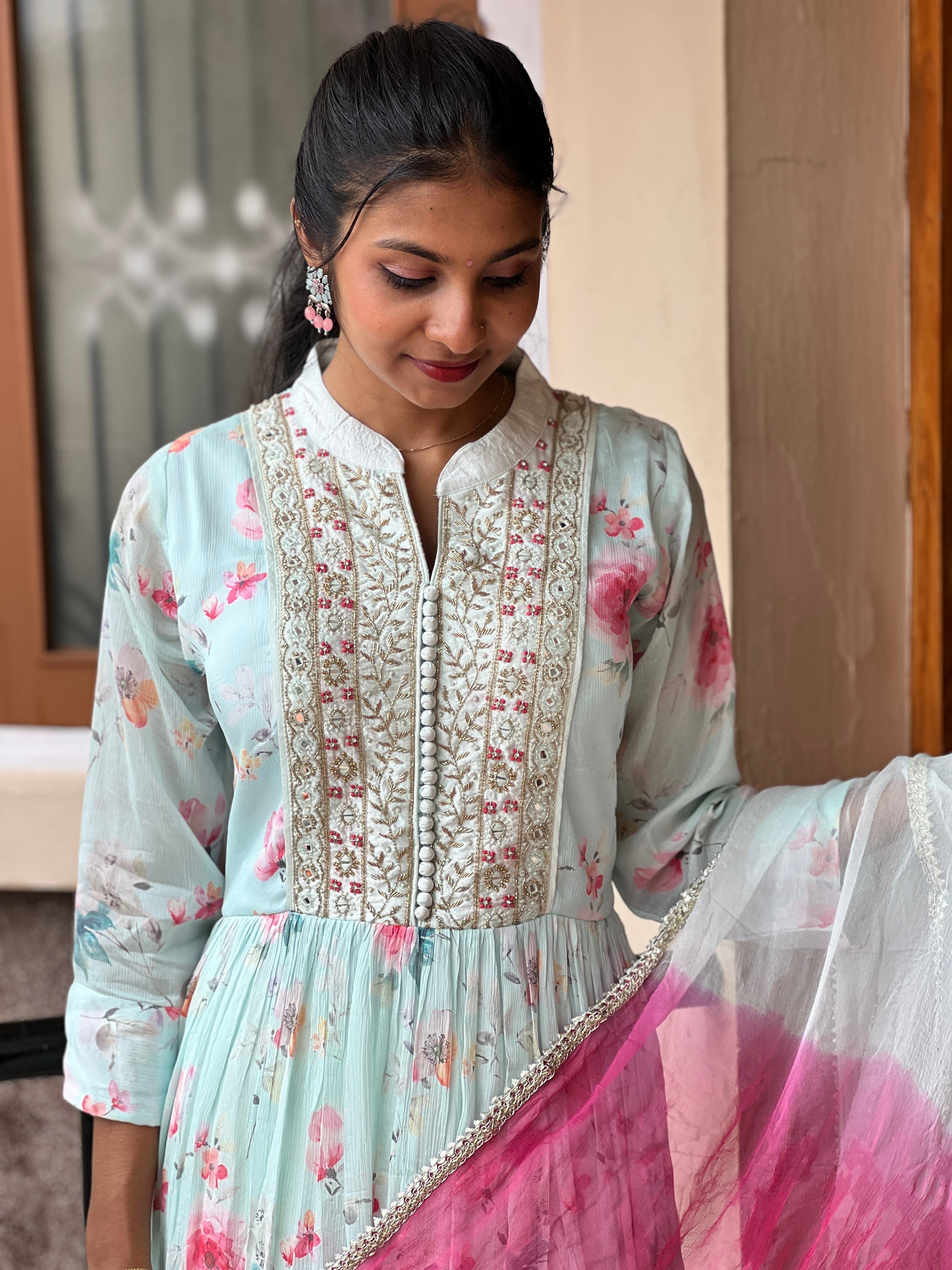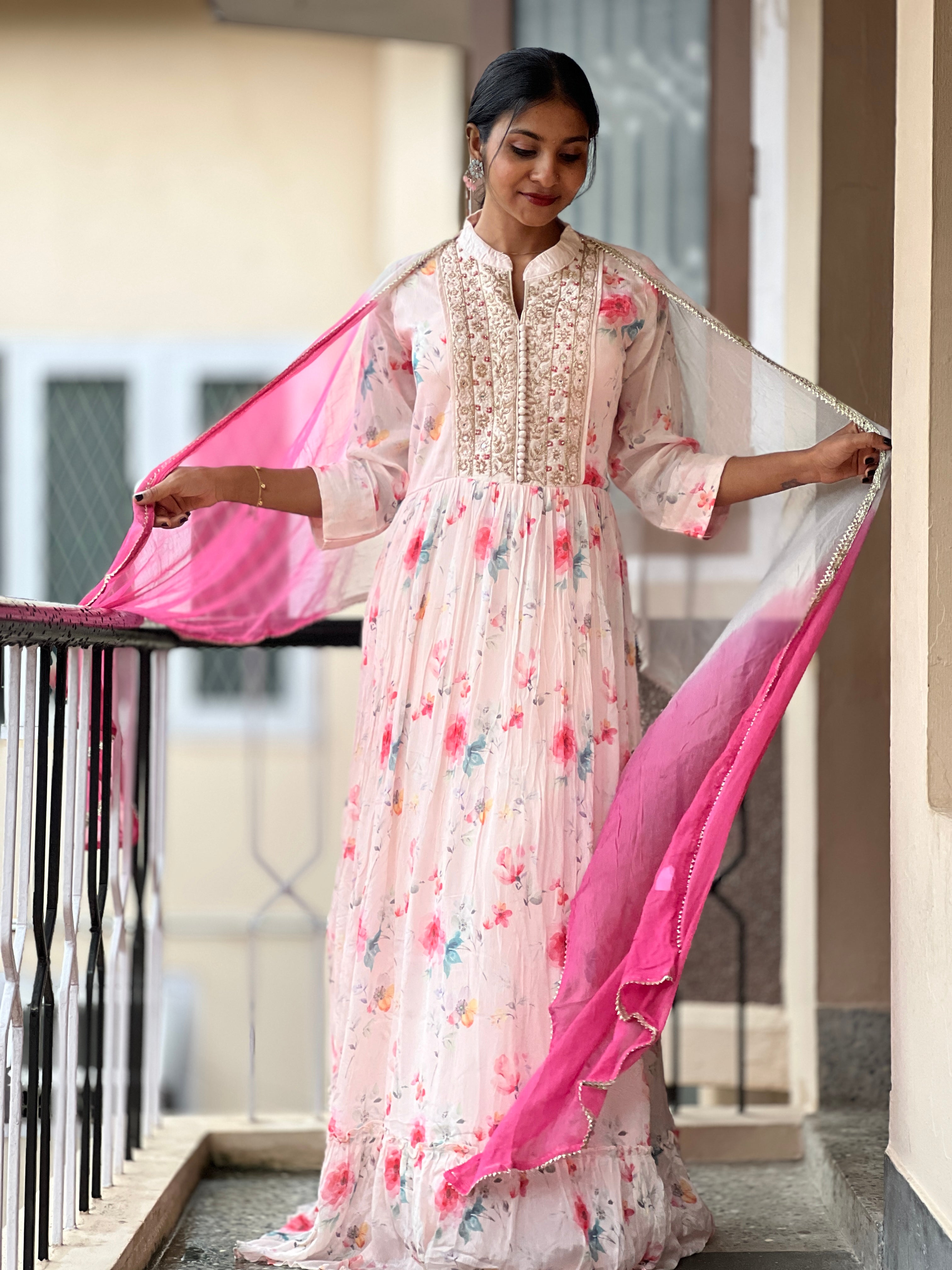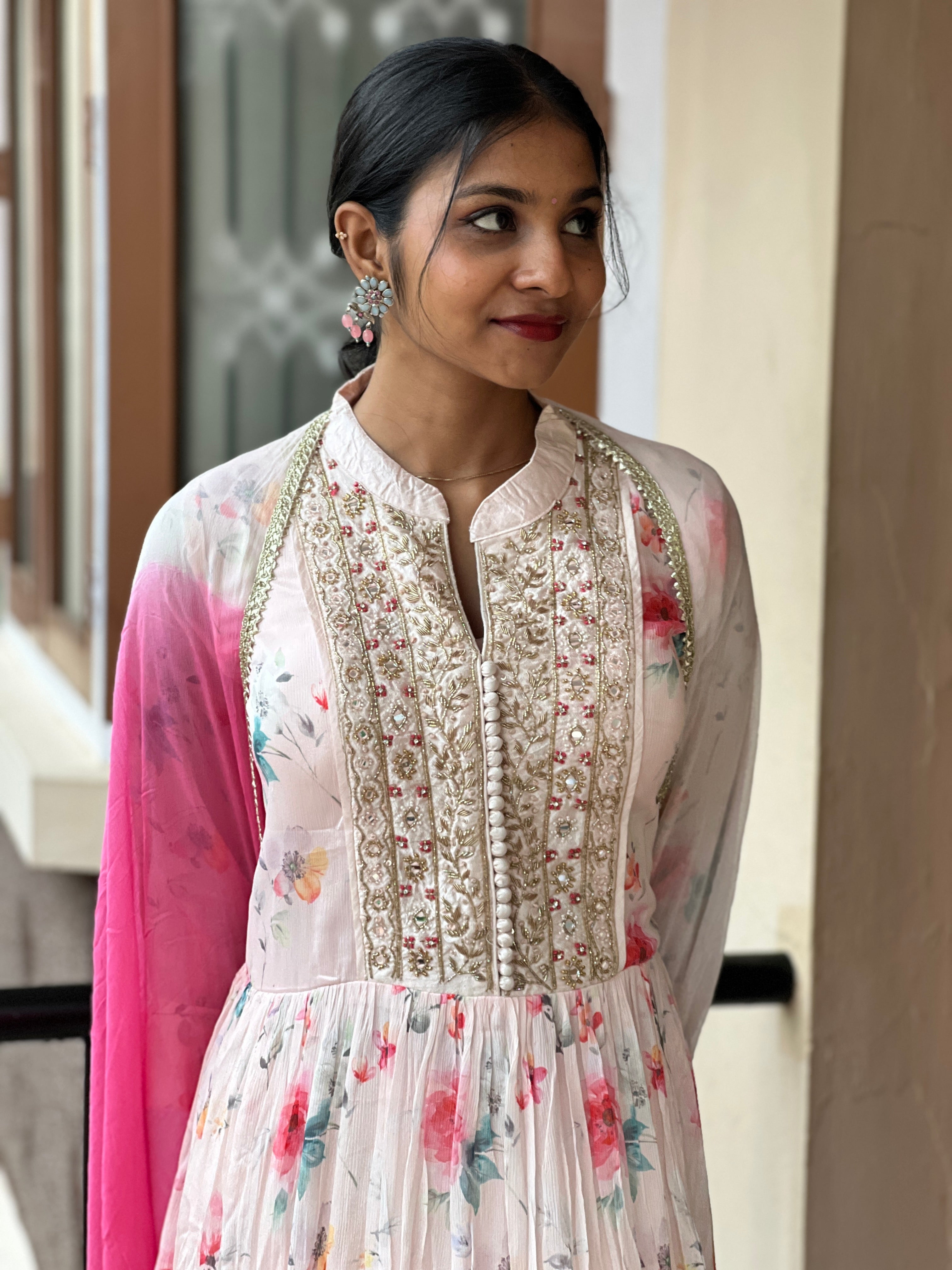 - Style: Floral Print, Yoke Embroidery Design, Padded