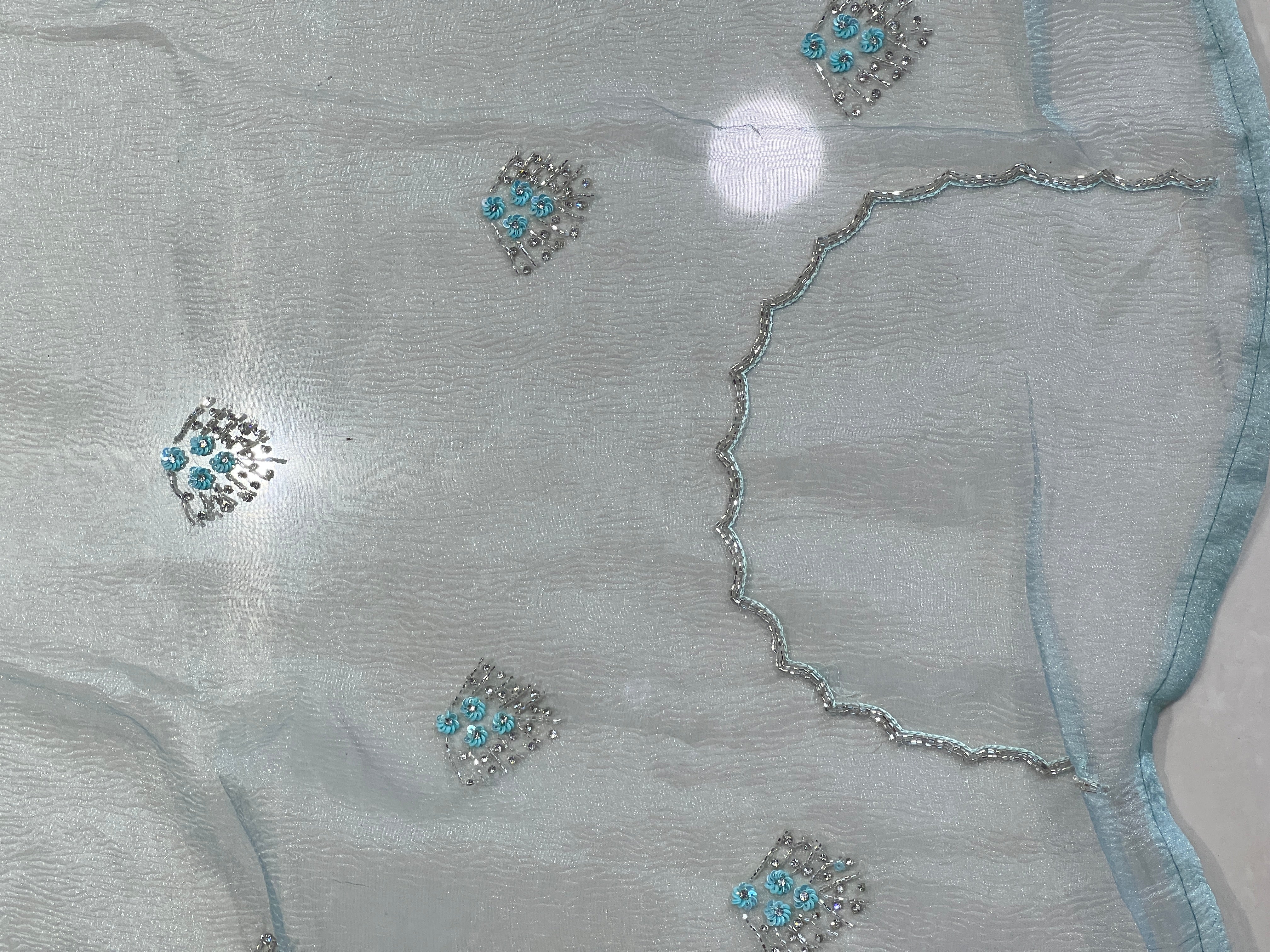 - Style: Hand Work Embroidery, Sequence Work,Cut Beads Work ,Scallop Border,Stone Sticking Work