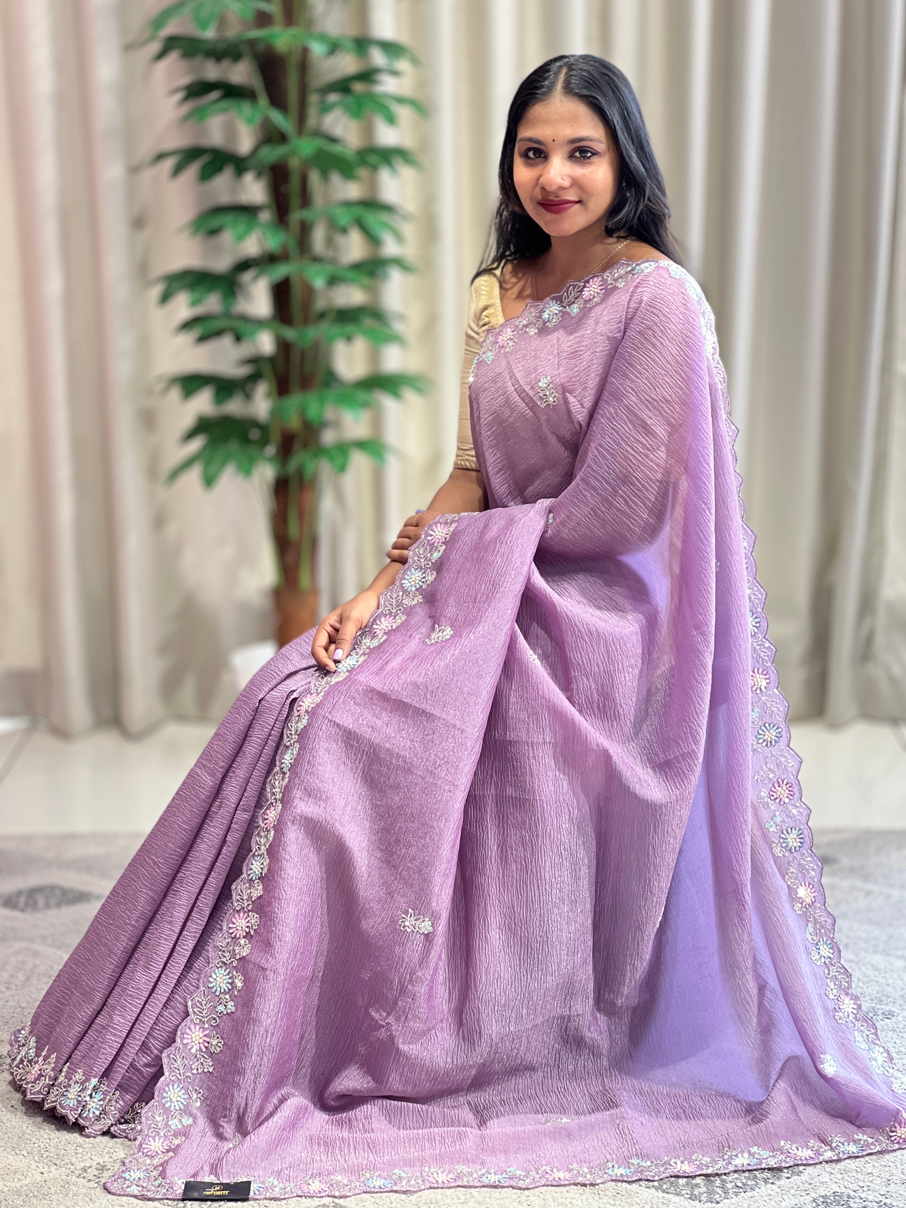 • Party Wear Crushed Organza Saree | SBP950