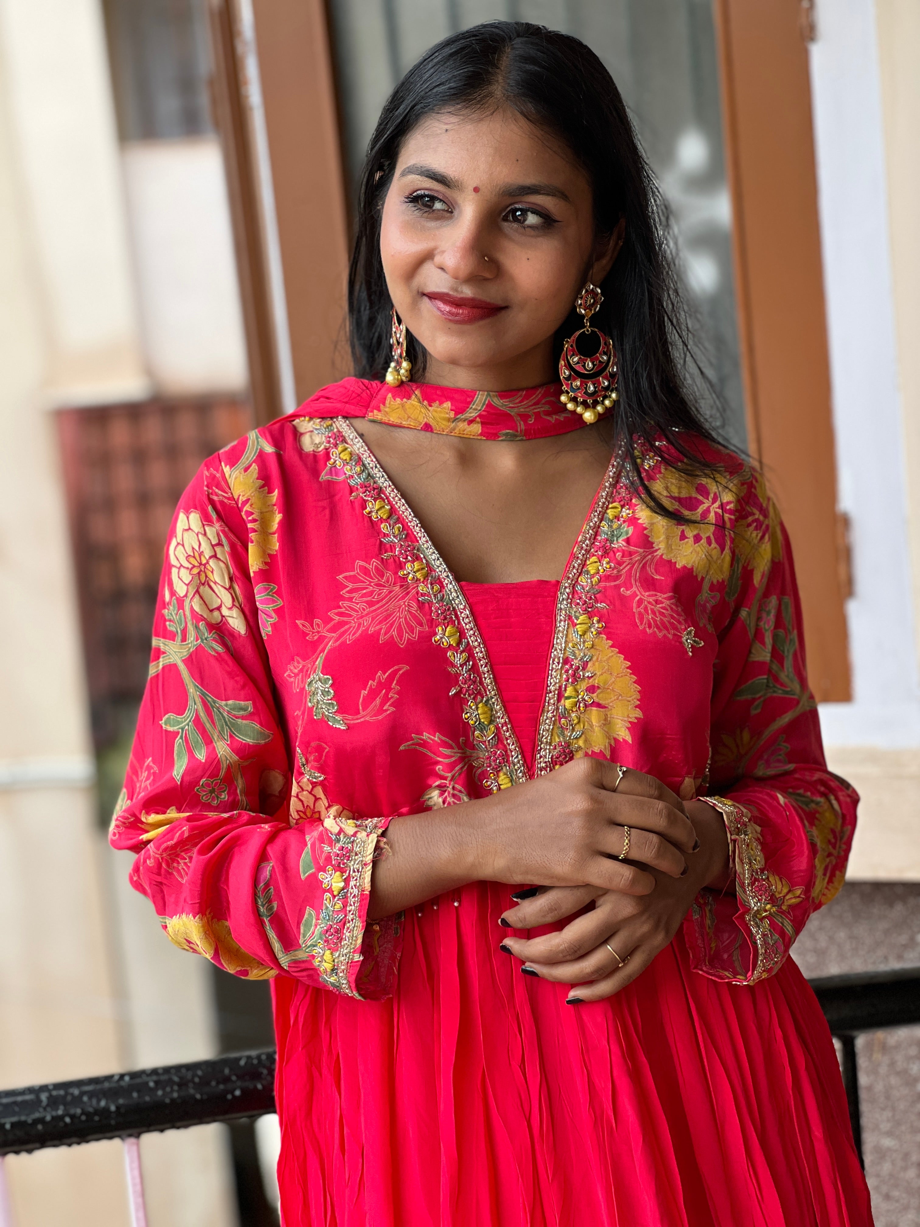 - Style: Floral Print, Yoke Embroidery Design, Alia Cut Pattern, Padded