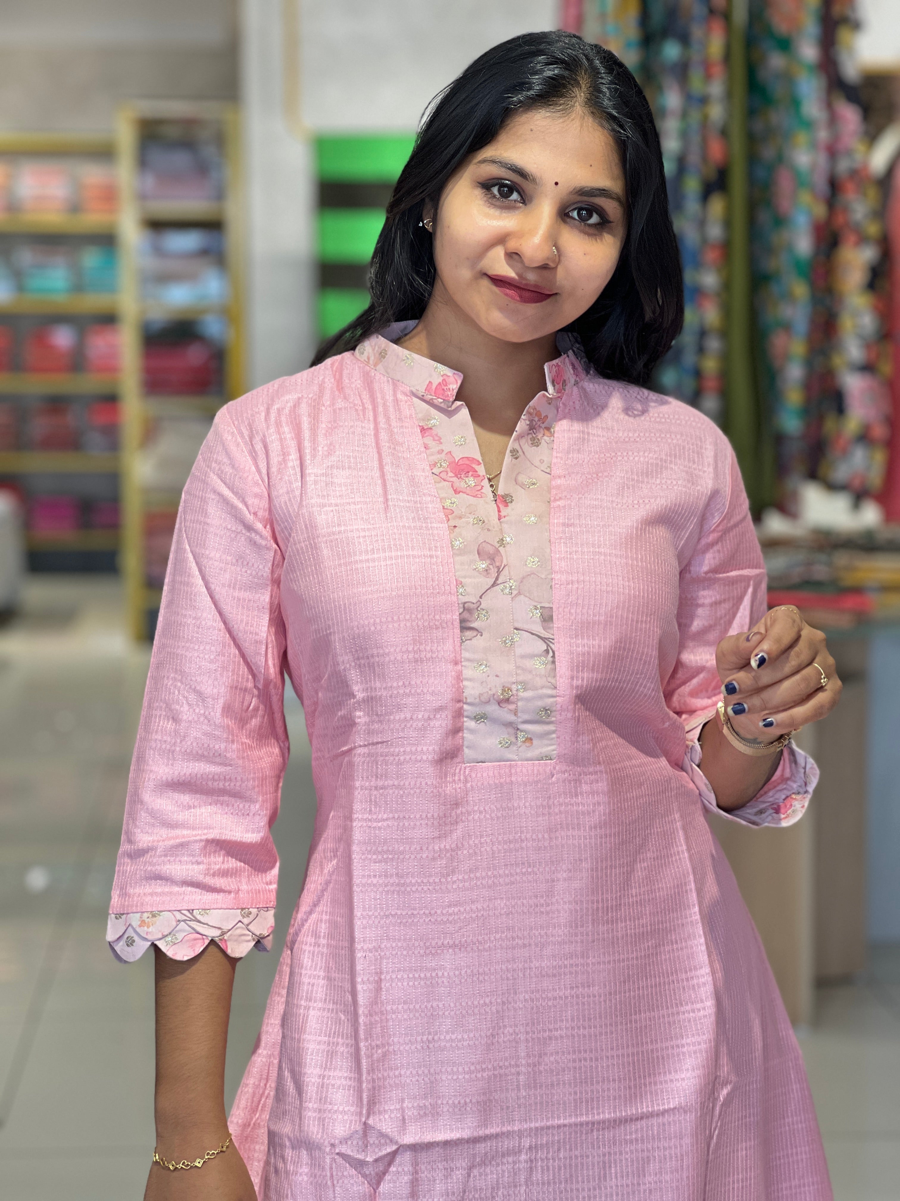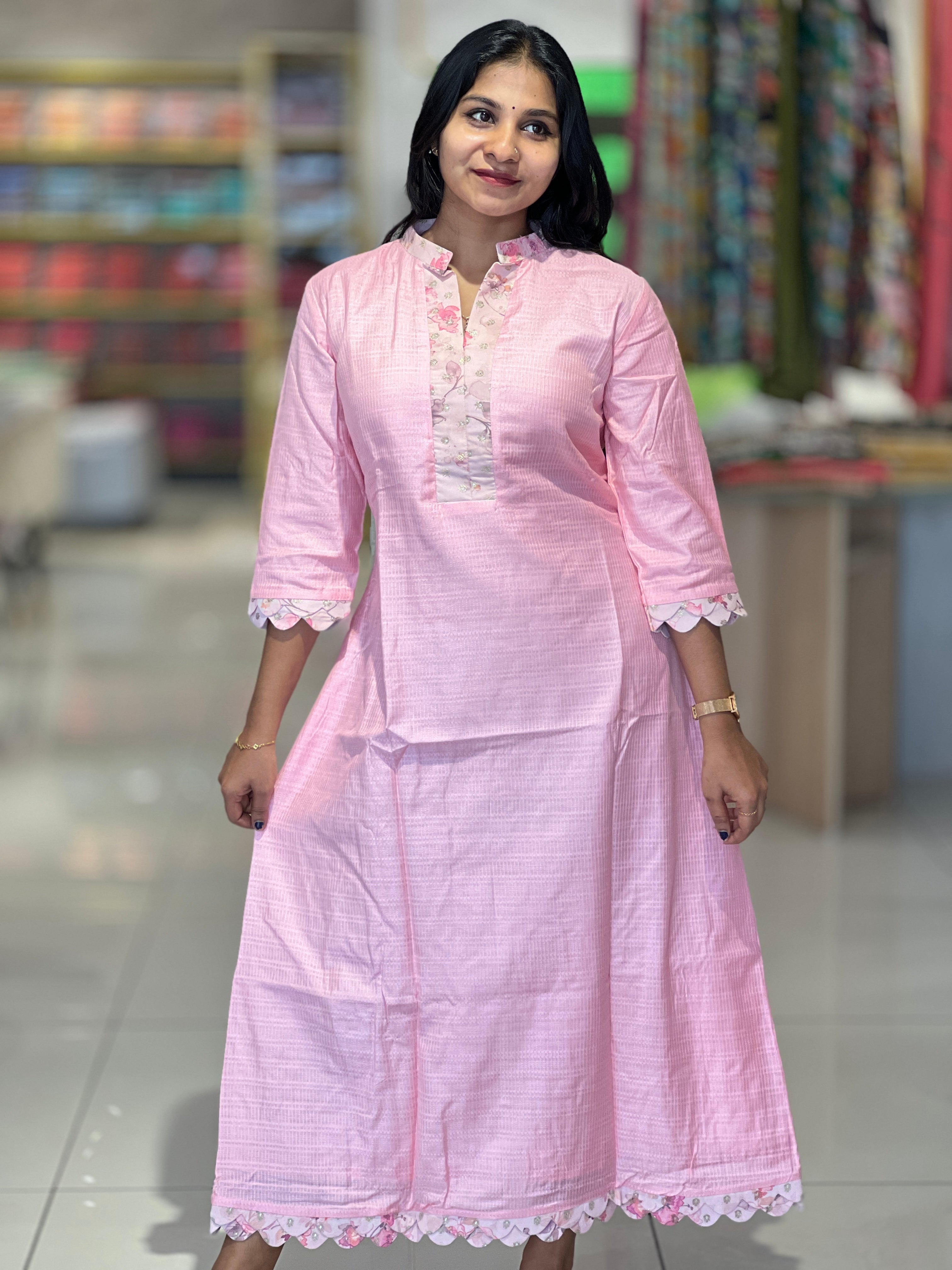 - Style: Separate Fabric Patch Detailed Yoke & Sleeves & lower Hem Portion, A-Line Pattern