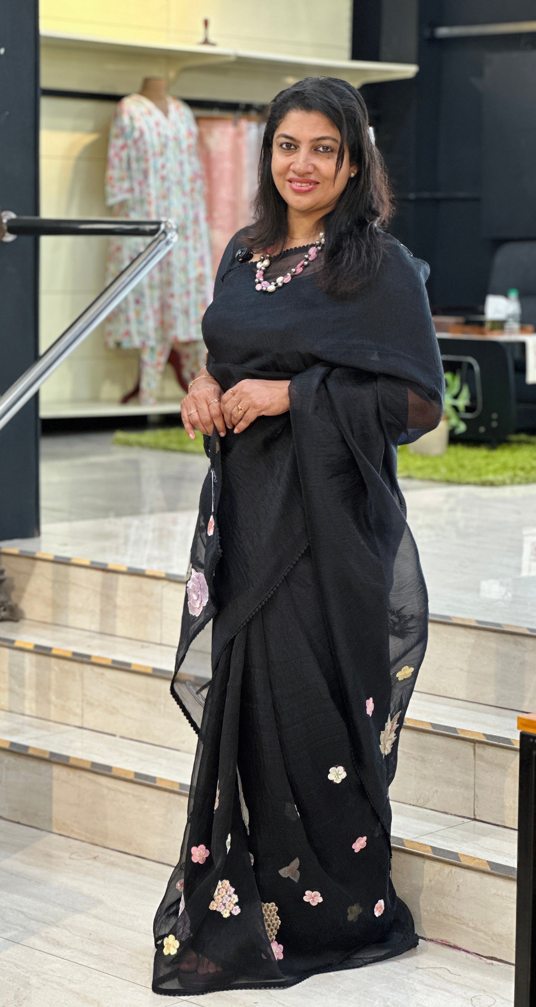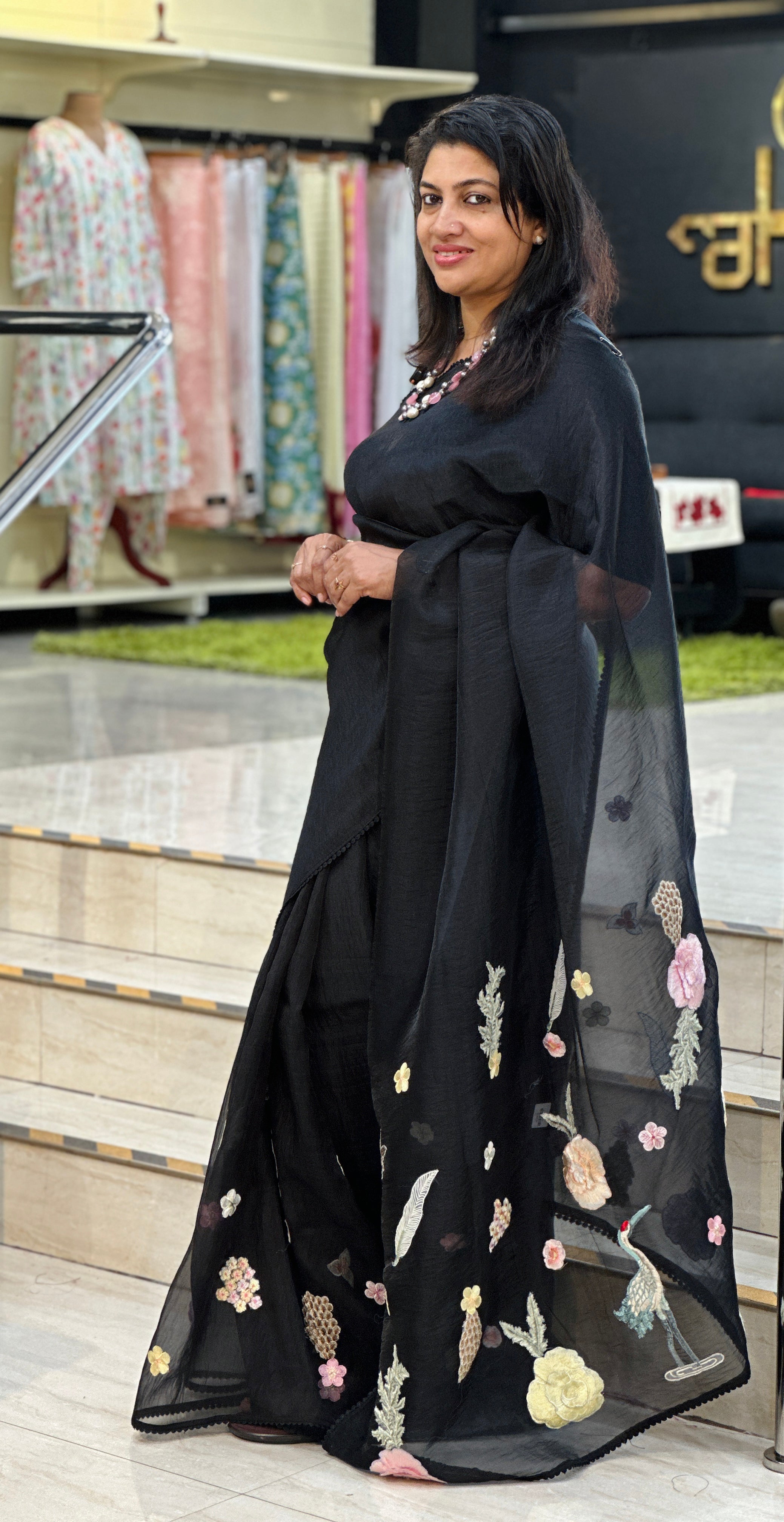 • Patch Detailed Shimmer Organza Saree | BLD1512