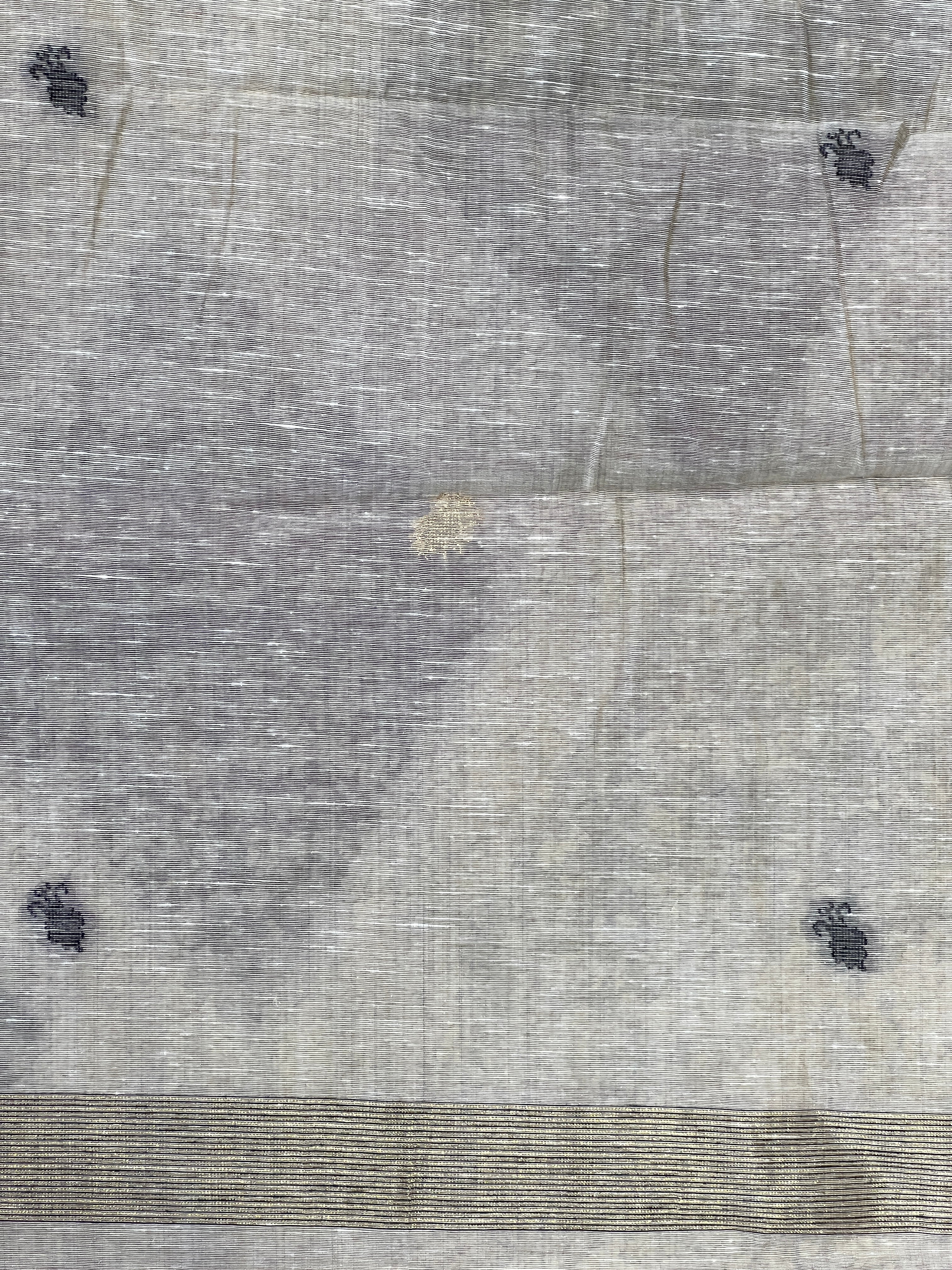 • Style: Traditional Jamdani, Zari Weaving, Peacock and Floral Designed, Scattered Motifs, Zari Weaving on Pallu, Border Detailing