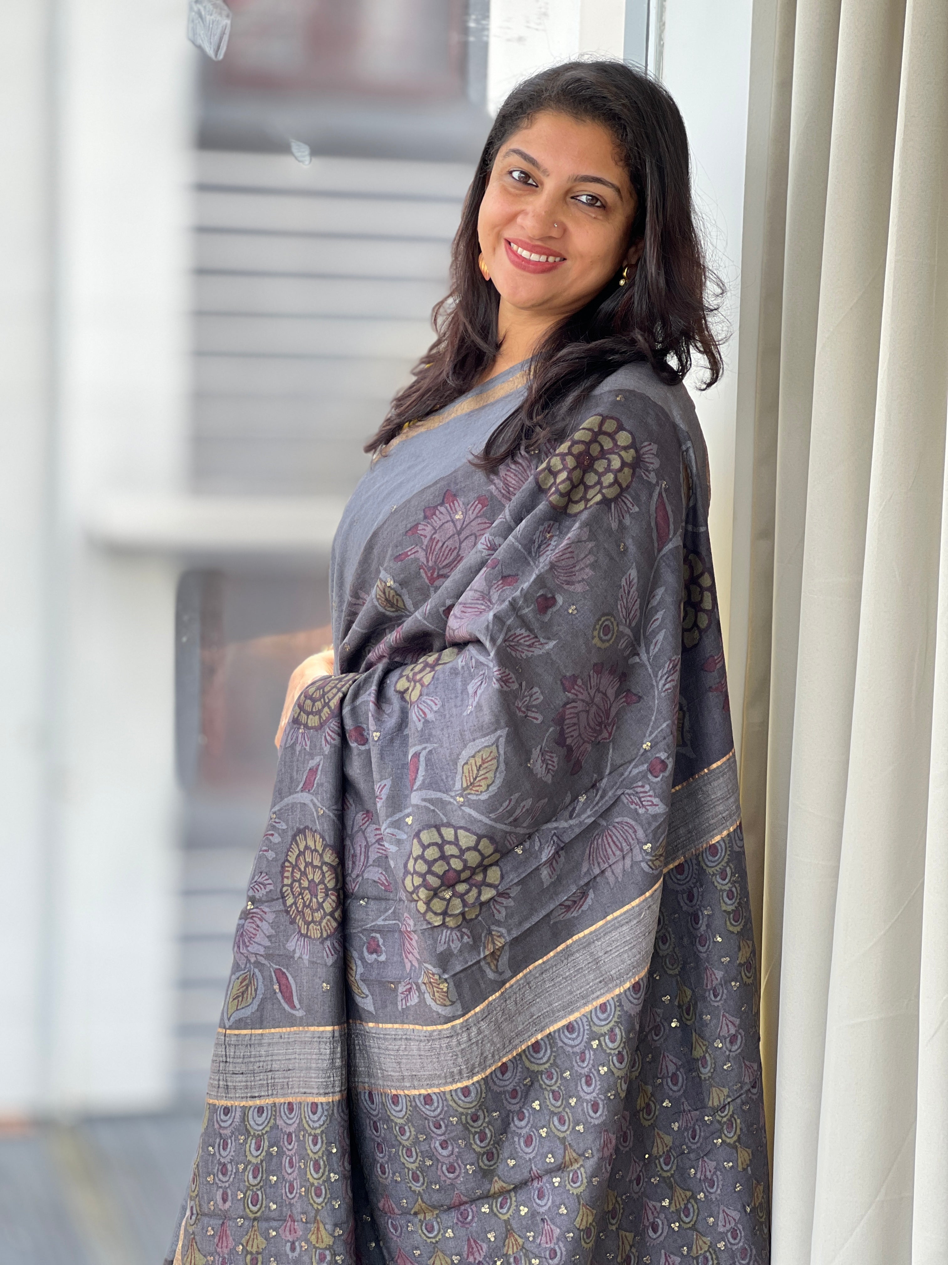 - Style: Traditional Pen Kalamkari Detailing, Basket Weaving With Sequence Detailing, Zari Borders