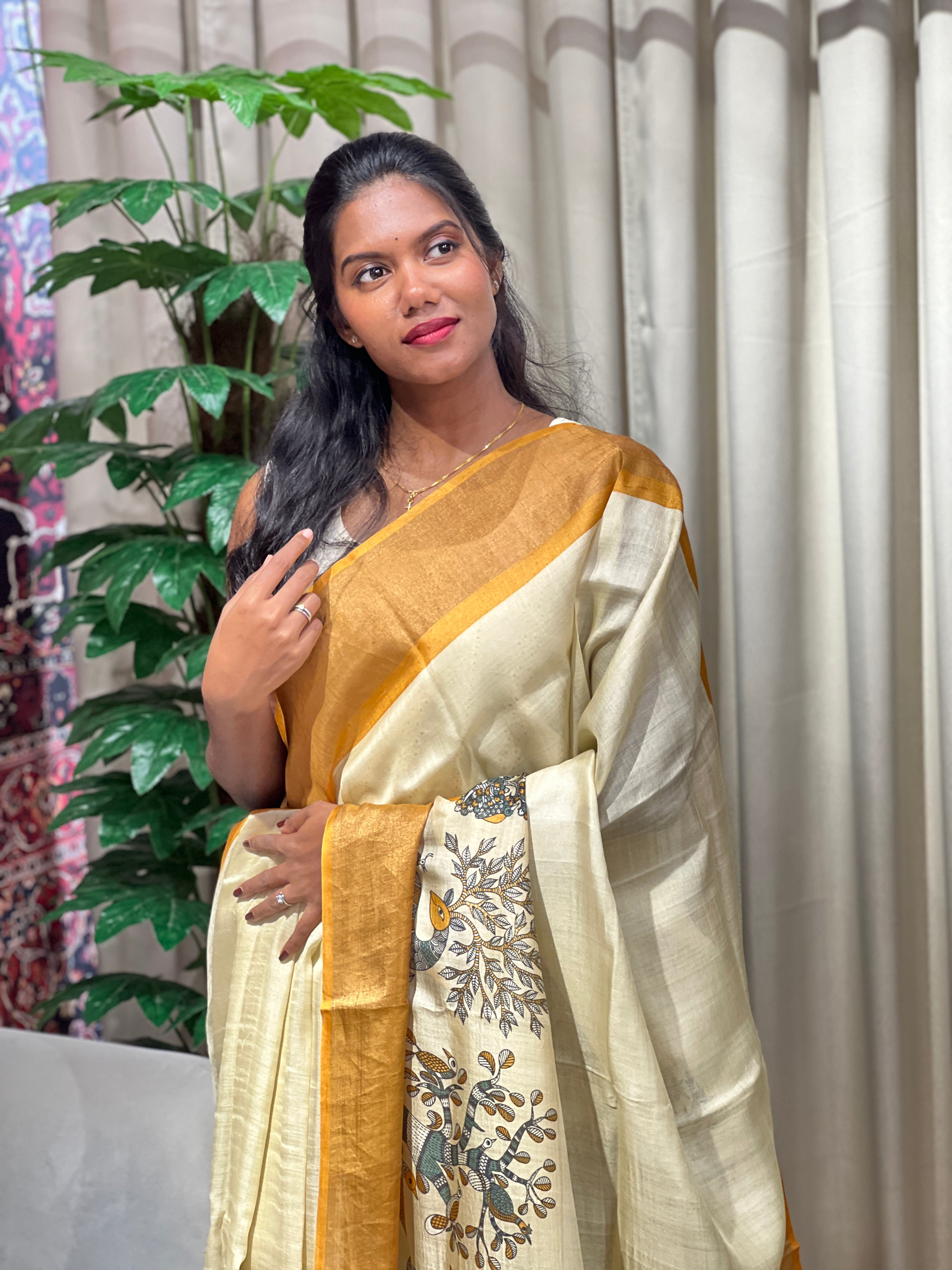 Pichwai Print Detailed Pure Tussar Saree | RGD1009 Pichwai Print Detailed Pure Tussar Saree | RGD1009