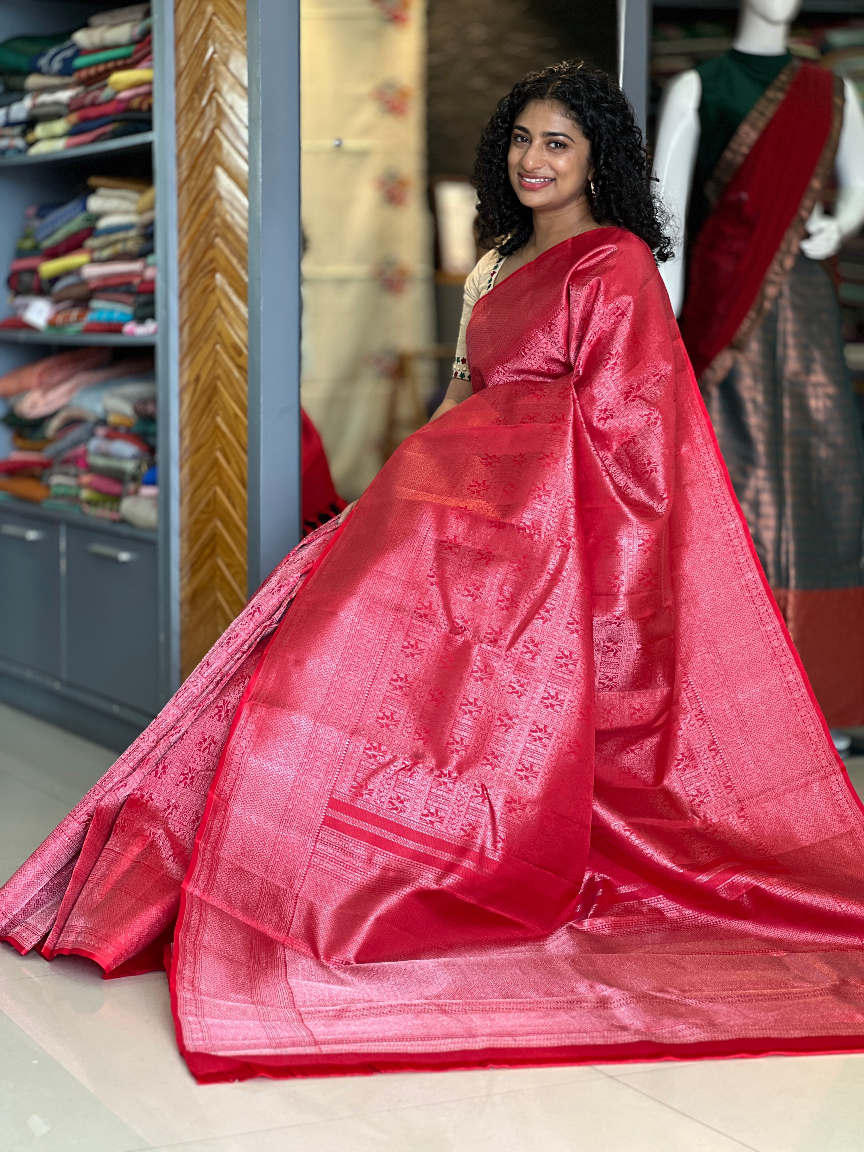 - Style: Pink Zari Weaving Pattern, Hand Woven, Rich Pallu