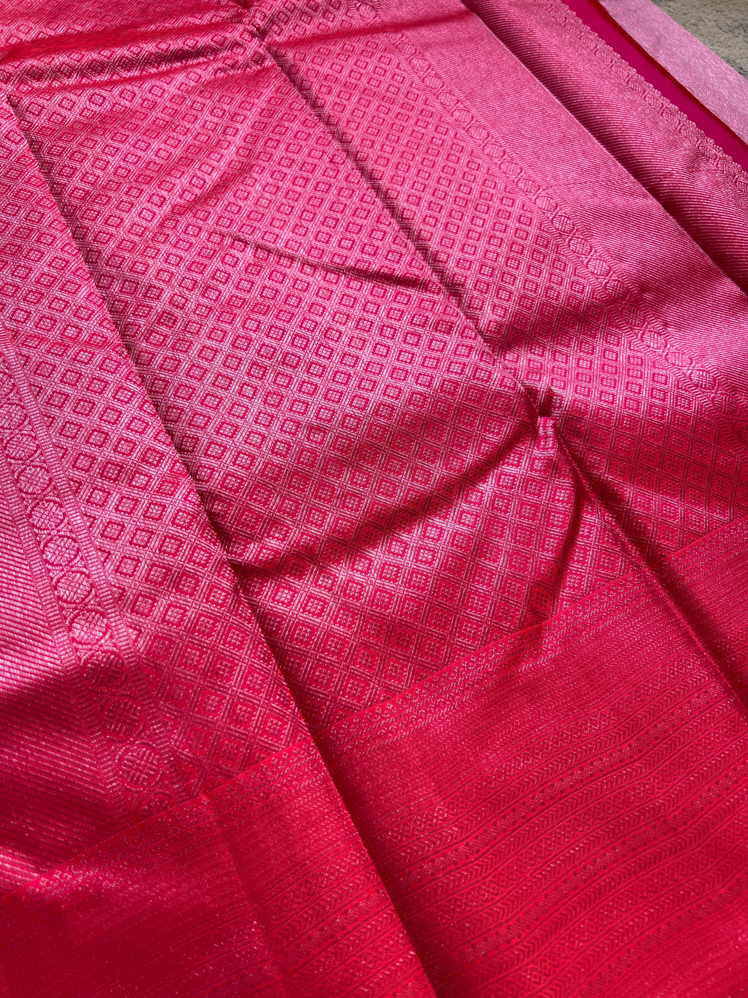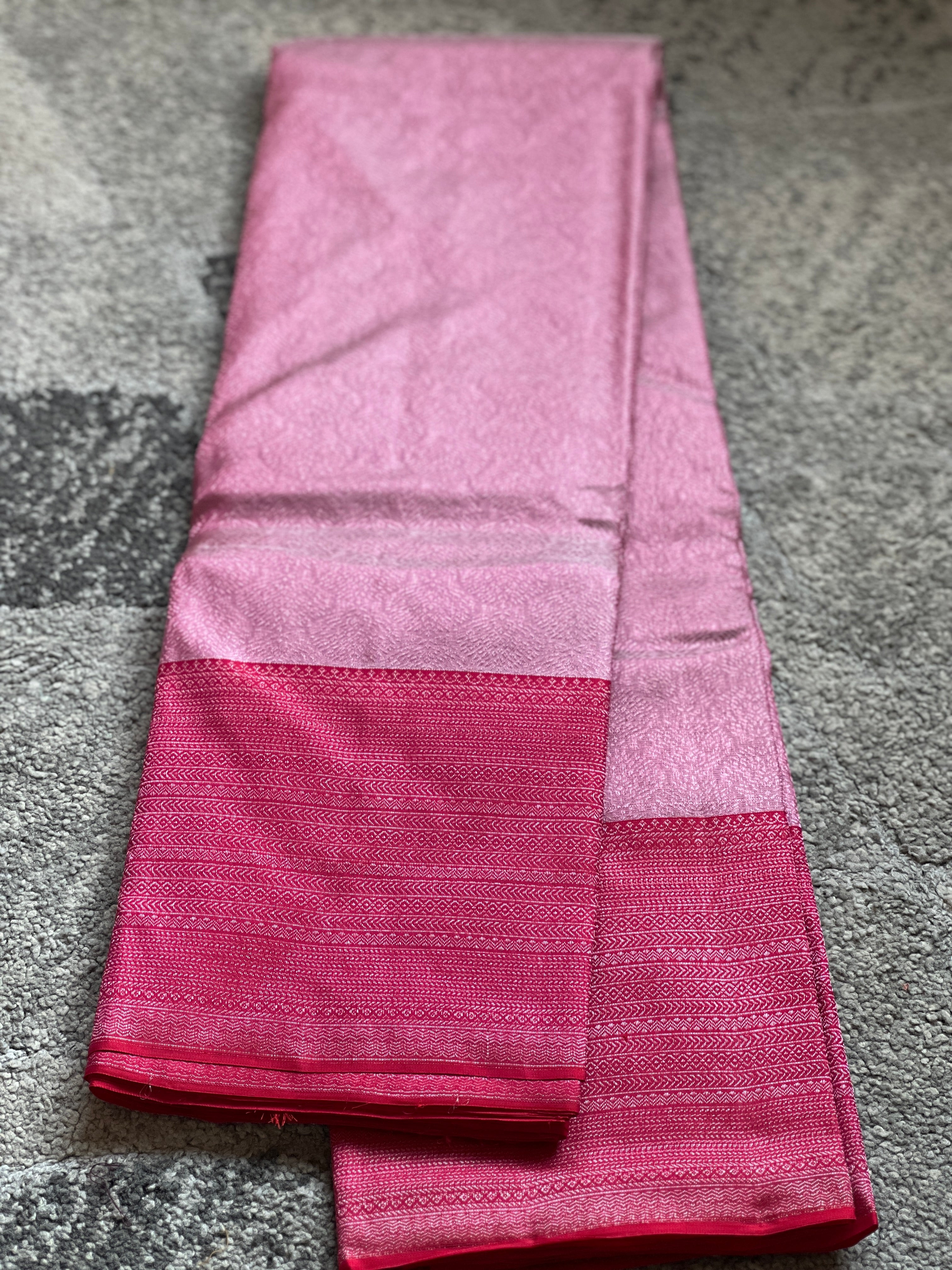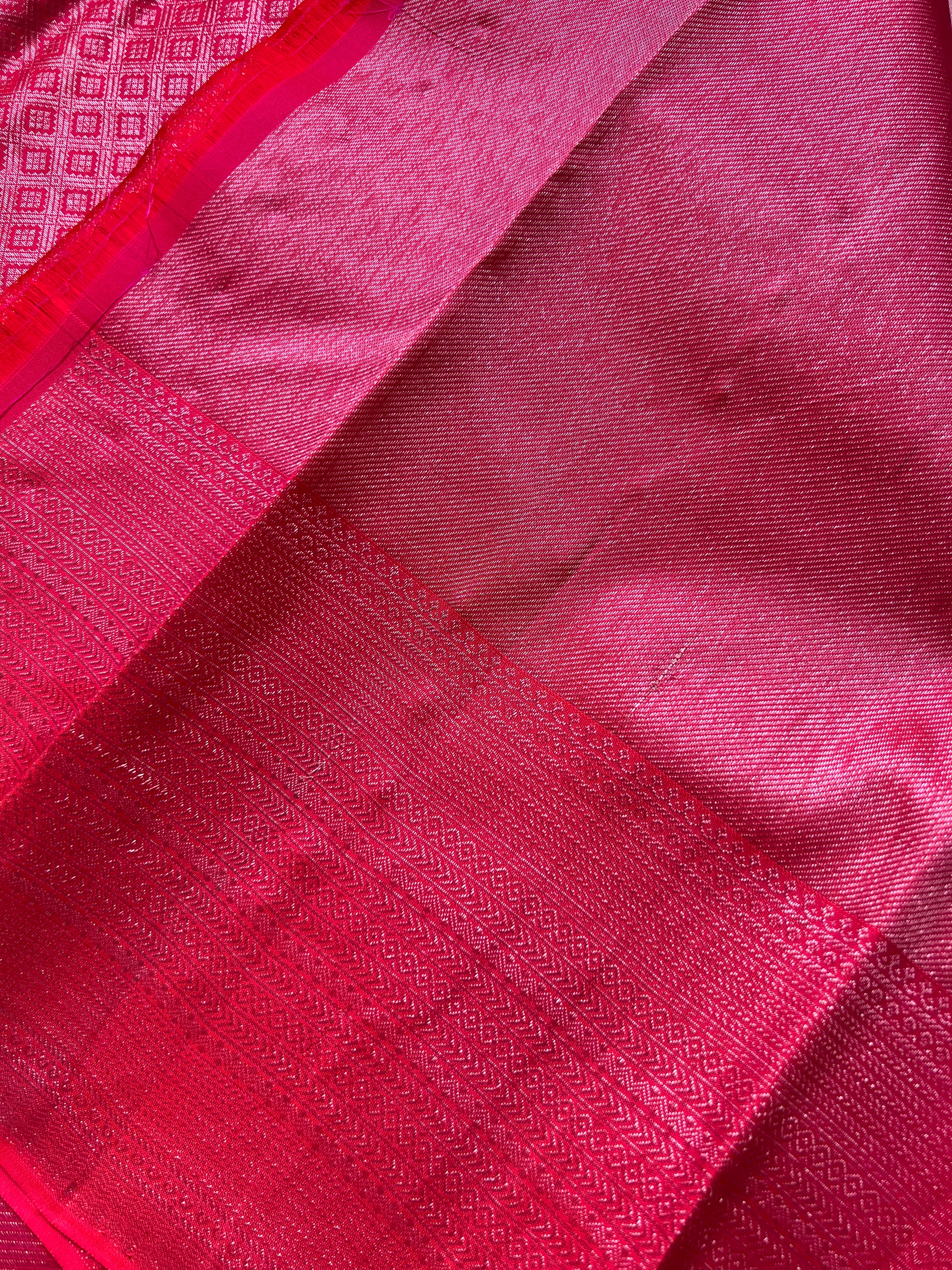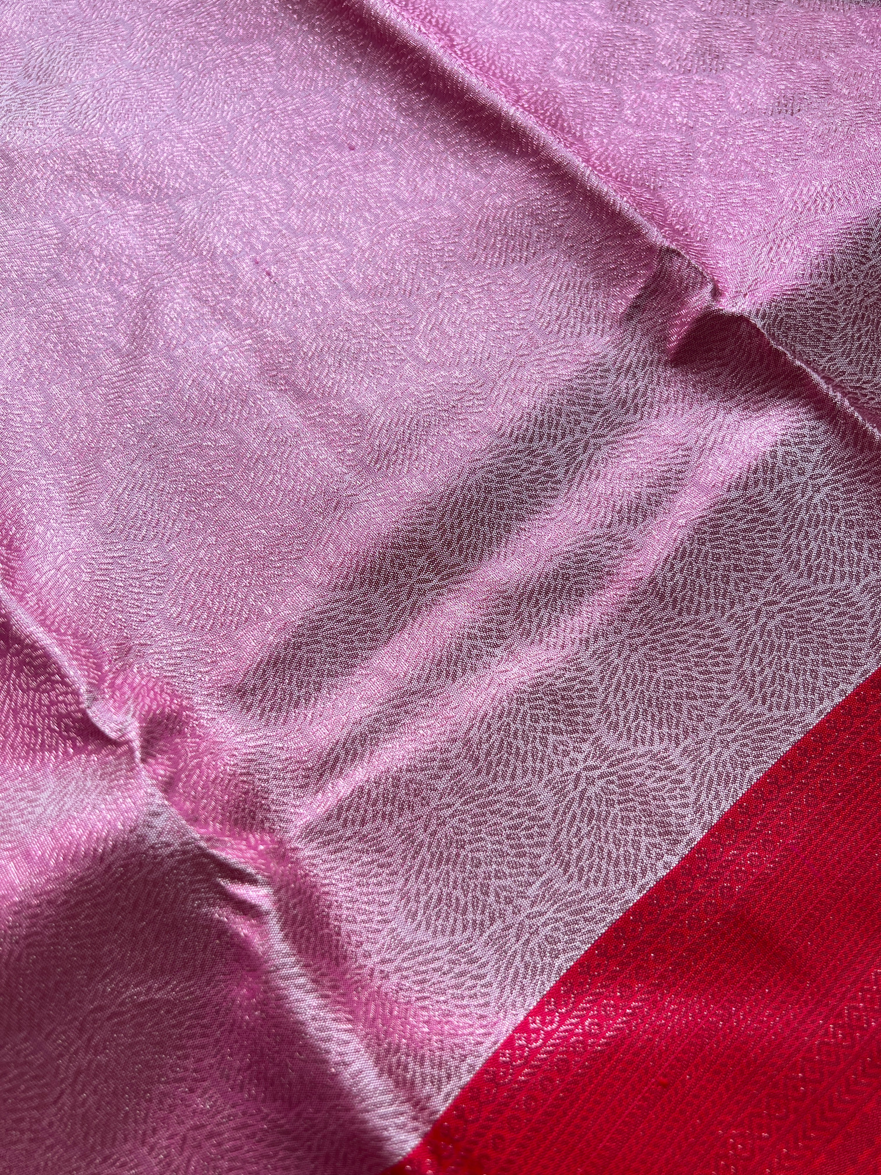 - Style: Pink Zari Woven, Floral Pattern, Traditional Patterned Borders, Diamond Patterned Contrast Pallu