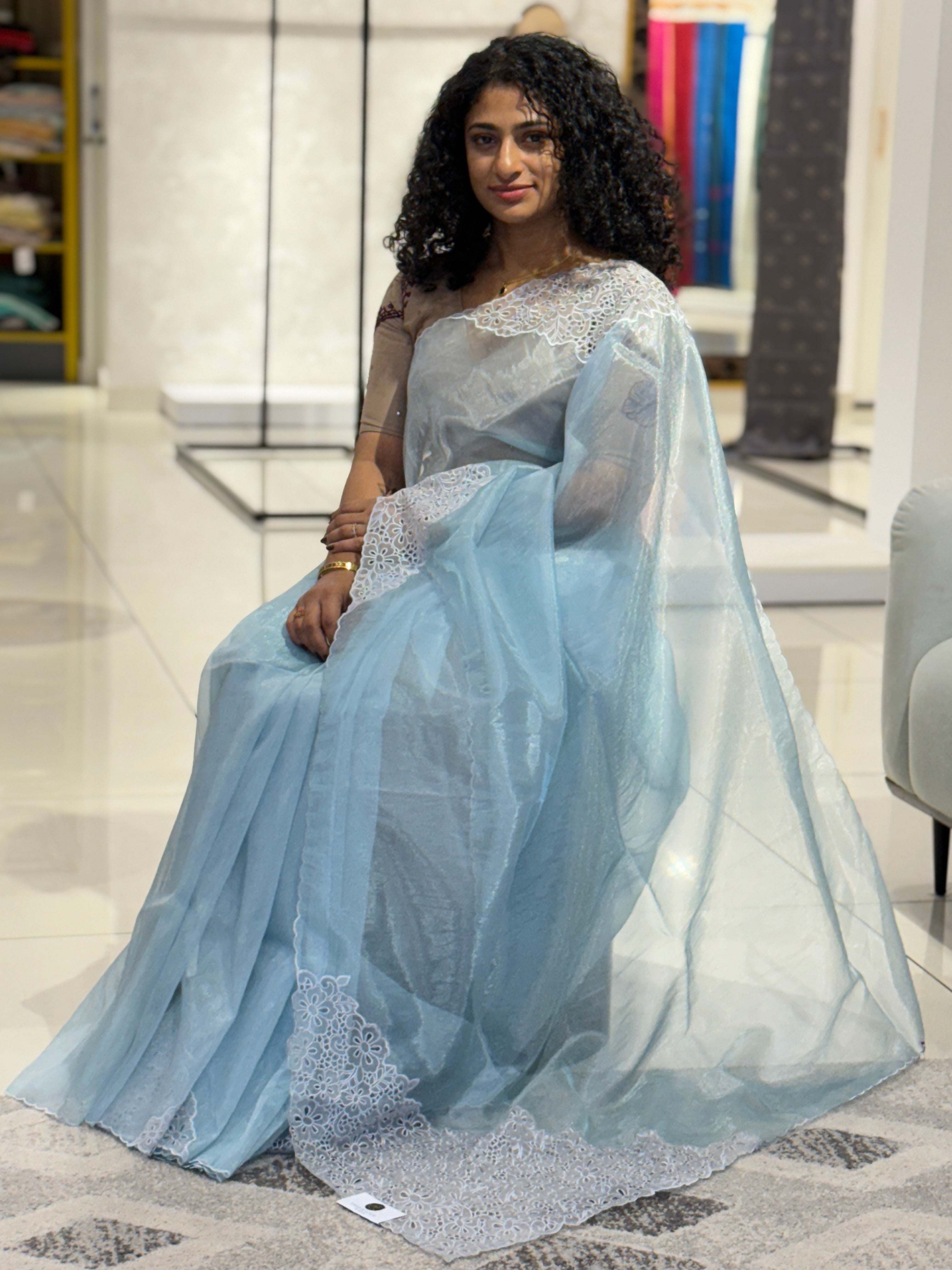 Placement Cut Work Detailed Glass Organza Saree | BLD500