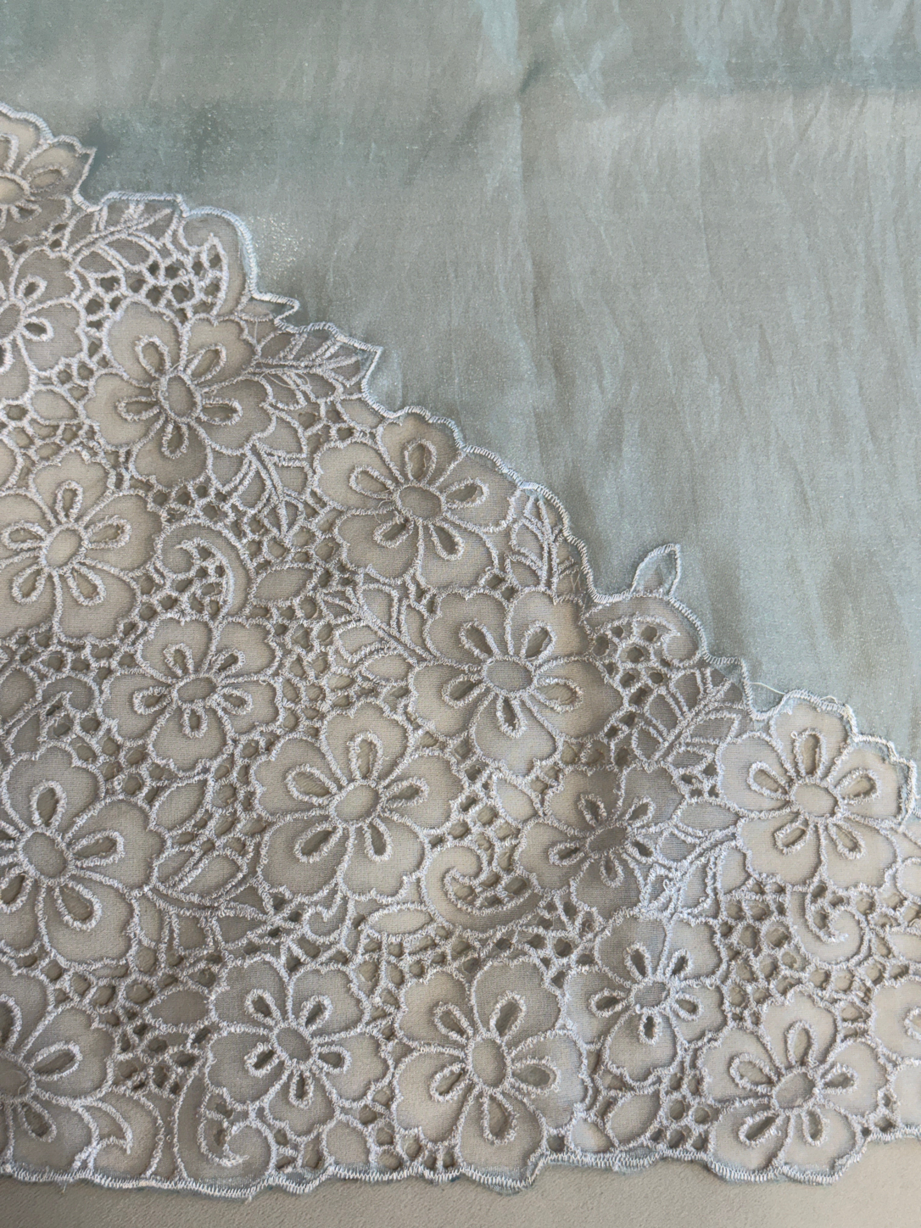 • Style: Cut Work Placement Embroidery Detailing, Scallop Edges