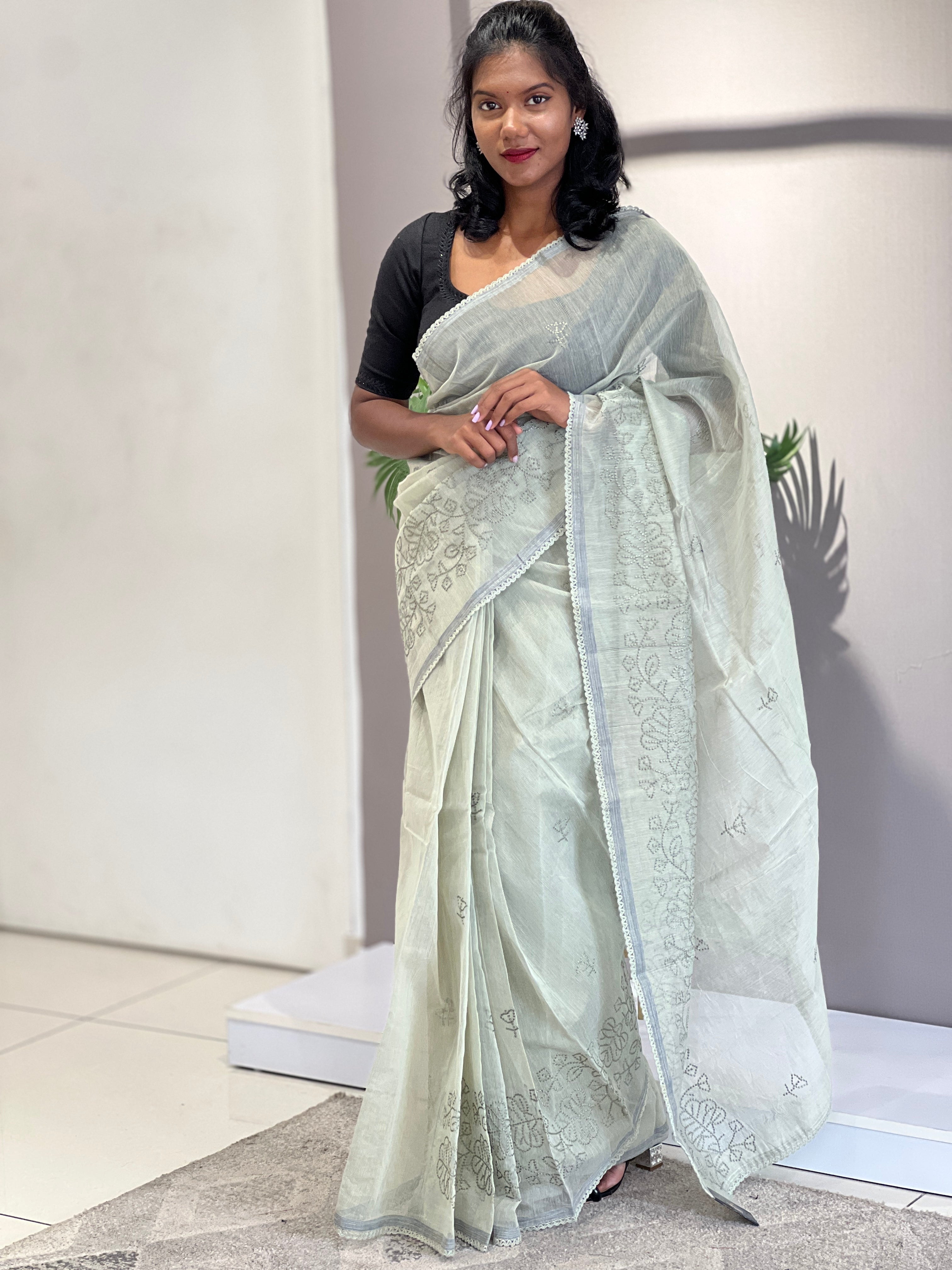 - Style: Machine Point Embroidery Floral Pattern, Scattered Embroidery Buta, Lace Detailed Edges