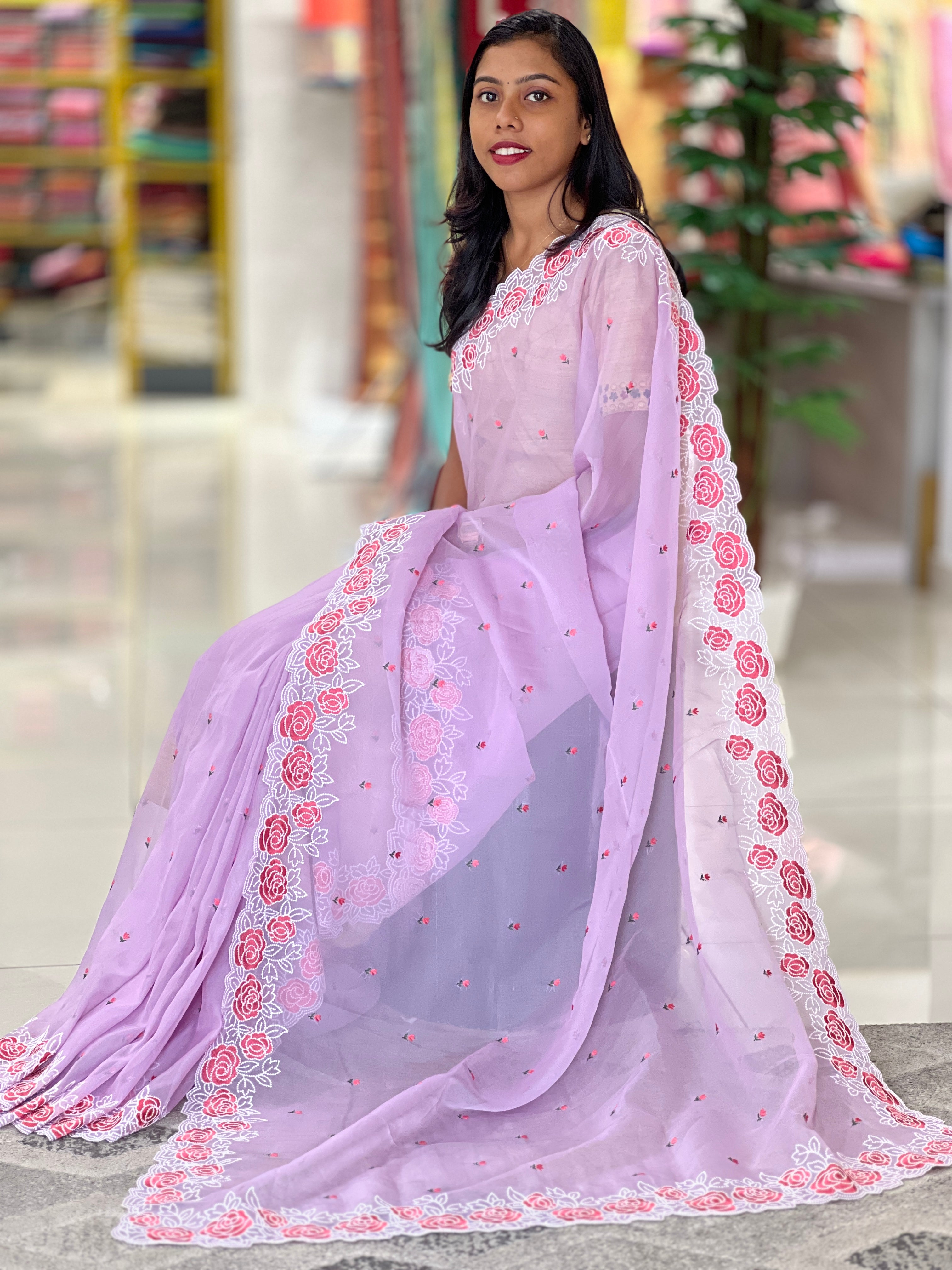 - Style: Machine Point Embroidery Detailing, Floral Pattern, Scattered Floral Buta Detailing, Scallop Edges