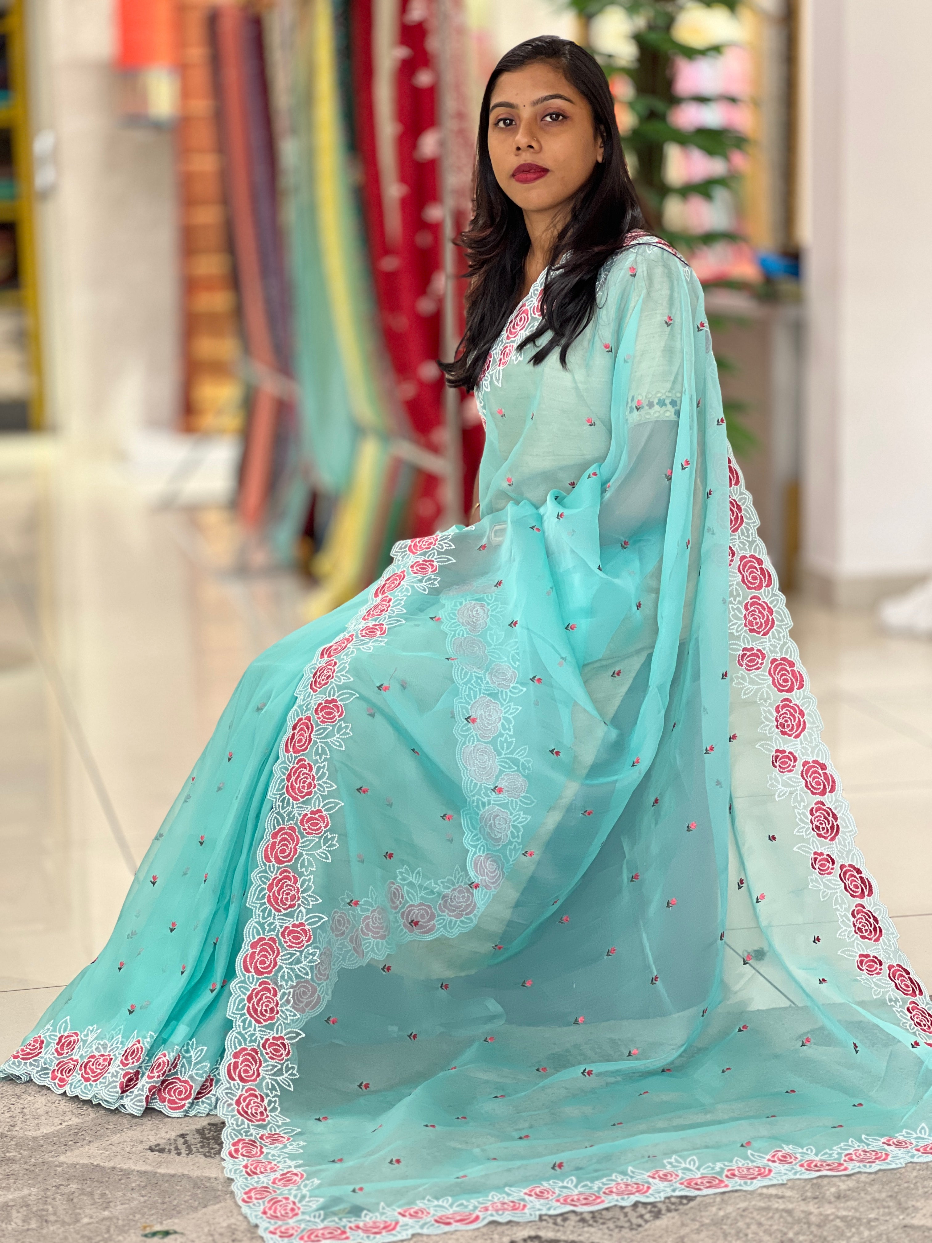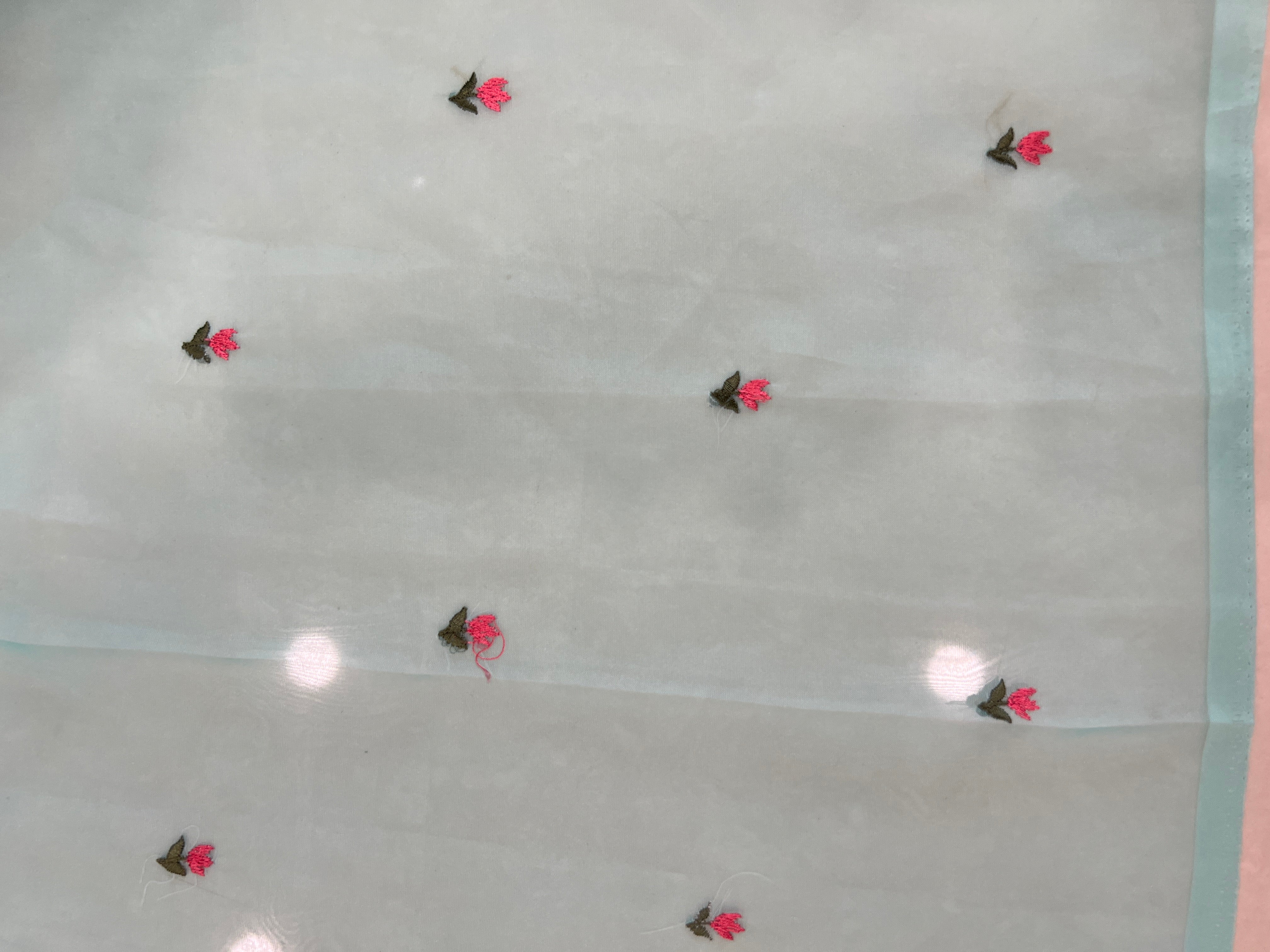 - Style: Machine Point Embroidery Detailing, Floral Pattern, Scattered Floral Buta Detailing, Scallop Edges