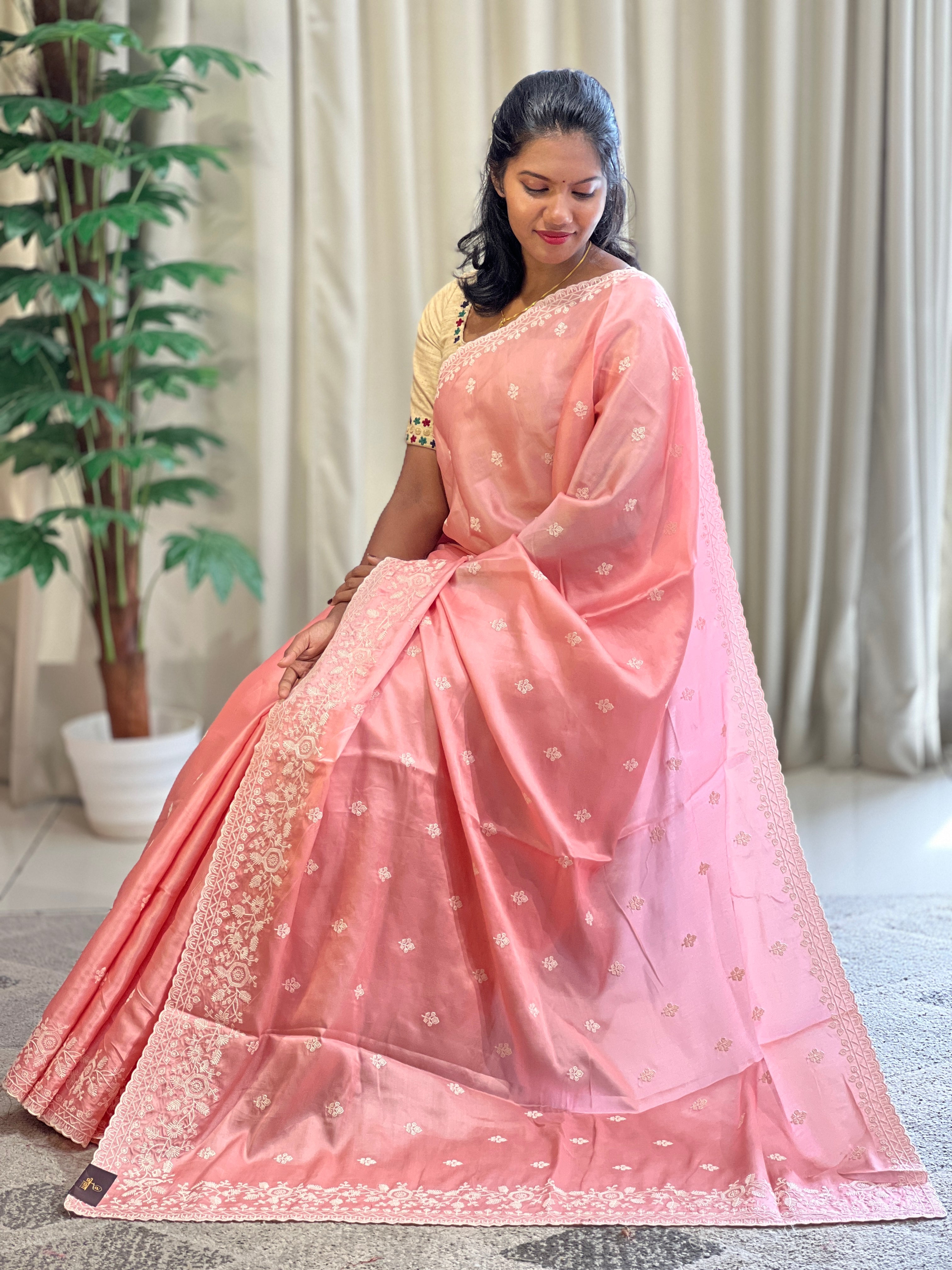 • Point Embroidery Detailed Tussar Finish Saree | SUN340