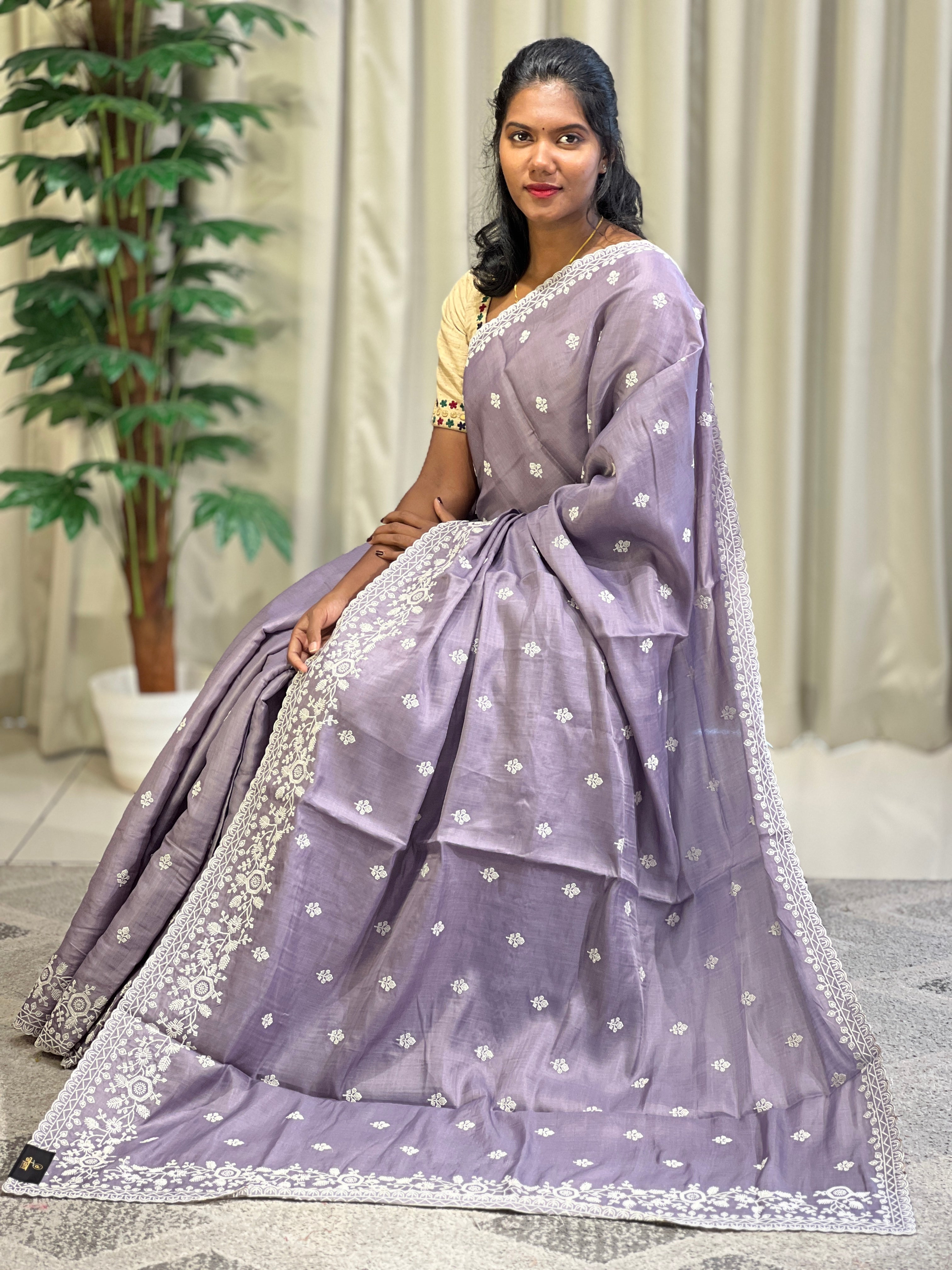 • Point Embroidery Detailed Tussar Finish Saree | SUN343