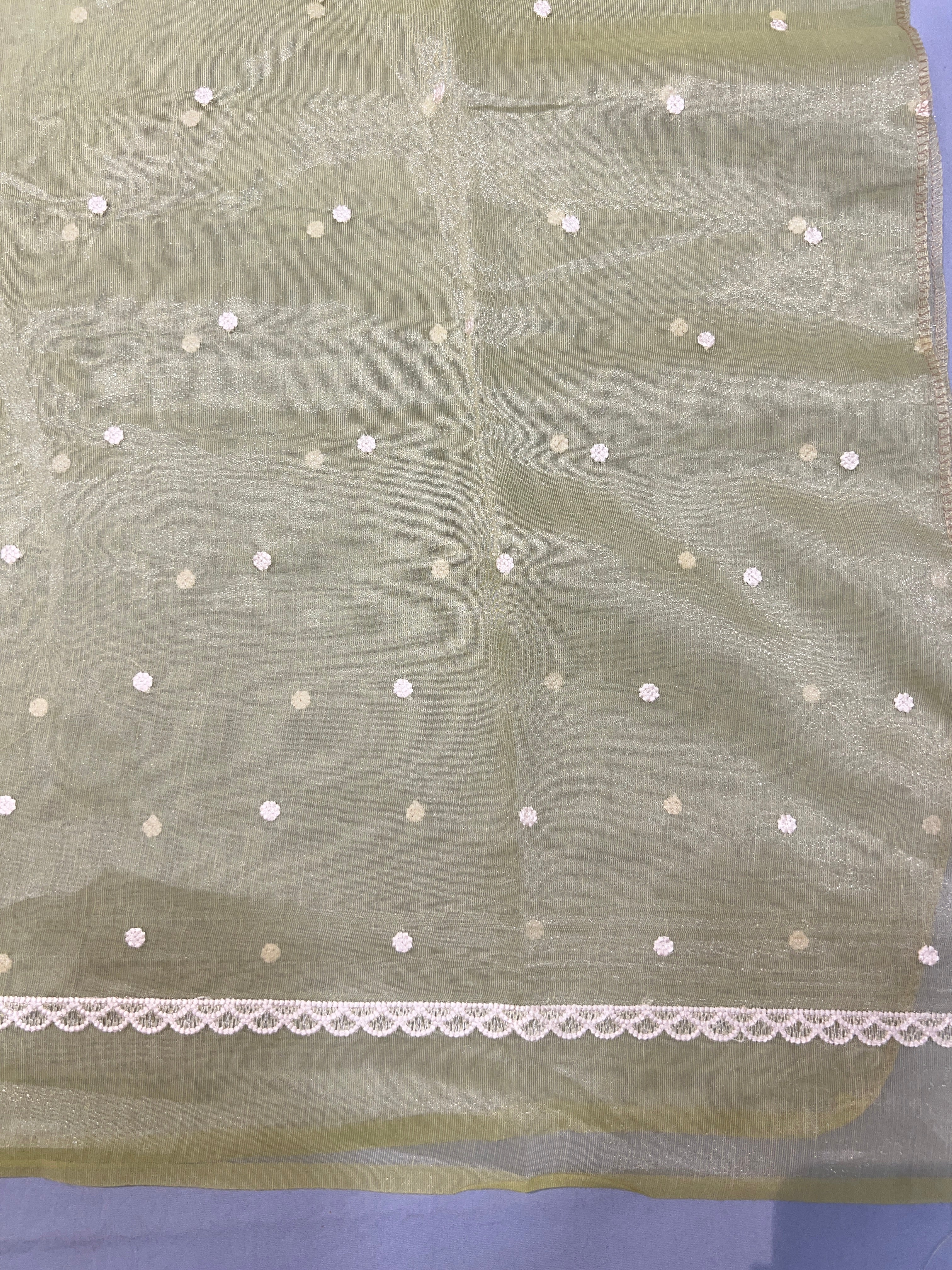 • Point Embroidery Detailed Viscose Organza Saree | SUN511