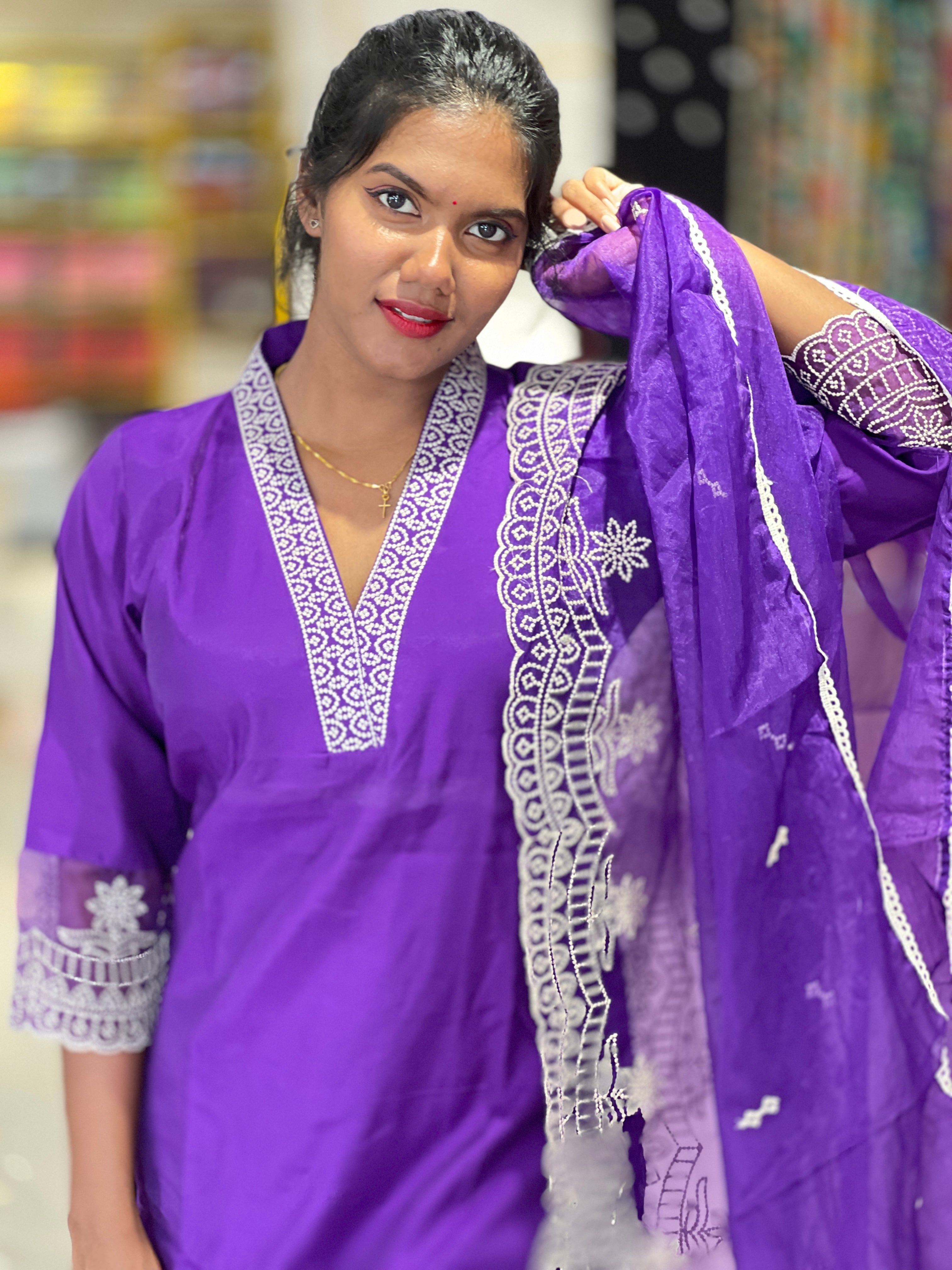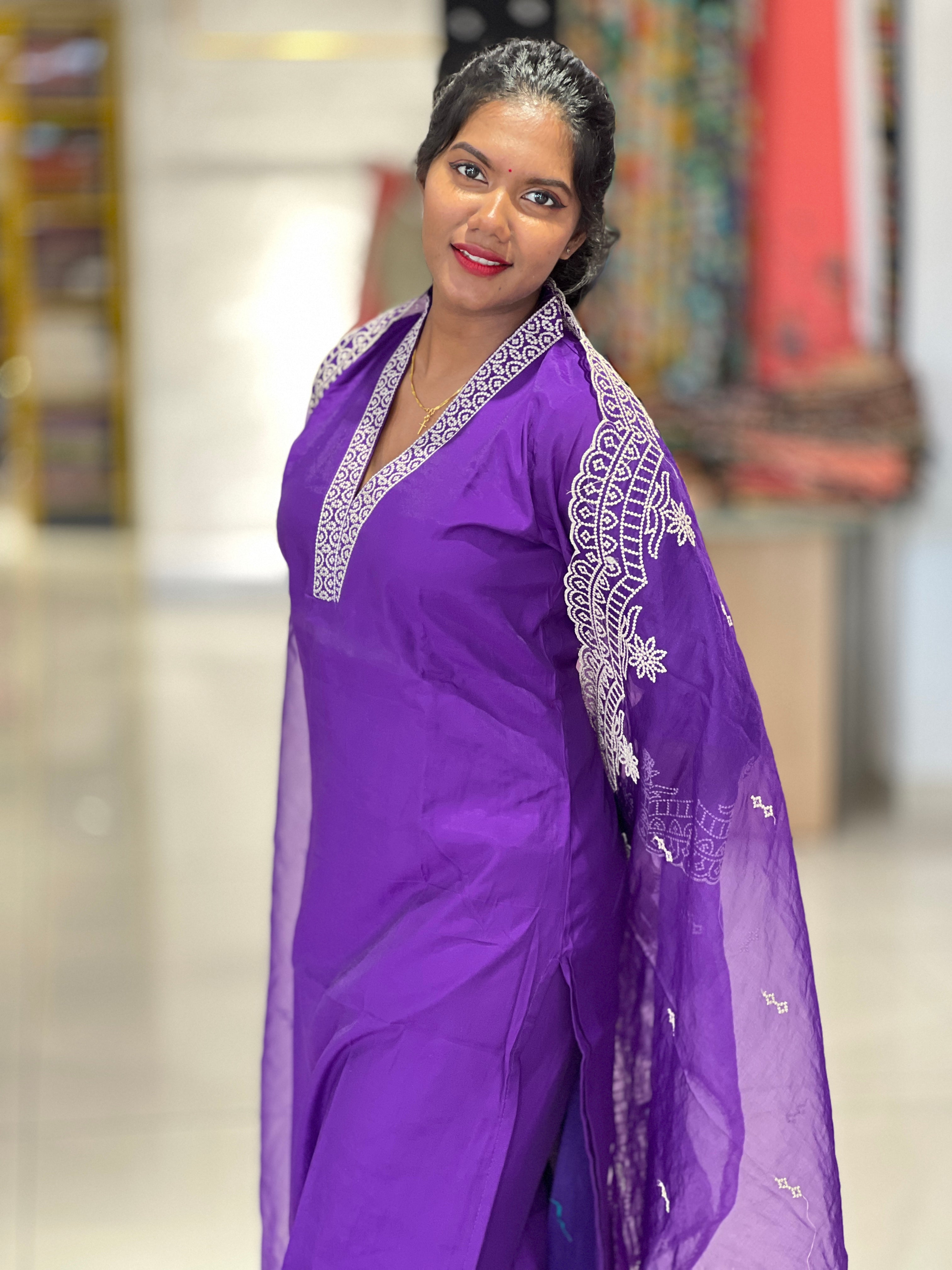 - Style: Point Embroidery Detailing, Patch Detailed Sleeves & Lower Hem Portion, Side Slit