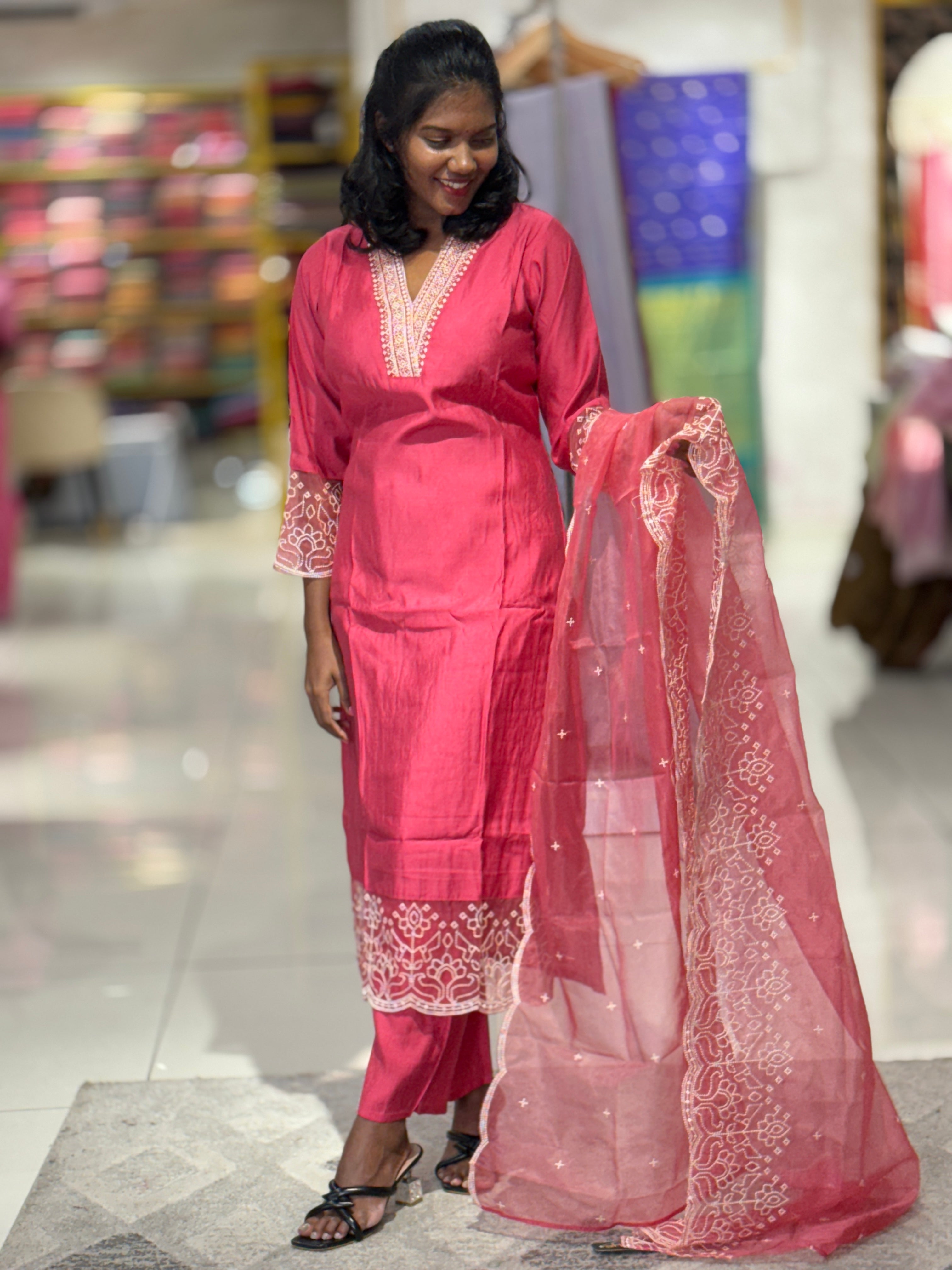 - Style: Point Embroidery Detailing, Organza Patch Detailed Sleeves & Lower Hem Portion, Side Slit