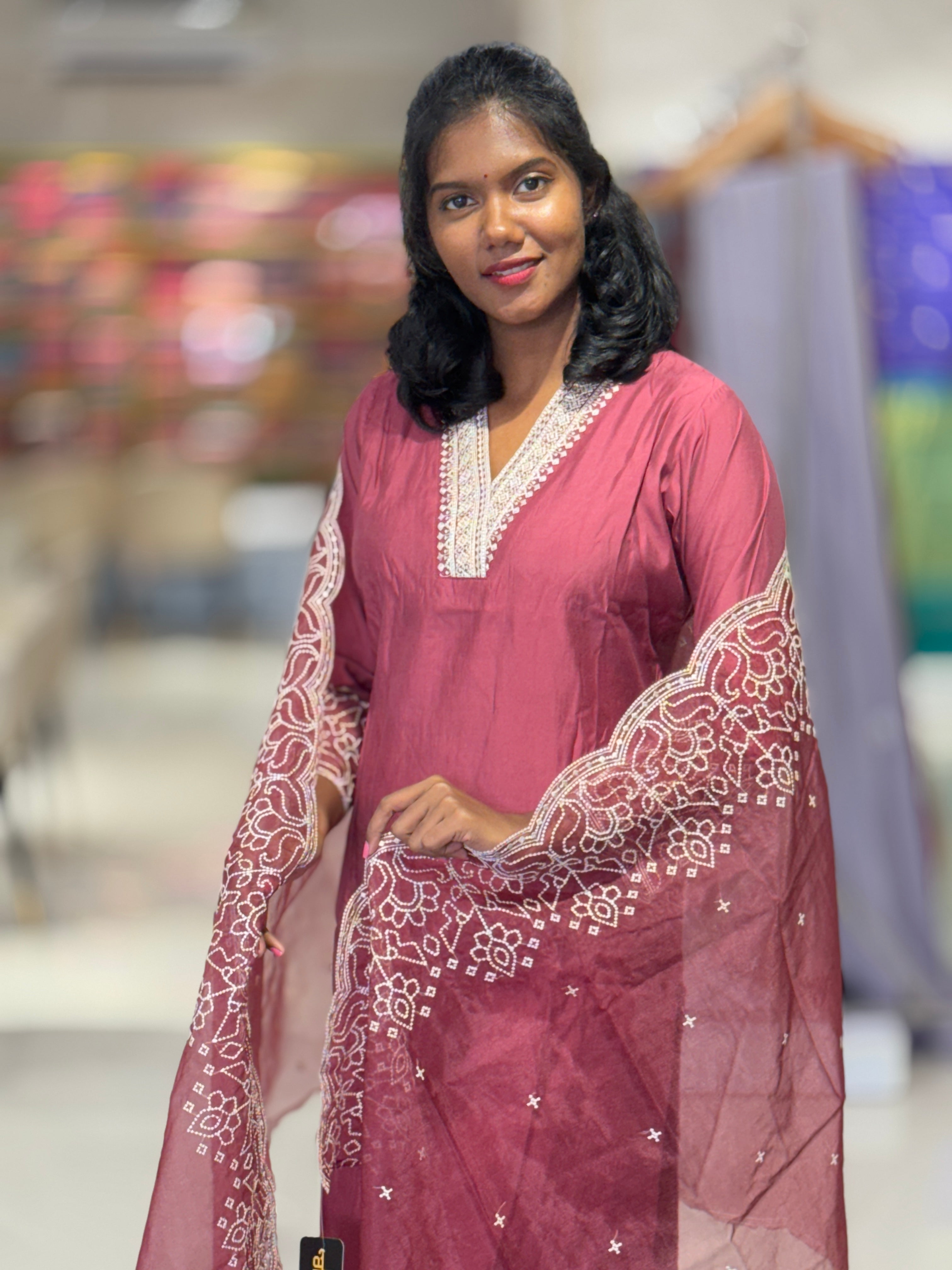 - Style: Point Embroidery Detailing, Organza Patch Detailed Sleeves & Lower Hem Portion, Side Slit