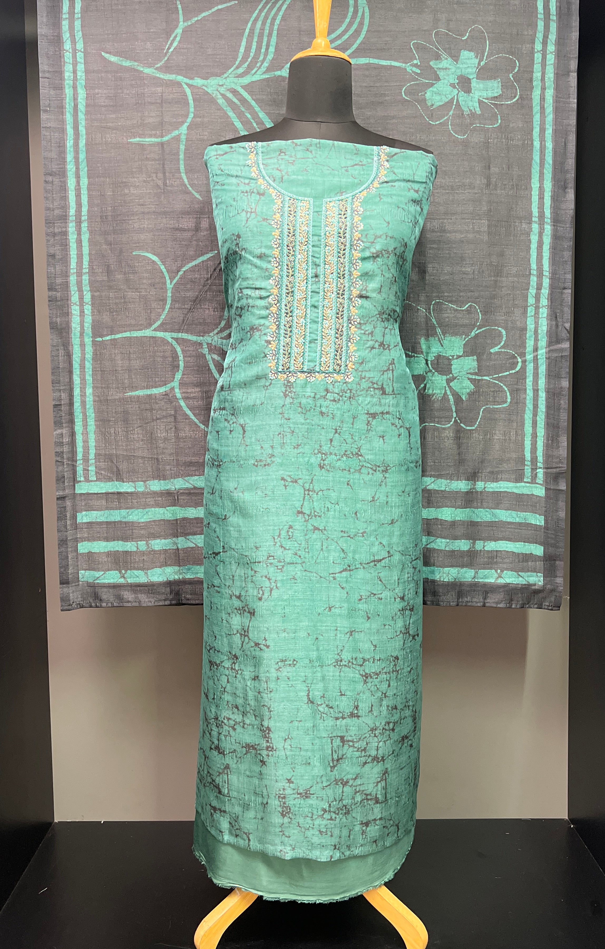 • Print With Embroidery Detailed Tussar Finish Salwar Set | KSD174