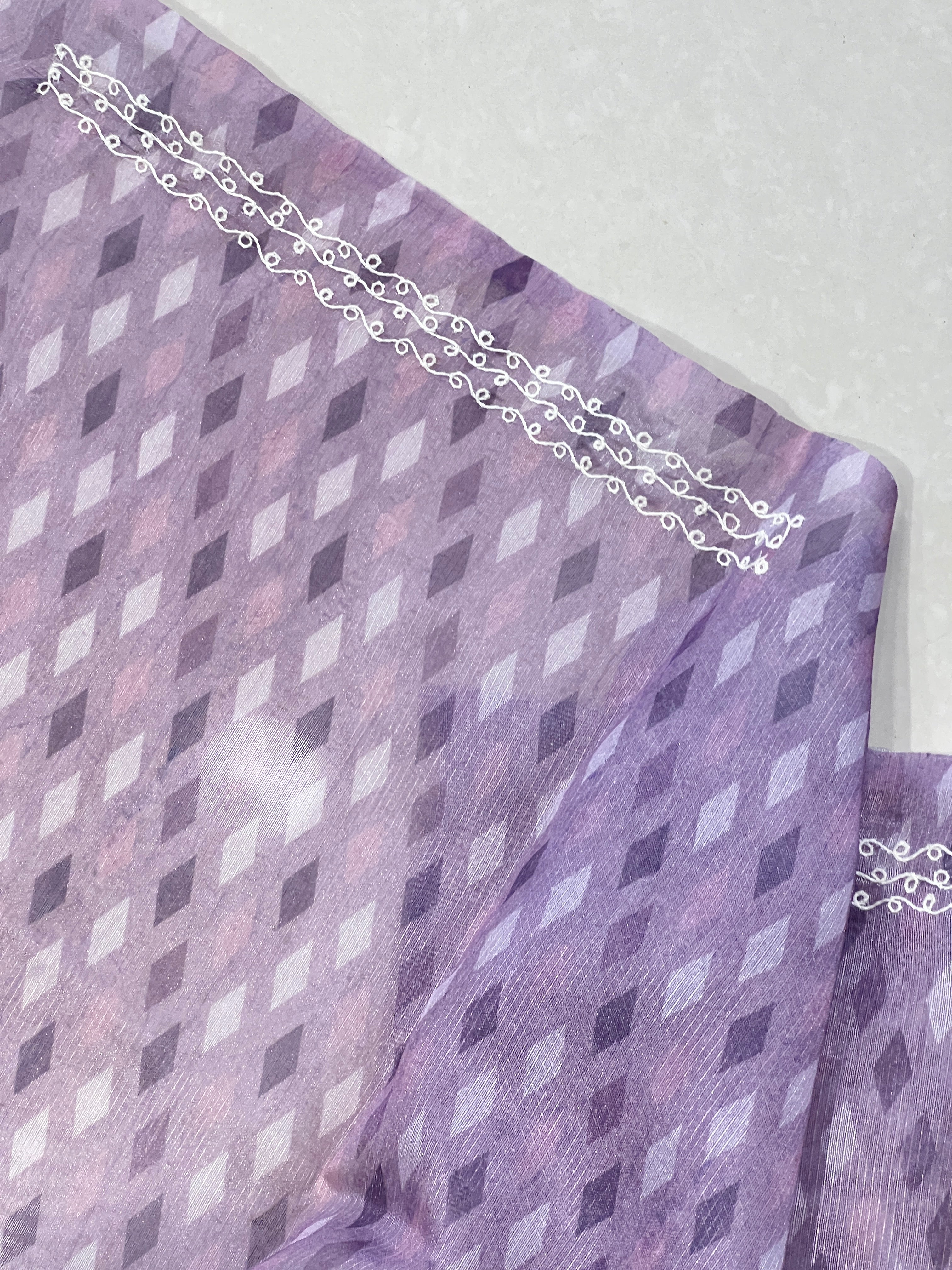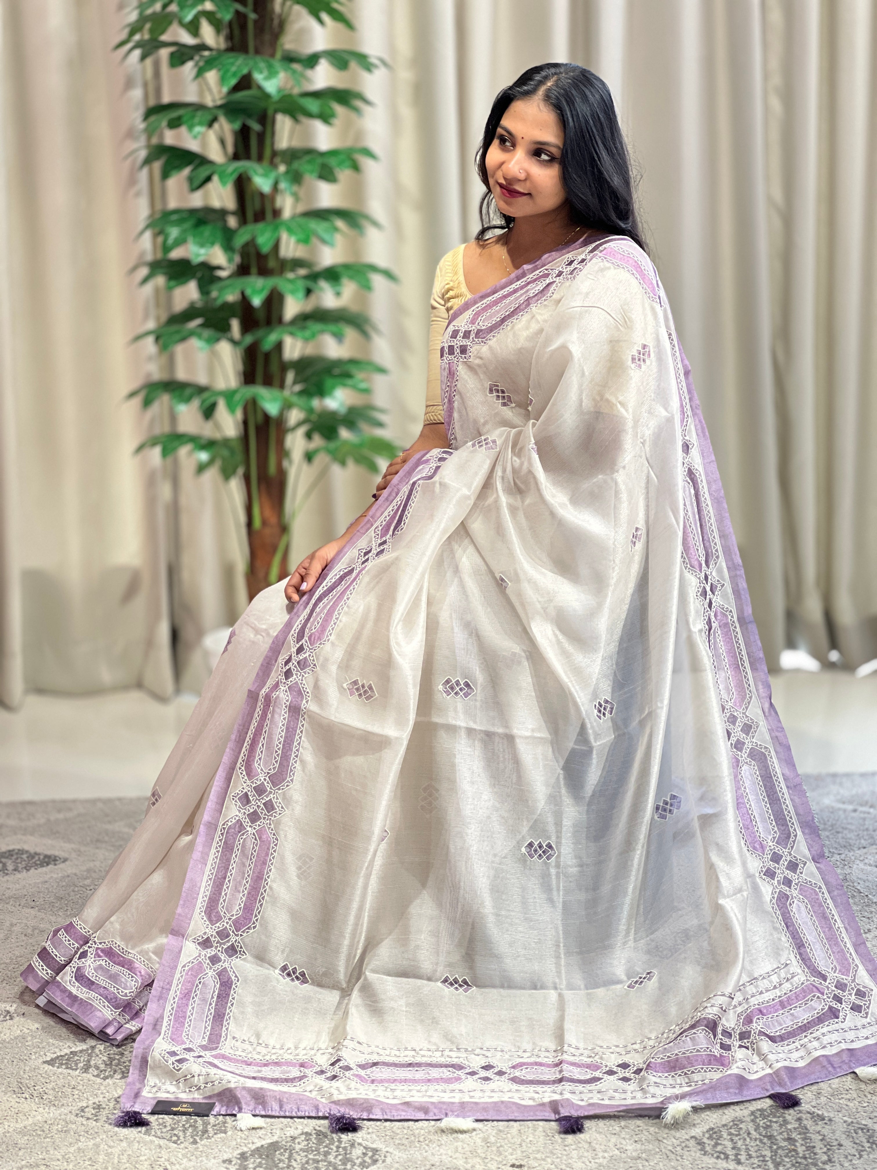 • Print With Embroidery Highlighted Tussar Organza Saree | BLD1113
