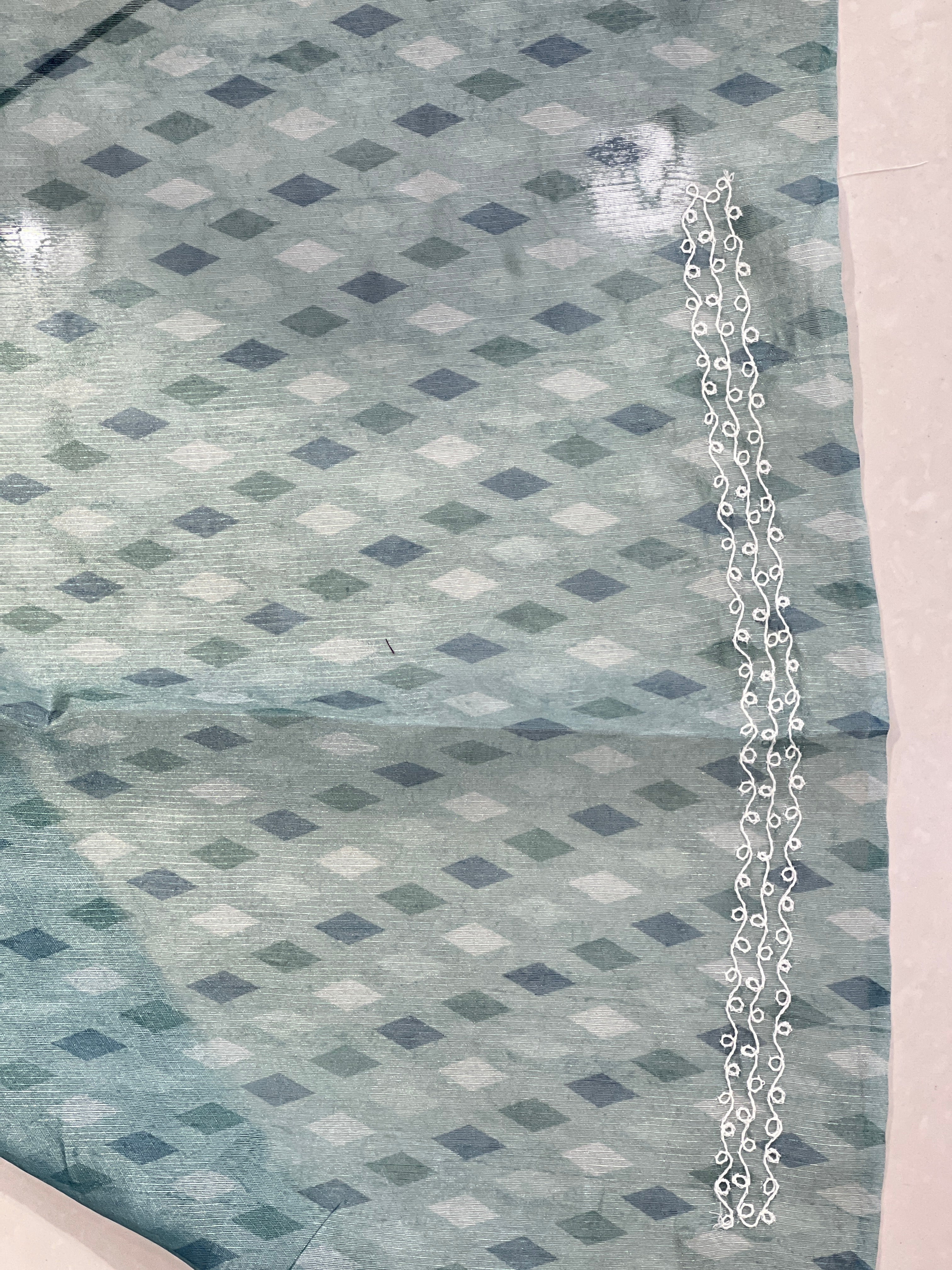 • Print With Embroidery Highlighted Tussar Organza Saree | BLD1114