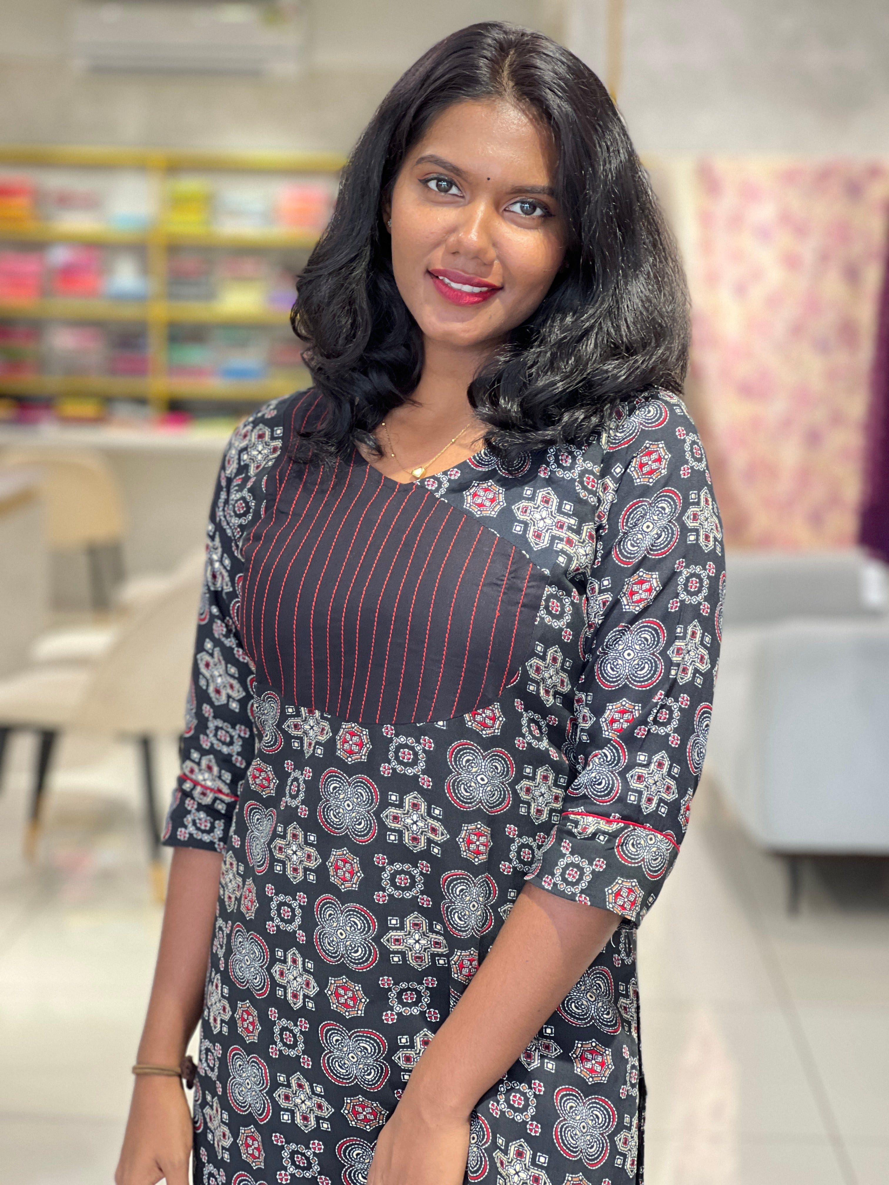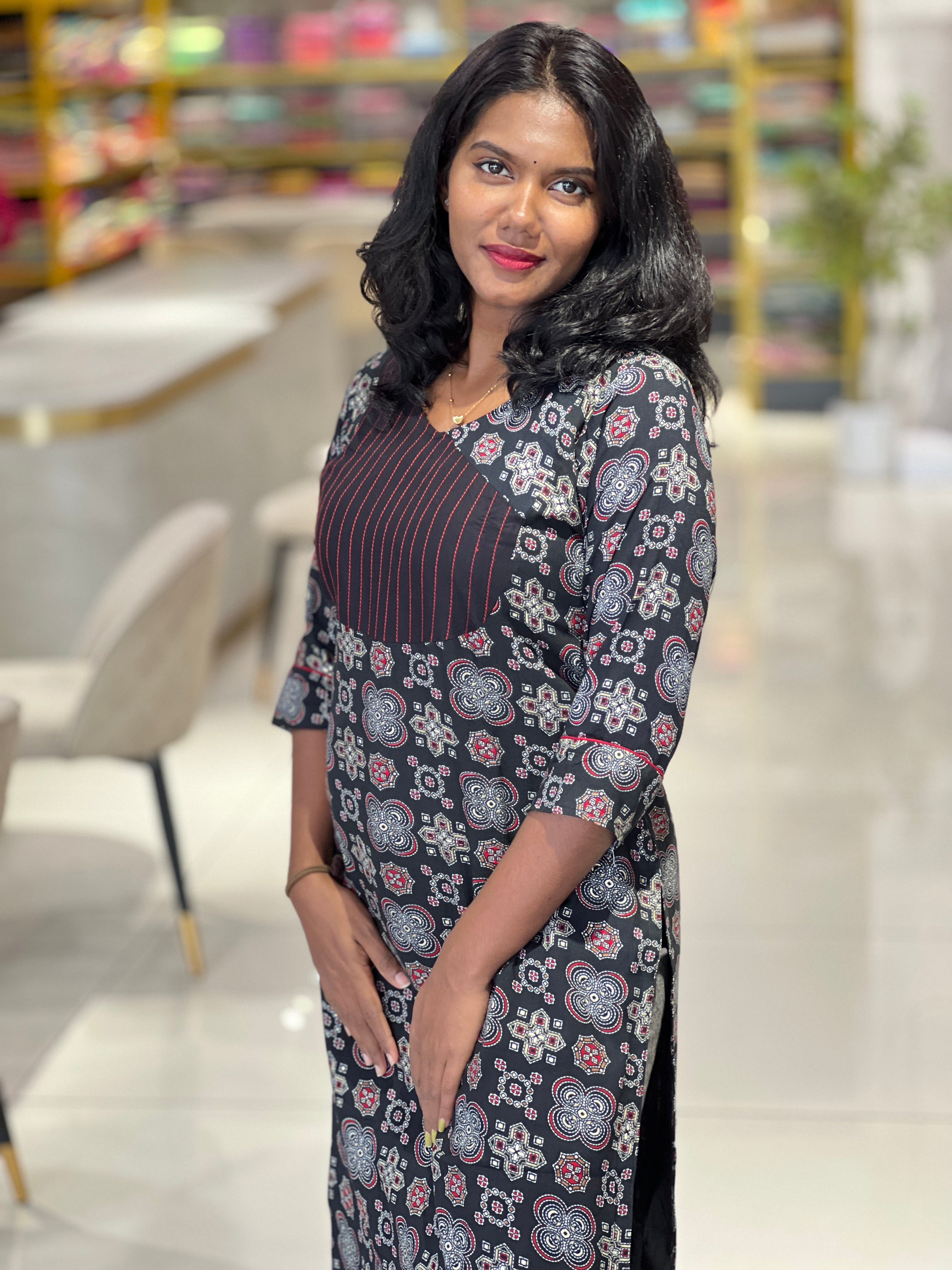 - Style: Digital Print With Foil Paint Highlight, Machine Embroidery Detailed Yoke Portion, With Lining, Side Slit Pattern