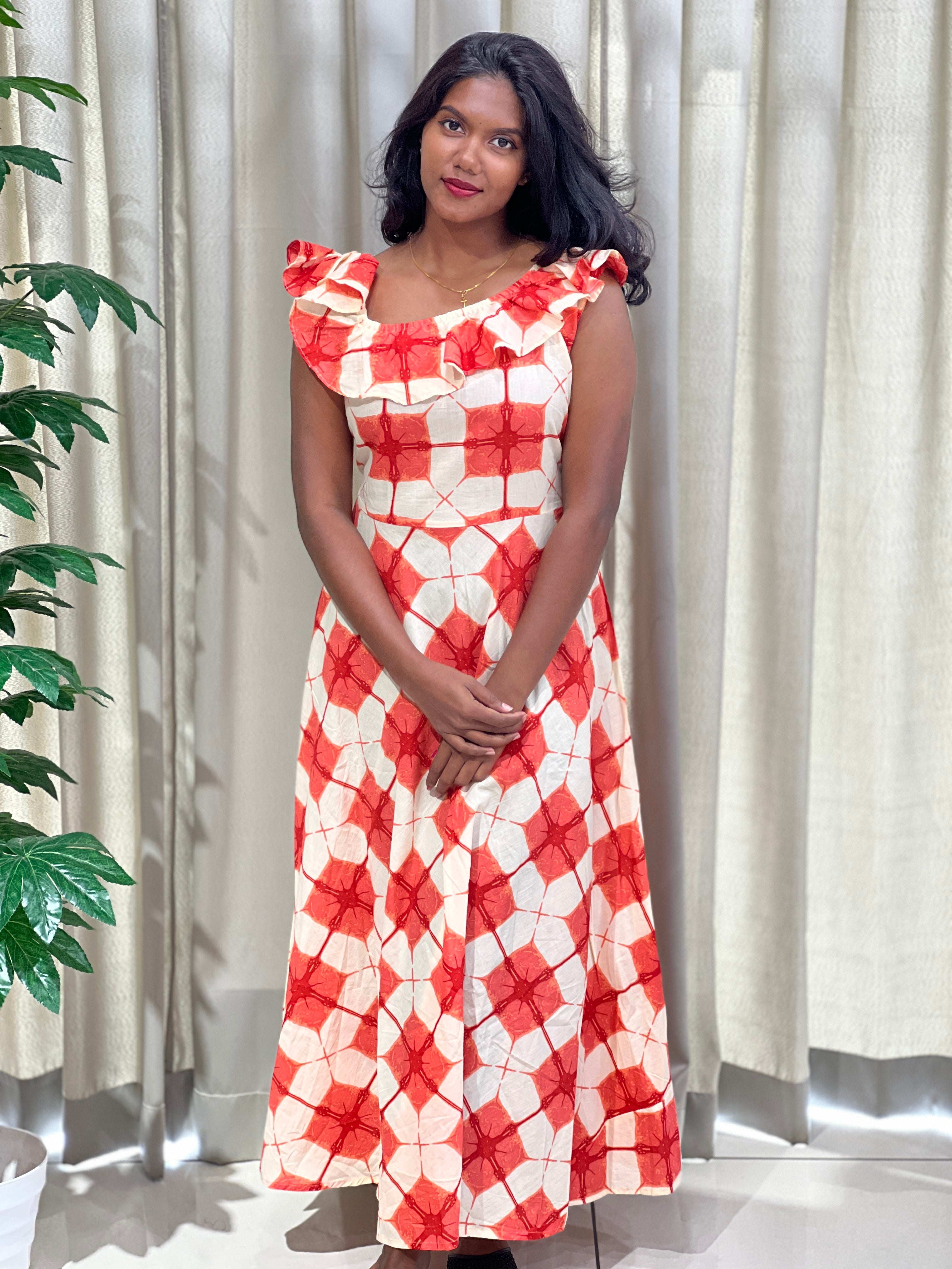 - Style - Tie & Dye Screen-Printed Gathered Dress
