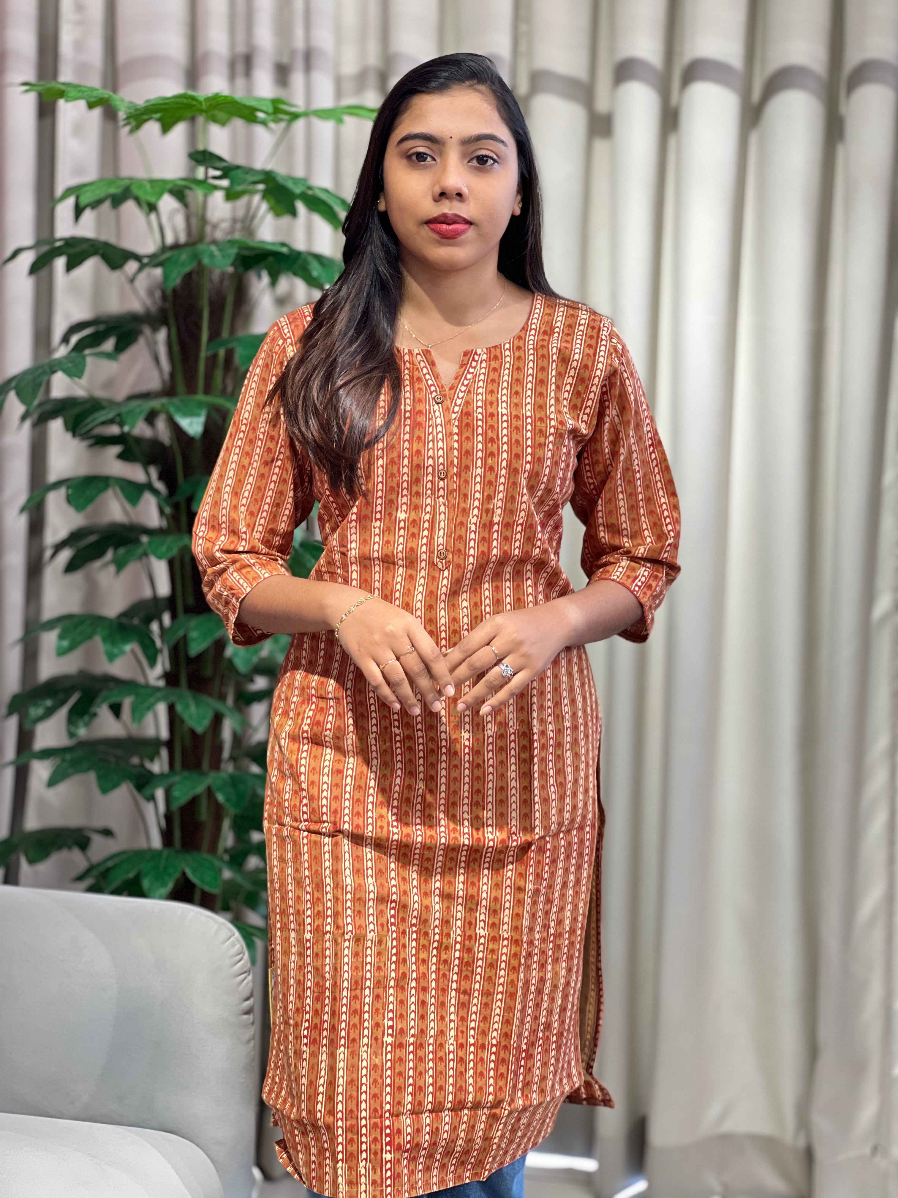- Style: Printed, Cotton Lining, Show Button Detailing, Slitted