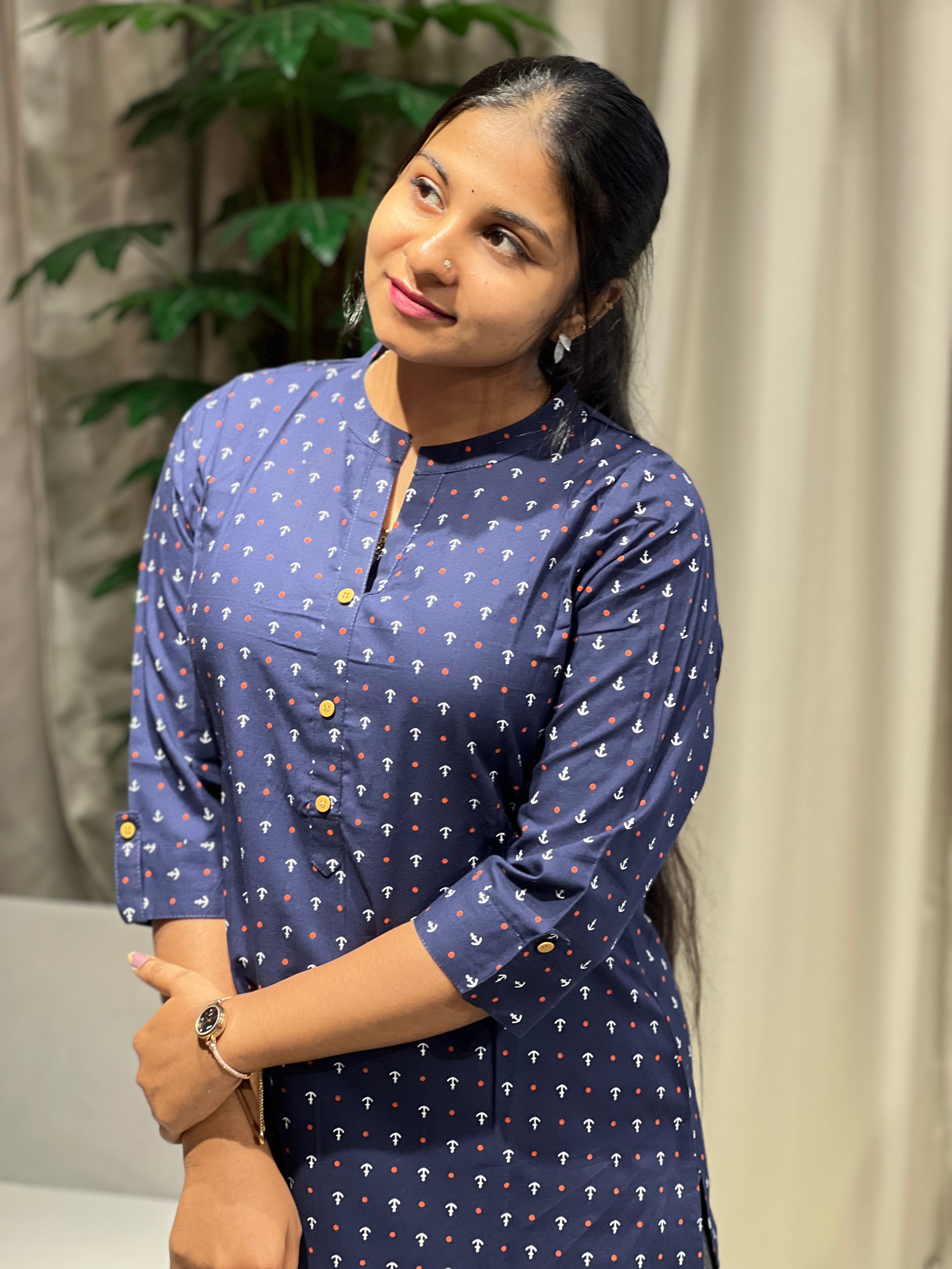- Style: Print Detailing, Show Button Detailing, Side Slit Pattern, Without Lining
