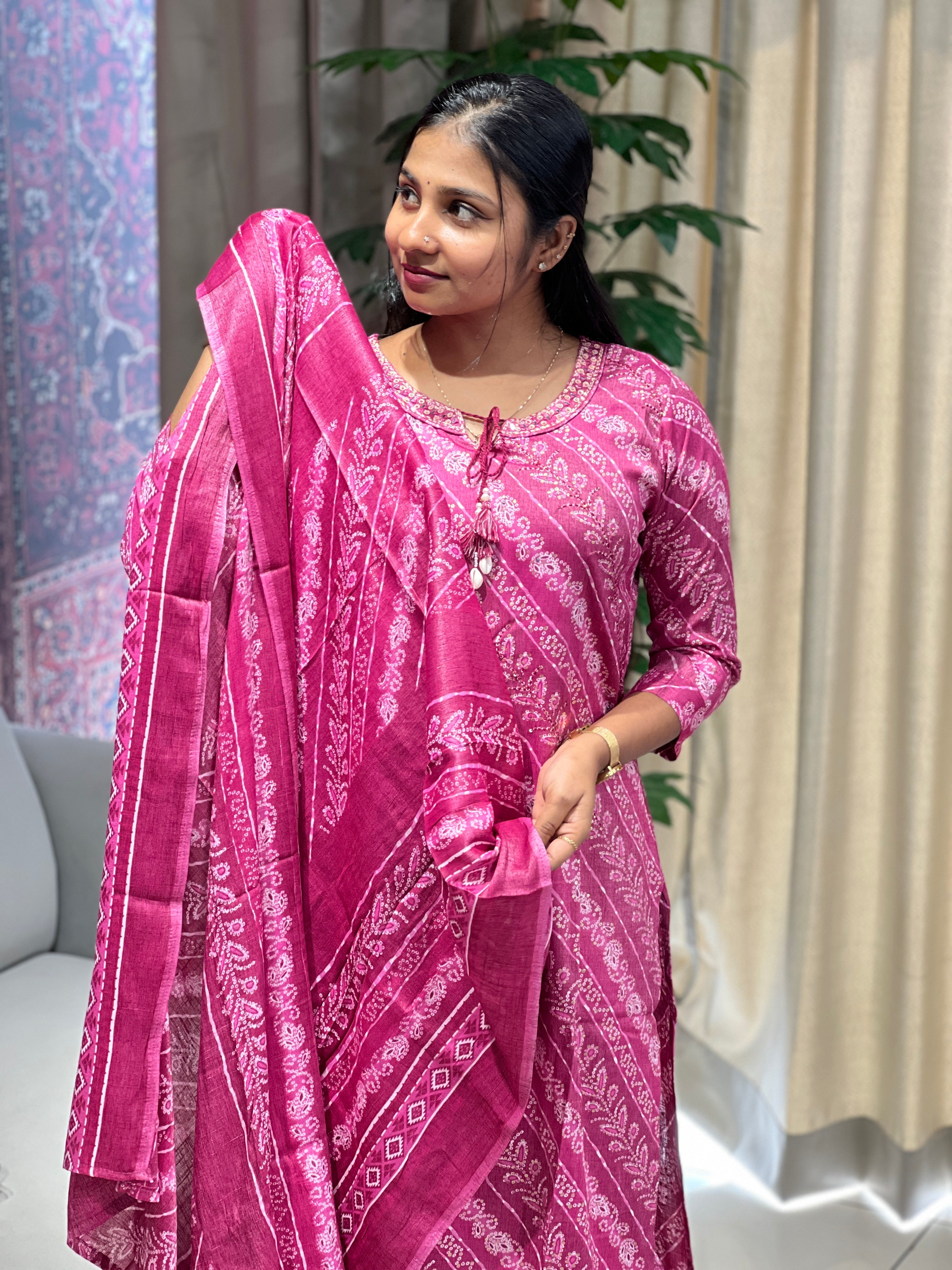 - Style: Printed, Kantha and Sequence Highlighting, Slited Pattern, Tie Detailing and Handwork Detailing on Neck