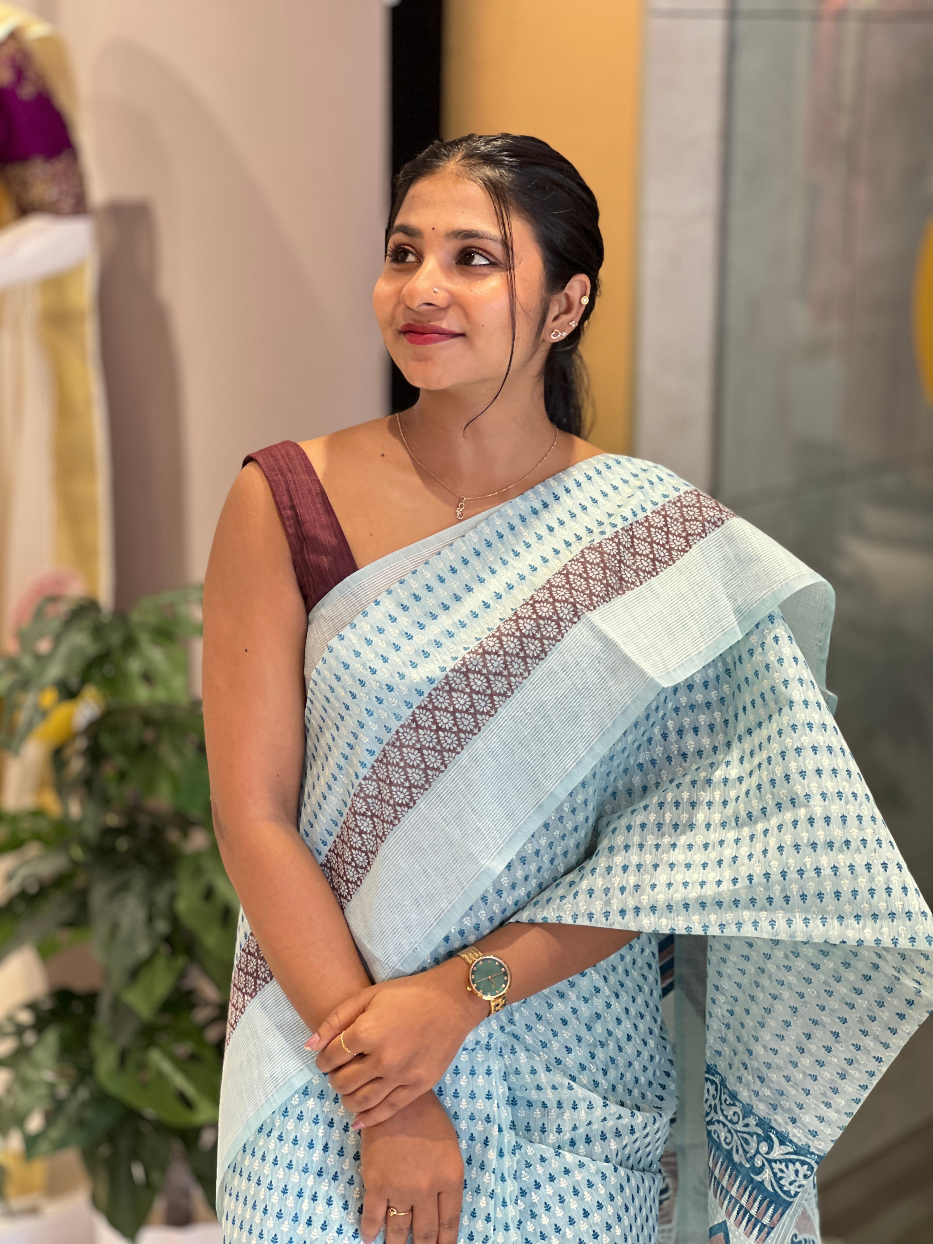 - Style: Printed, Makki Pattern, Border and Pallu Detailing