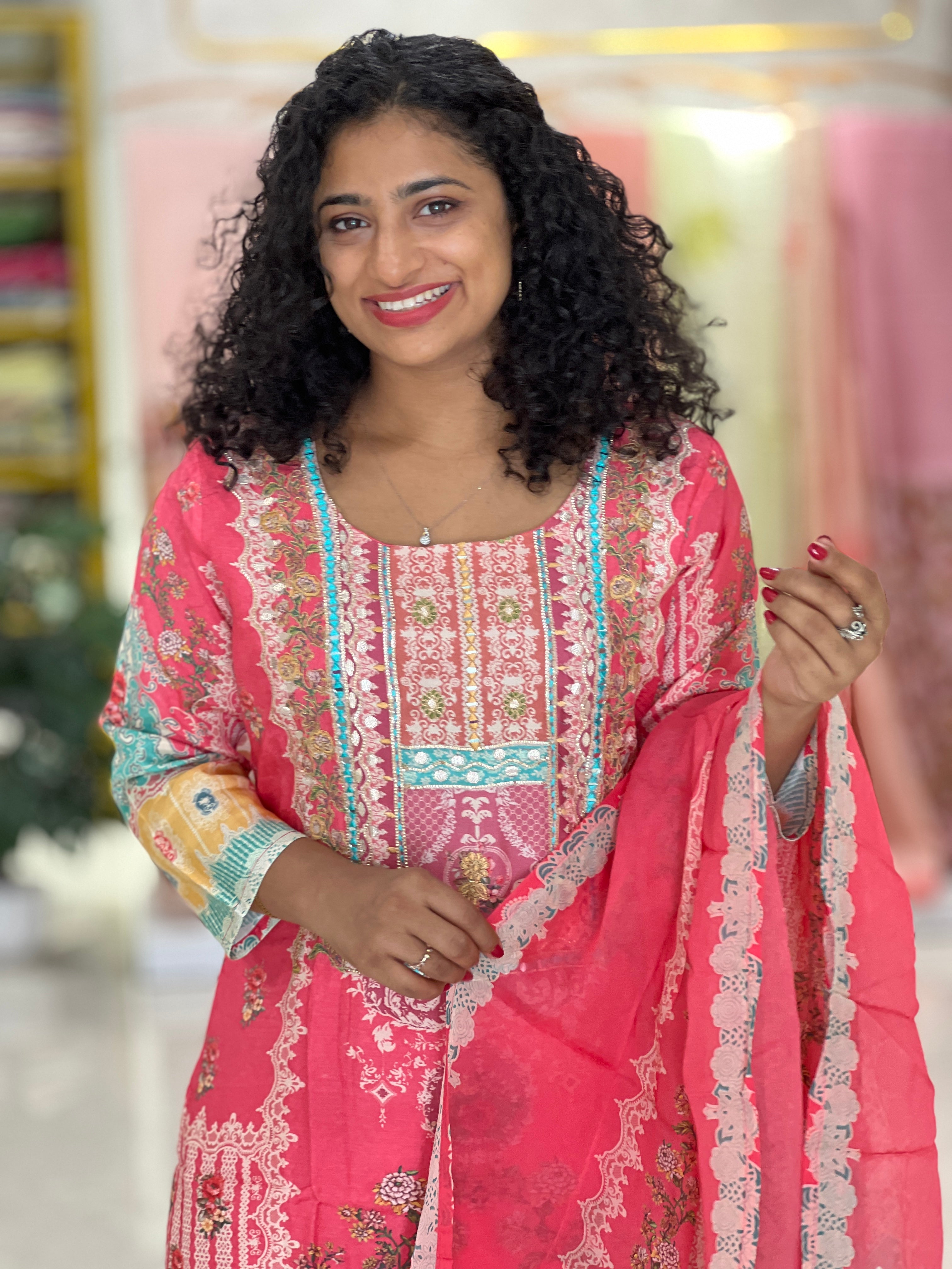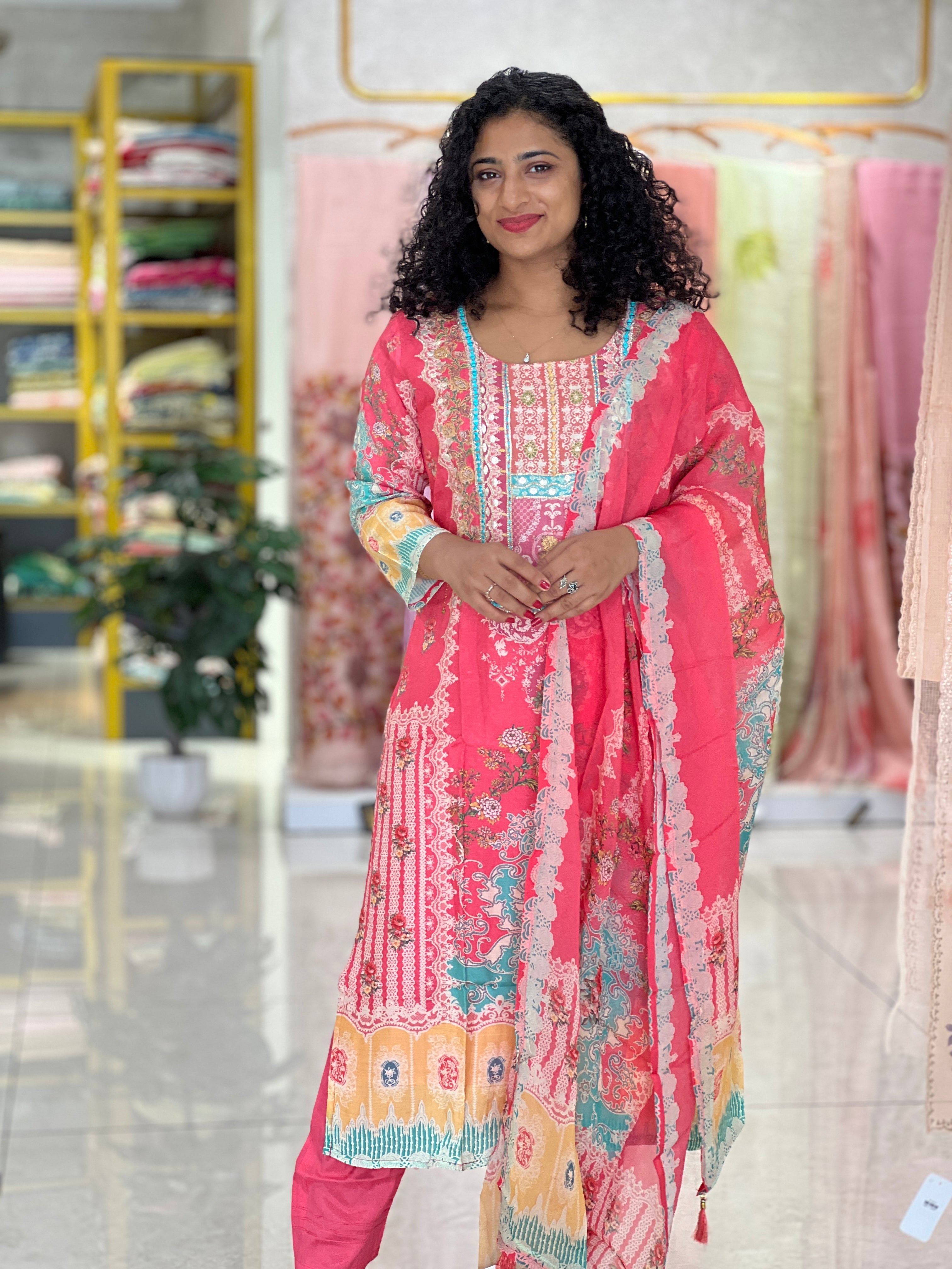 - Style: Mirror Work Highlighted Yoke Portion, Side Slitted, Printed Pattern (With Cotton Lining)