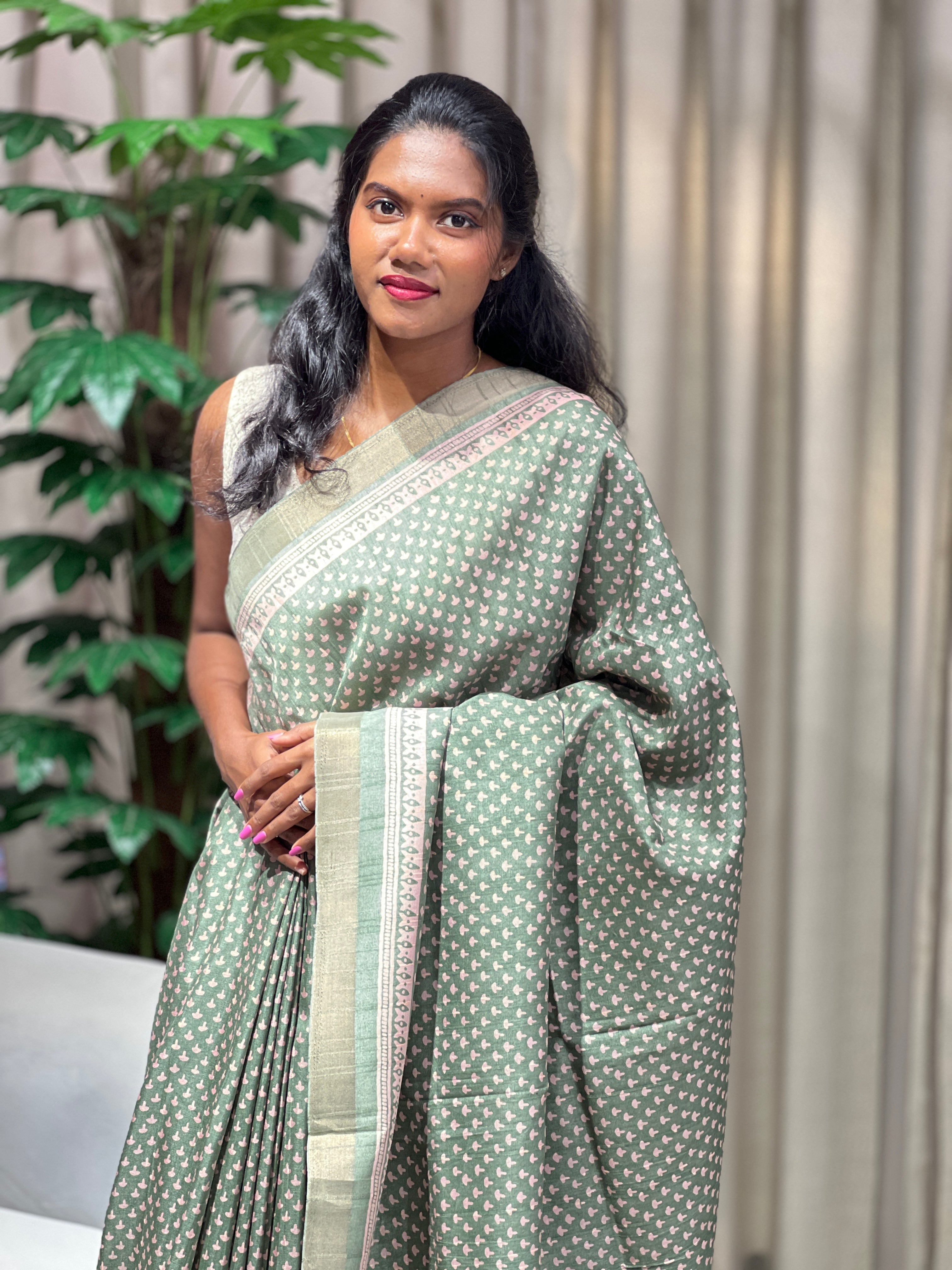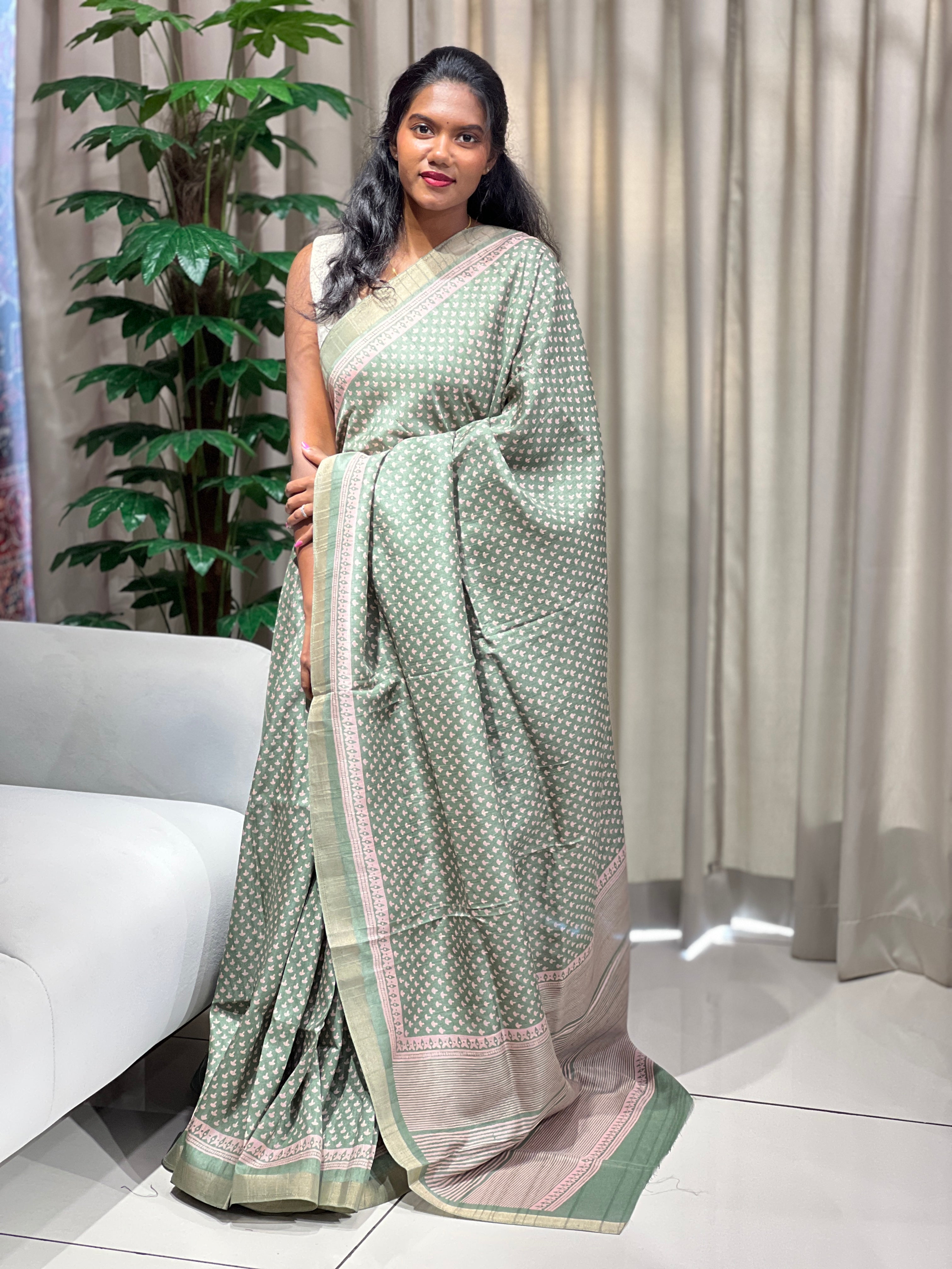 - Style: Printed, Pallu Detailing, Zari Border