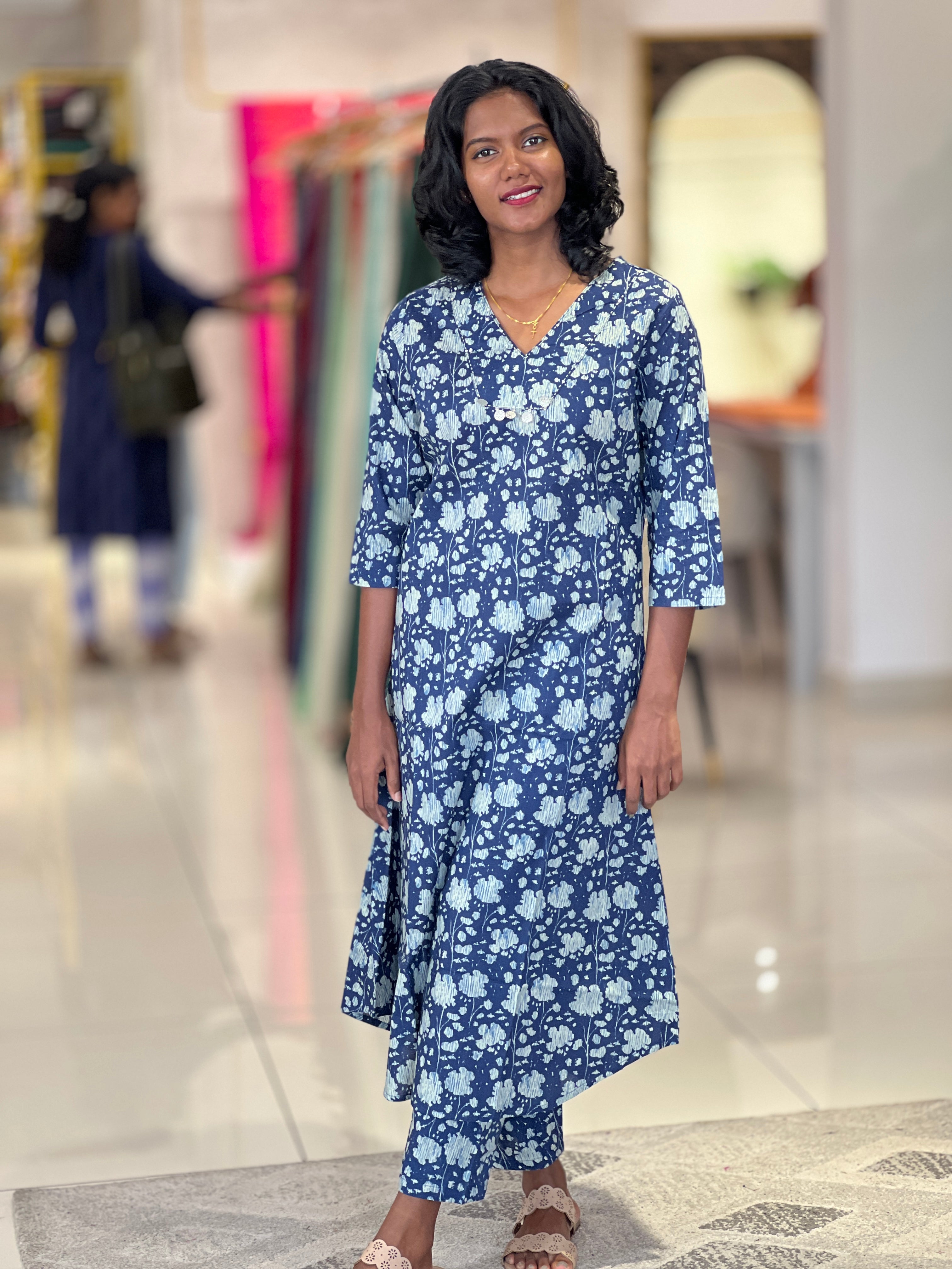 Printed With Embroidery Highlighted Cotton Kurta Set | NCF284 Printed With Embroidery Highlighted Cotton Kurta Set | NCF284