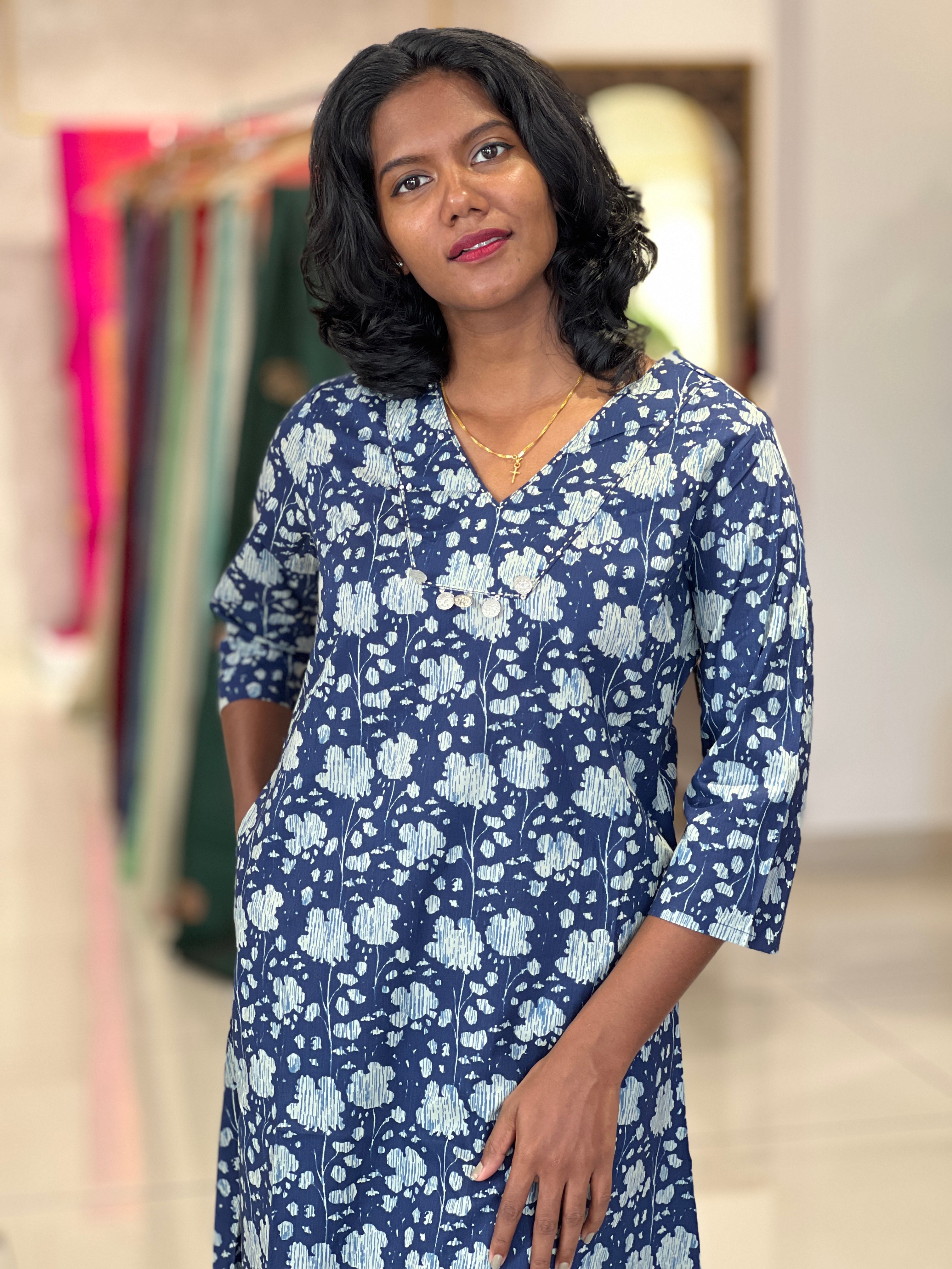 • Style: Printed , A-Line Pattern, Silver Coin Detailing, Hand Kantha & Sequence Highlight, With Pockets