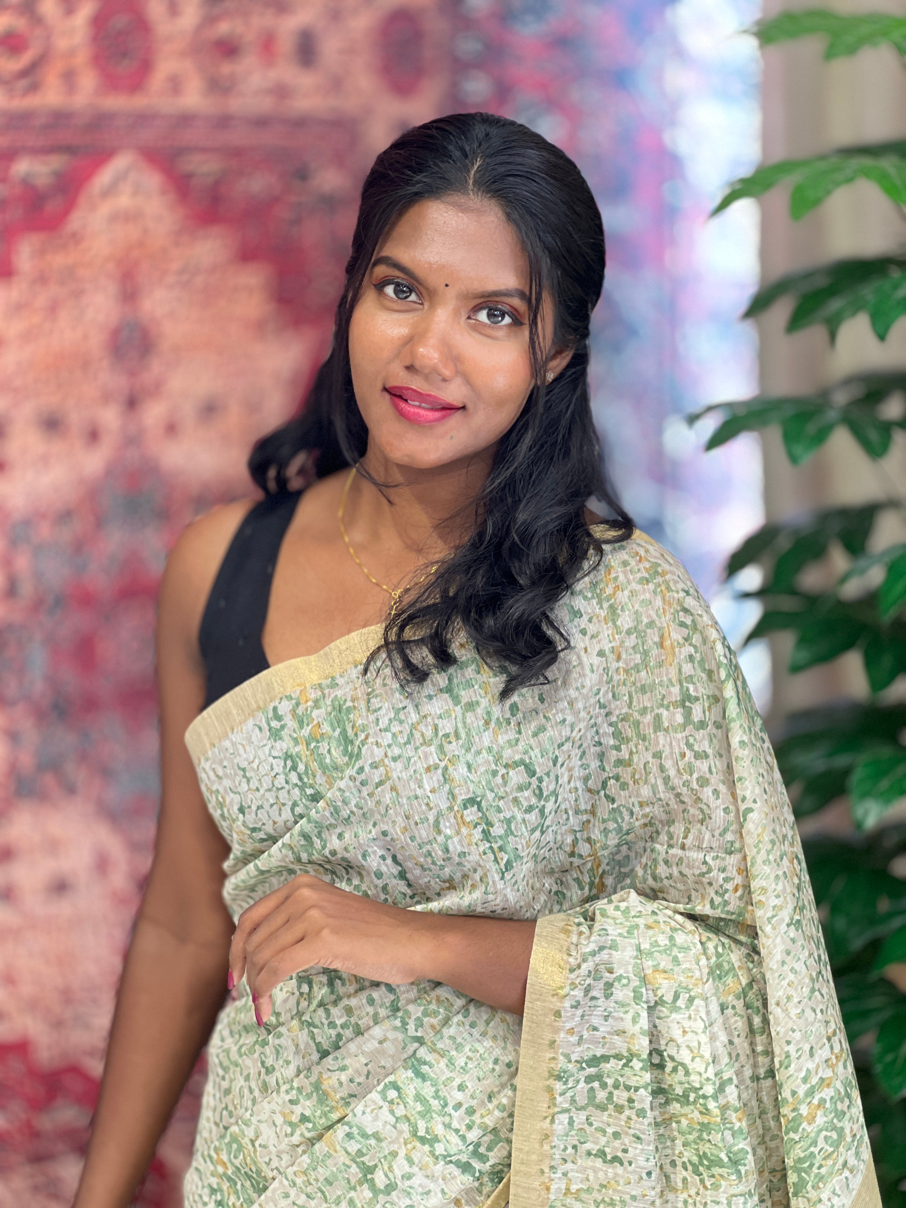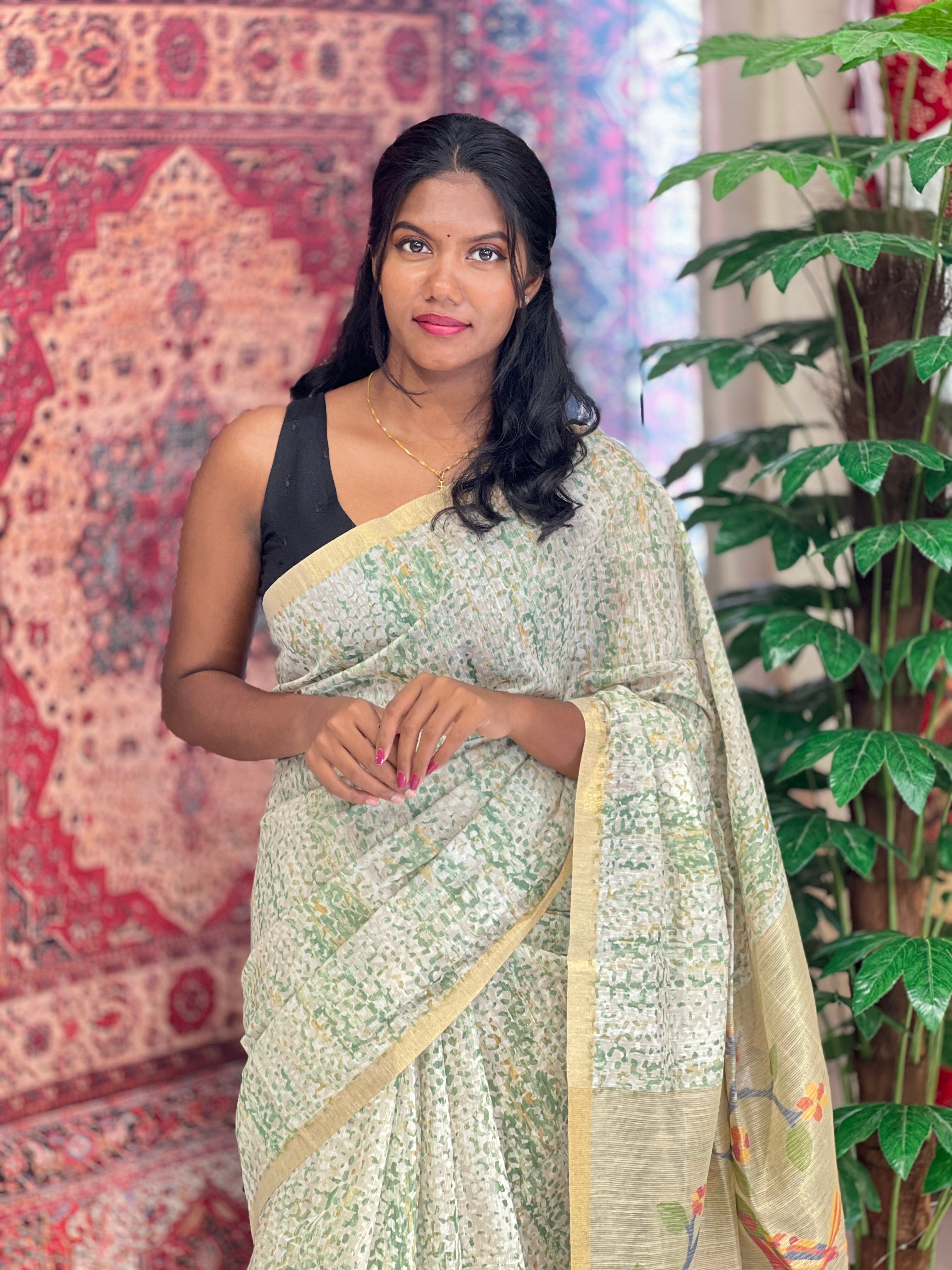 - Style: Printed, Jamdani Weaved Pallu, Zari Weaved Borders