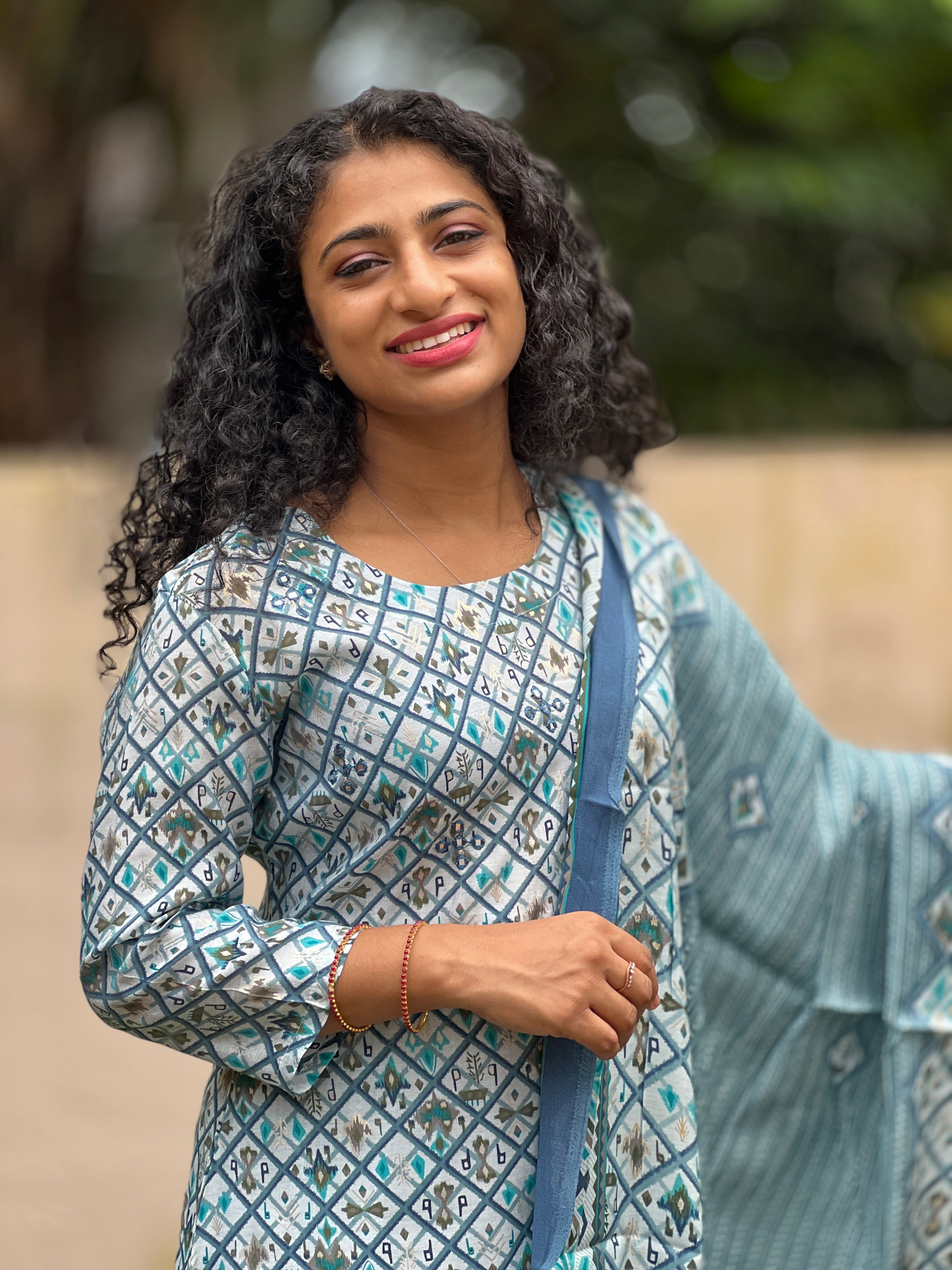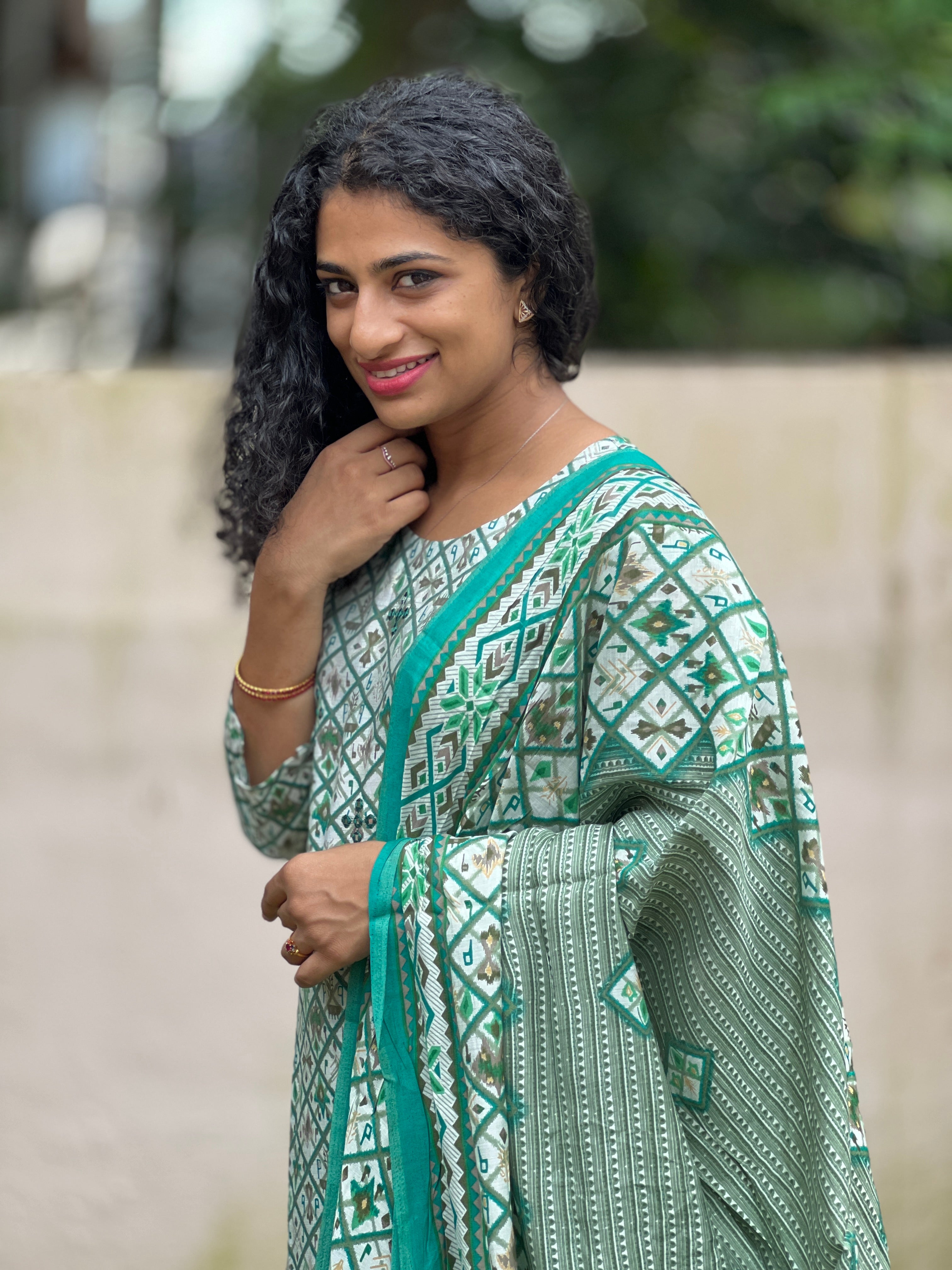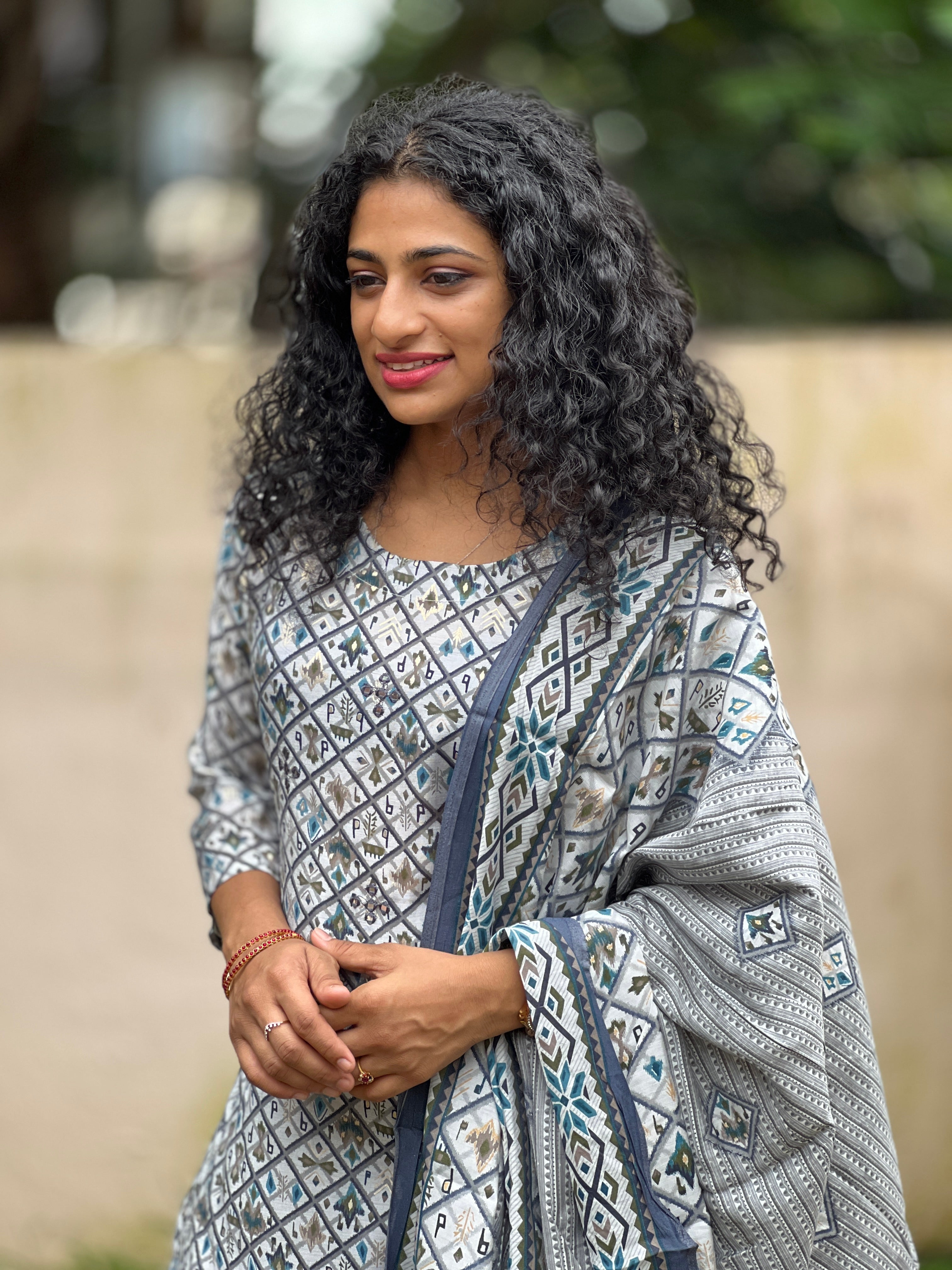 - Style: Geometrical Printed Pattern and Yoke Mirror Work