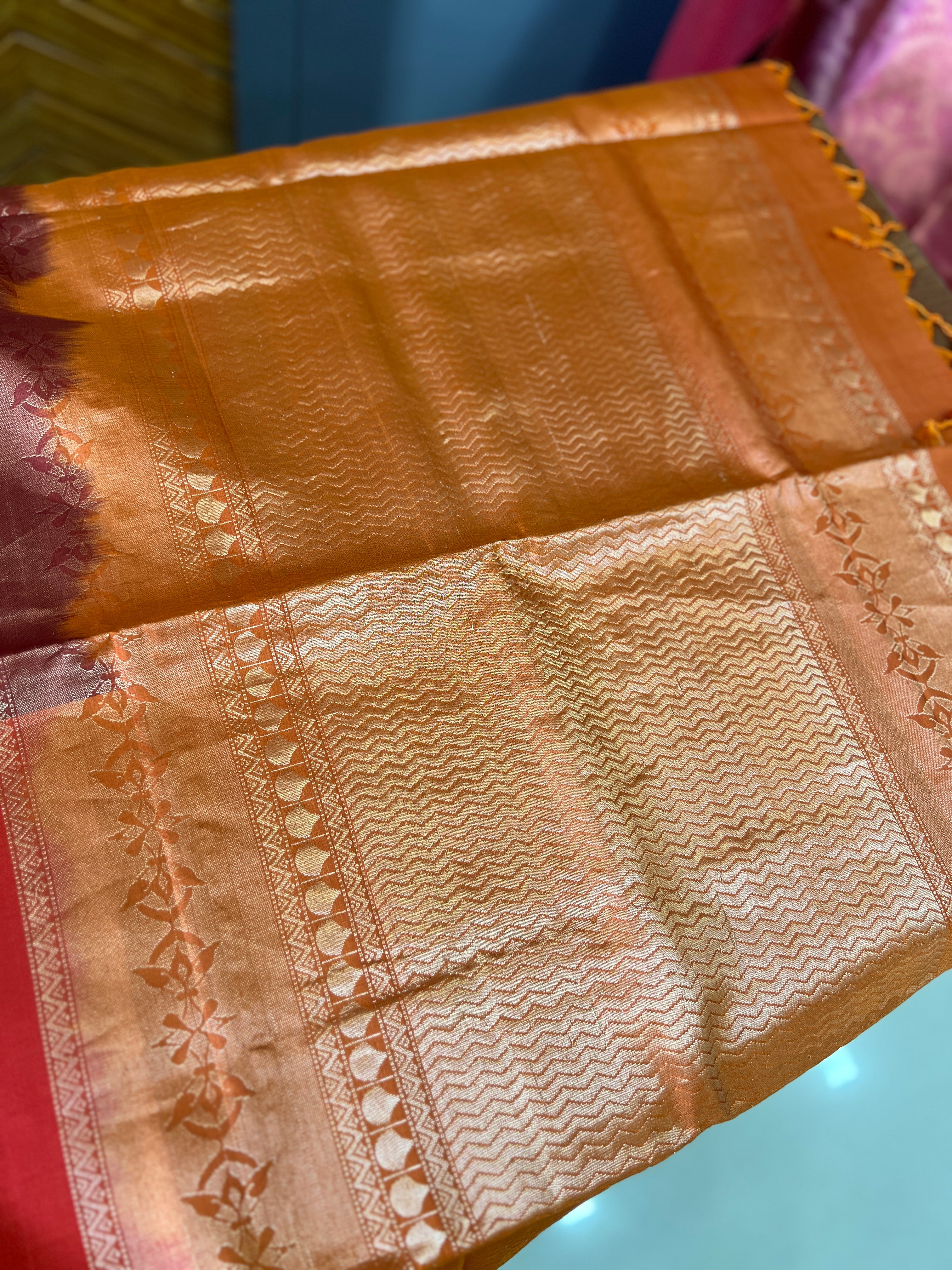 - Style: Golden Zari Weaved Buta Design, Zig Zag and Buta Patterned Pallu
