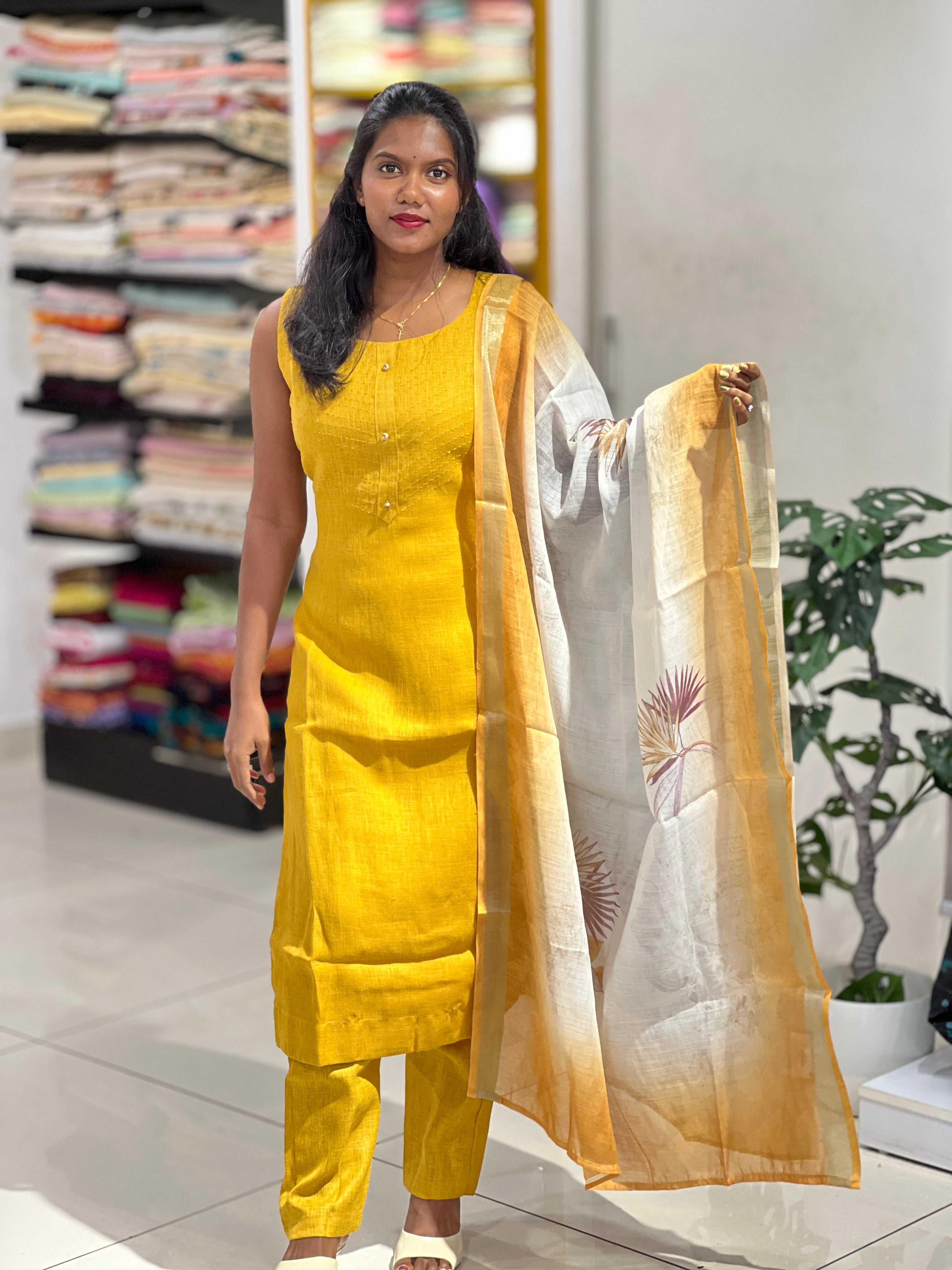 - Style: Running Stitch Detailed Yoke, Show Button Detailing, Slitted, Santoon Lining, Side Zip