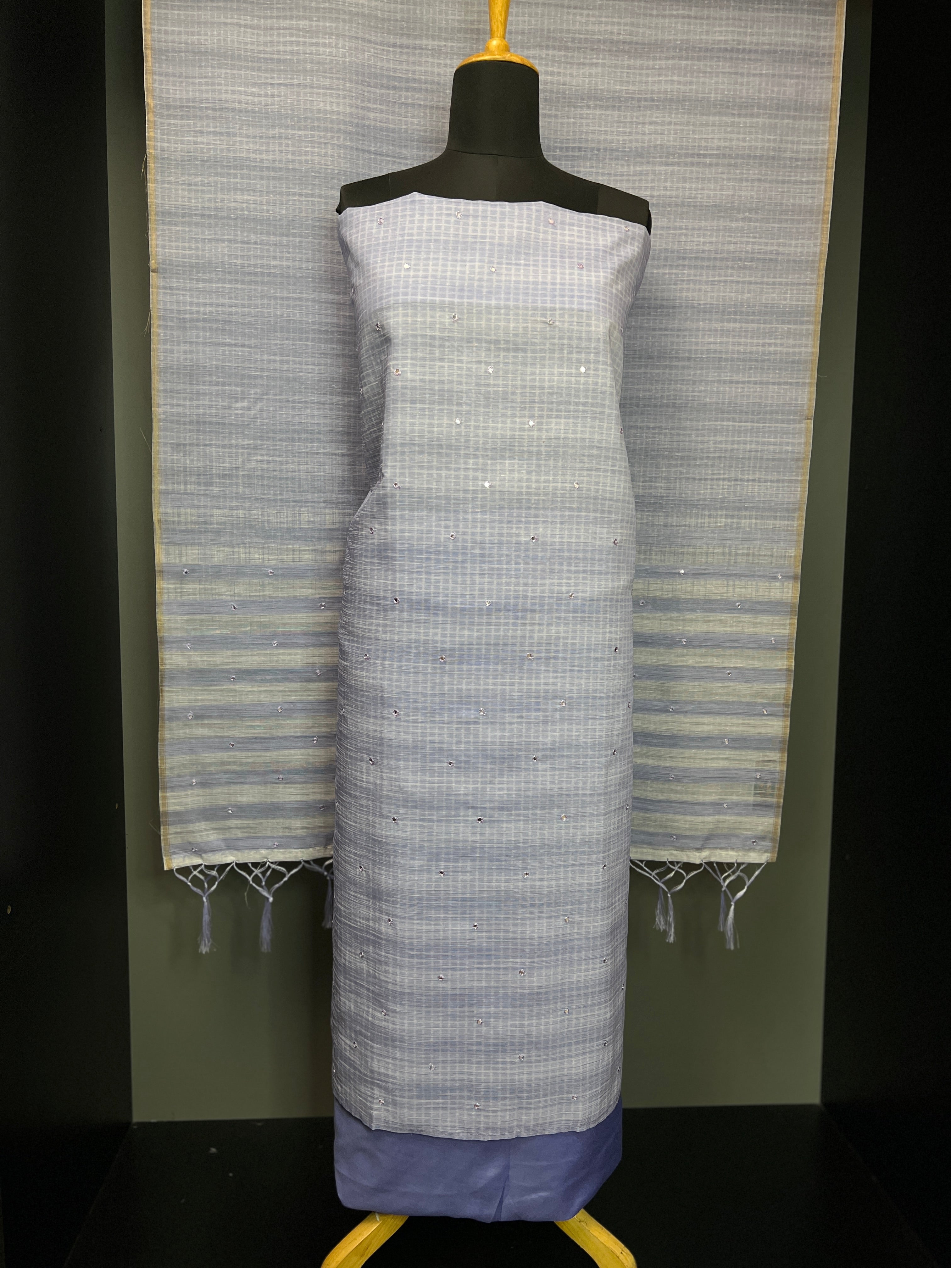 - Style: Self Check Pattern, Scattered Mirror Detailing, Tassels Attached