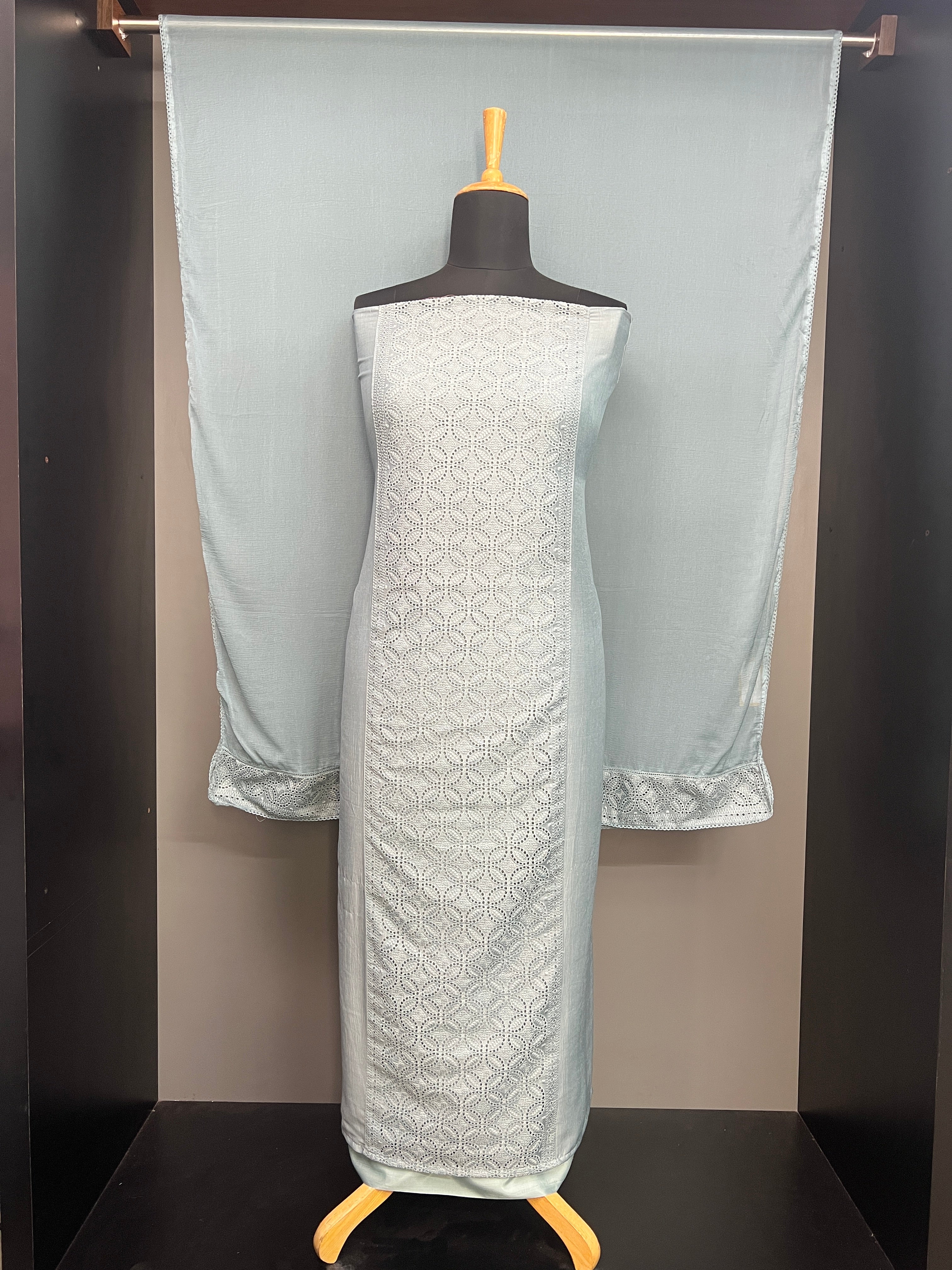 - Style: Schiffli Pattern Patch Detailed Center Panel