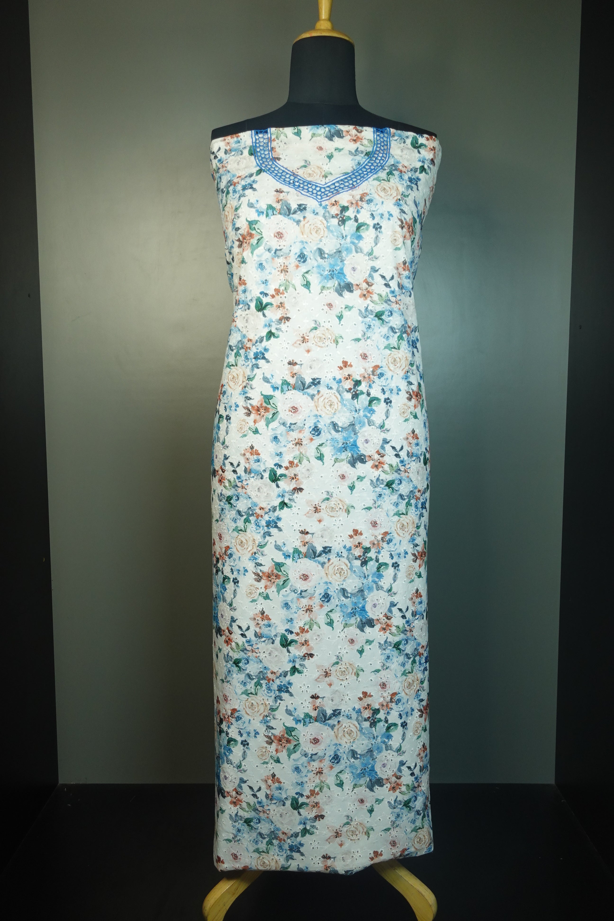 Schiffli Pattern Floral Digital Printed Twine Cutwork Kurta Material | TC229