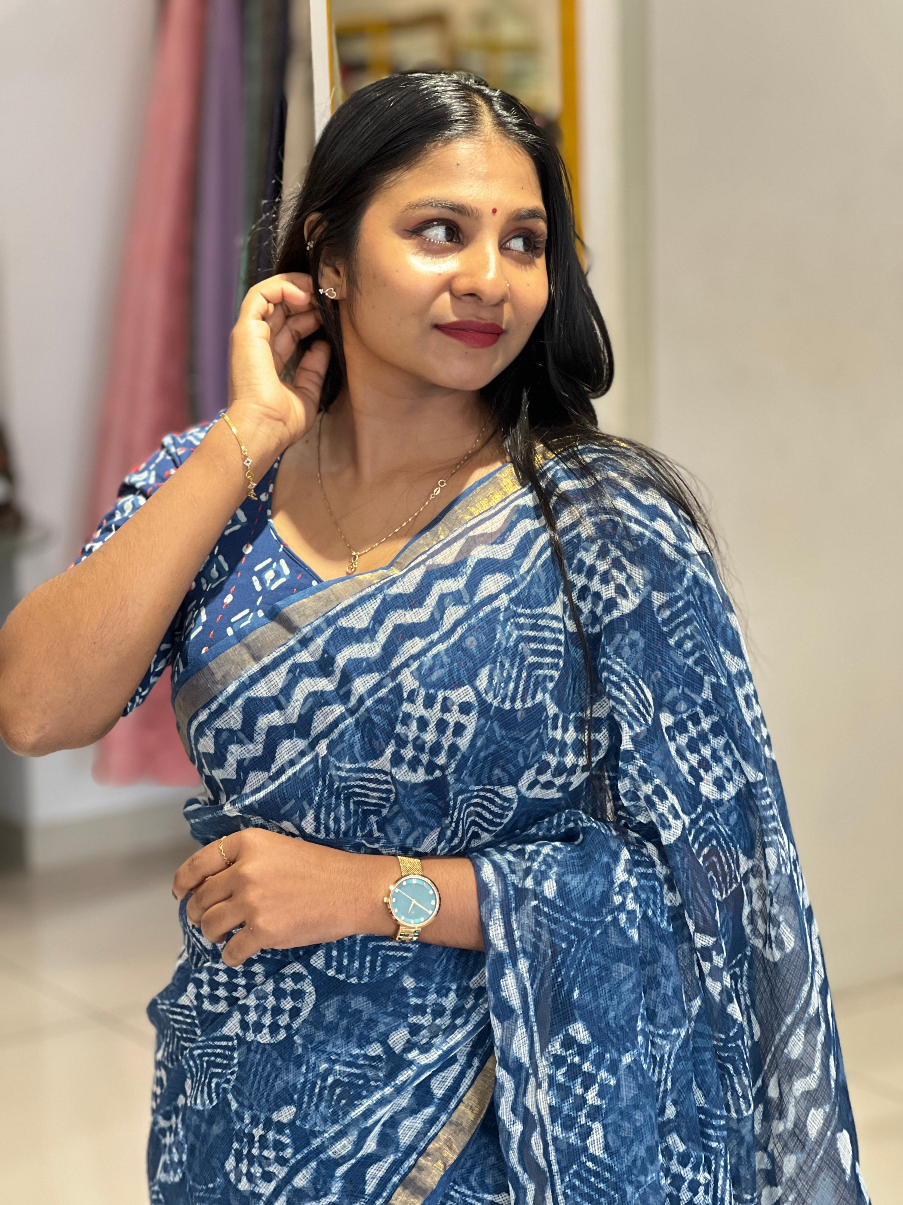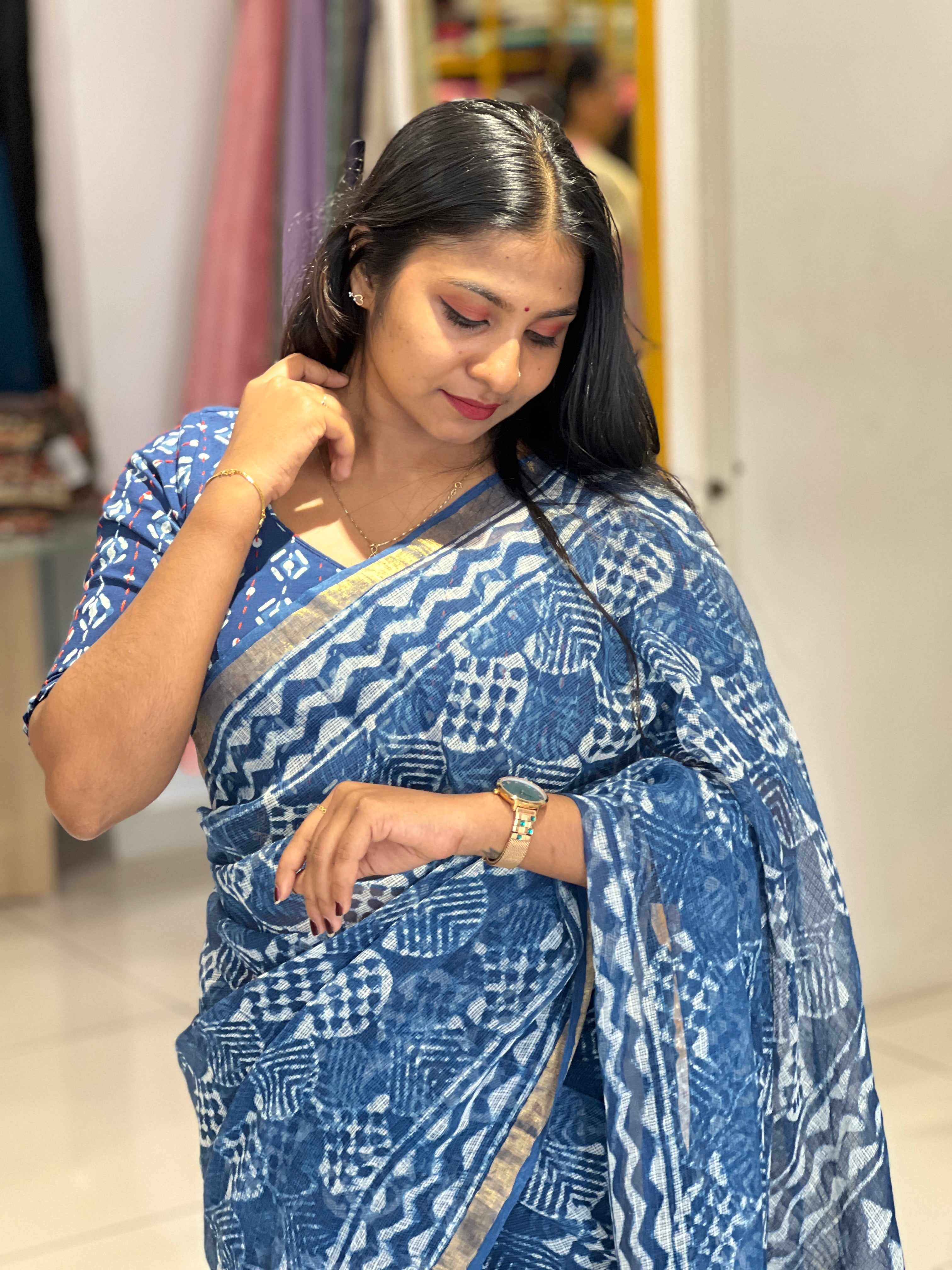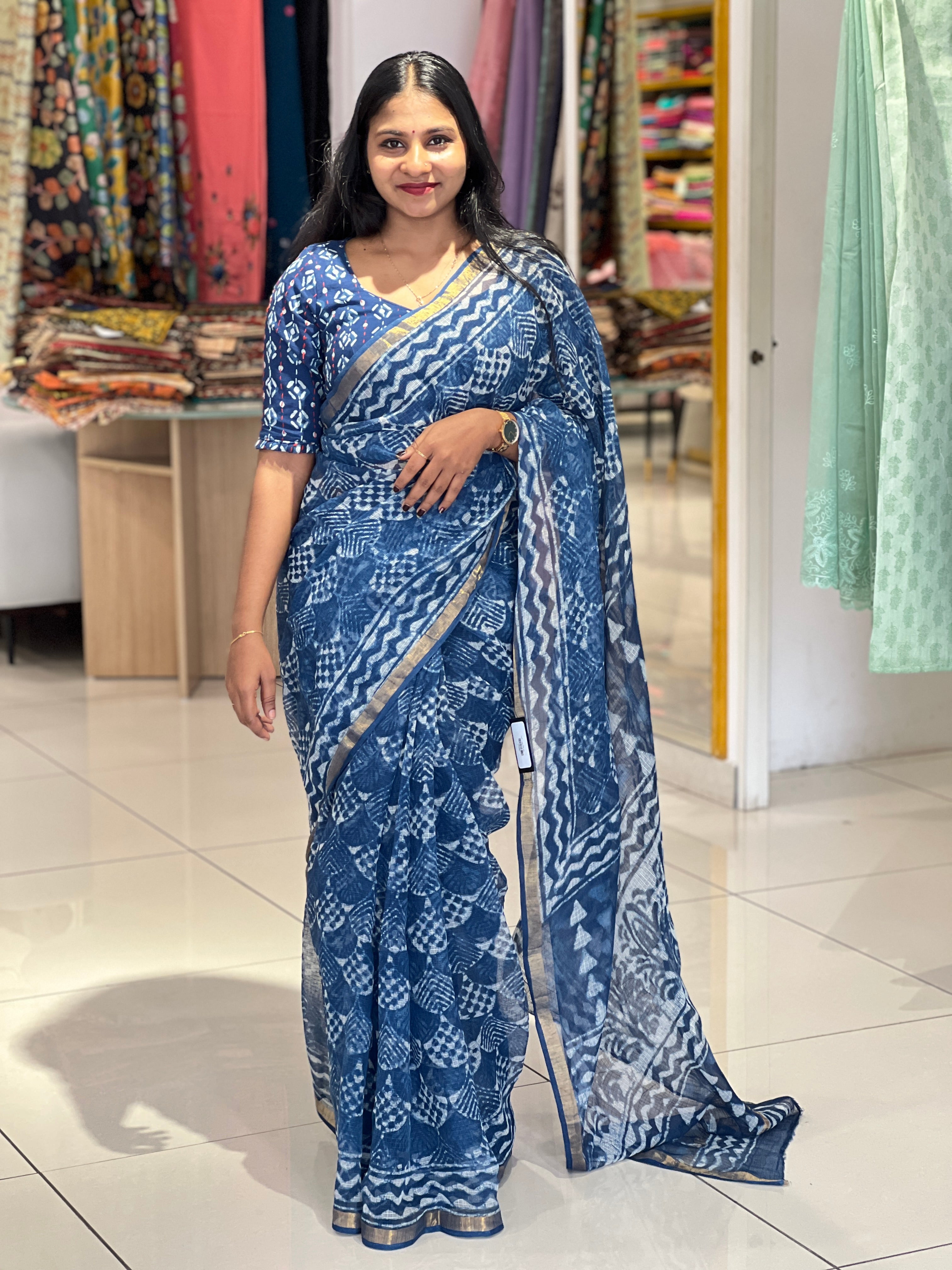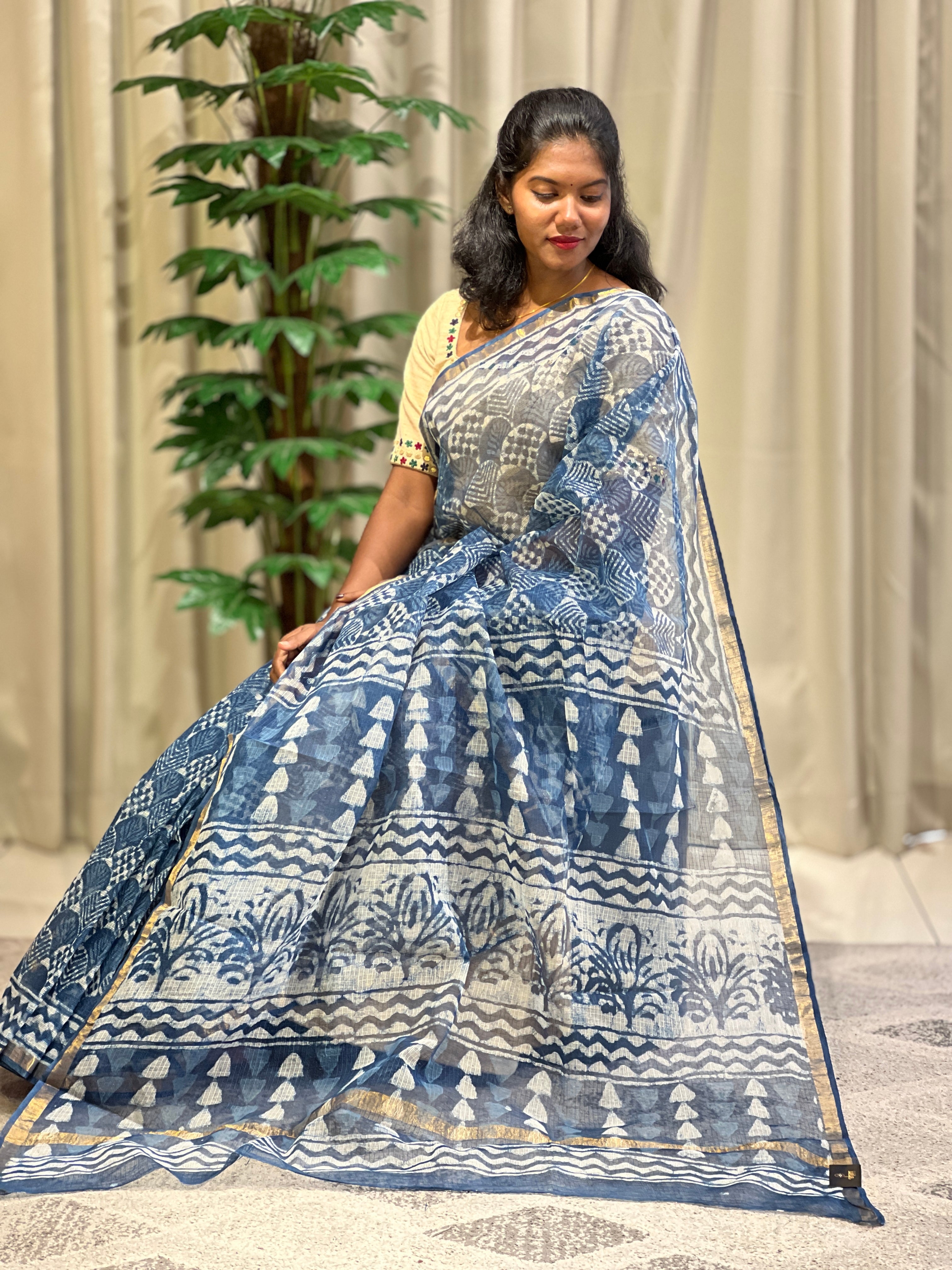 • Style: Screen Printed, Thin Zari Borders