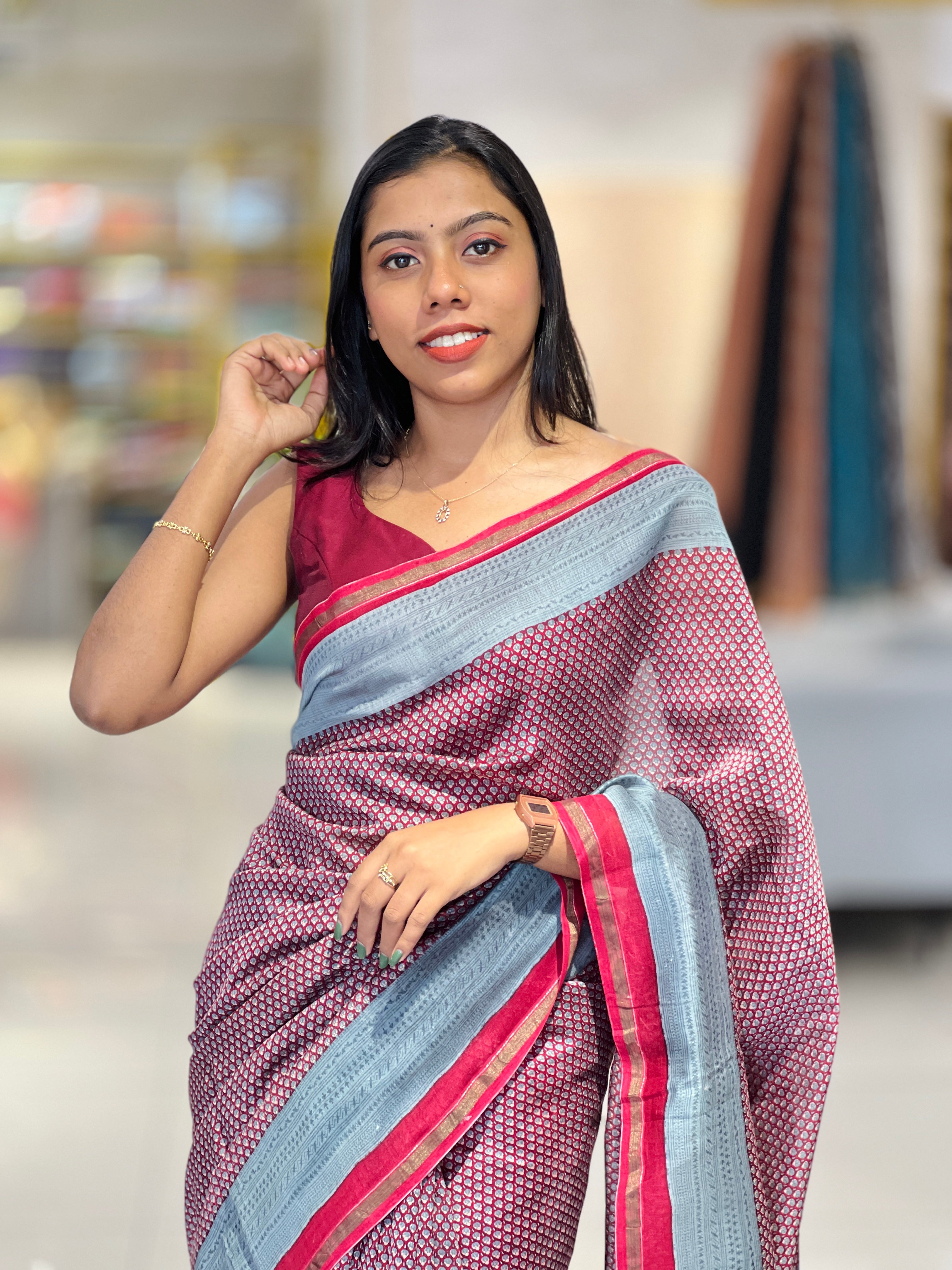 - Style: Screen Printed Pattern, Thin Zari Borders, Stripe Patterned Border Detailing